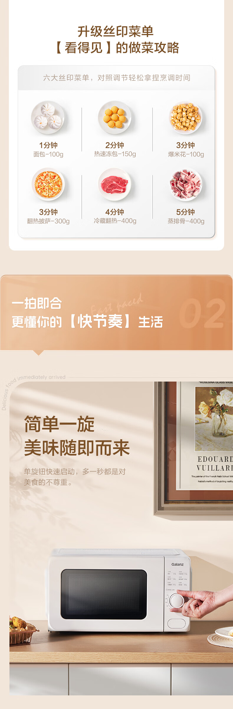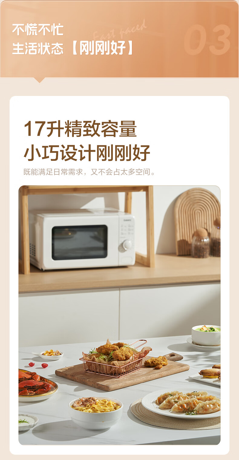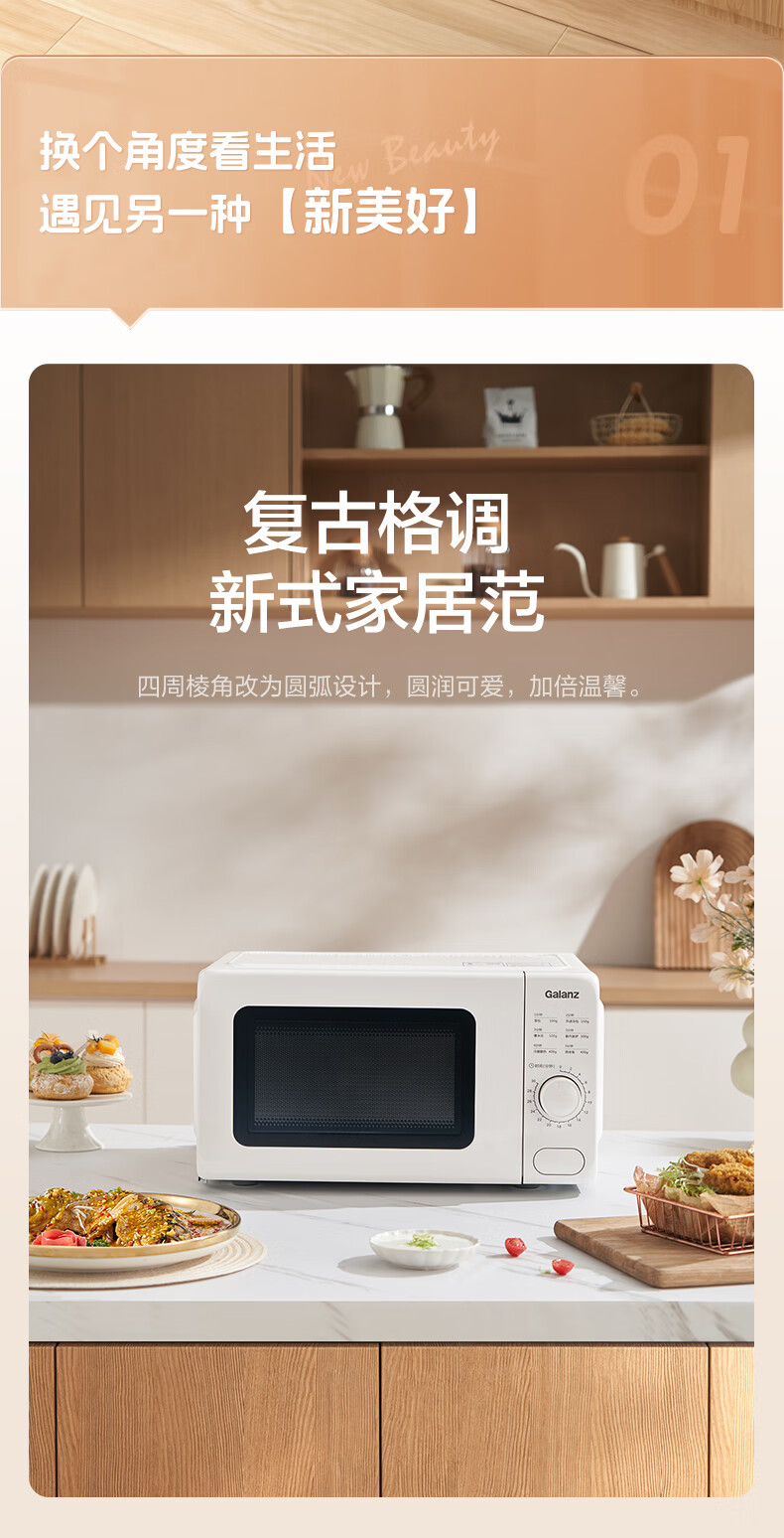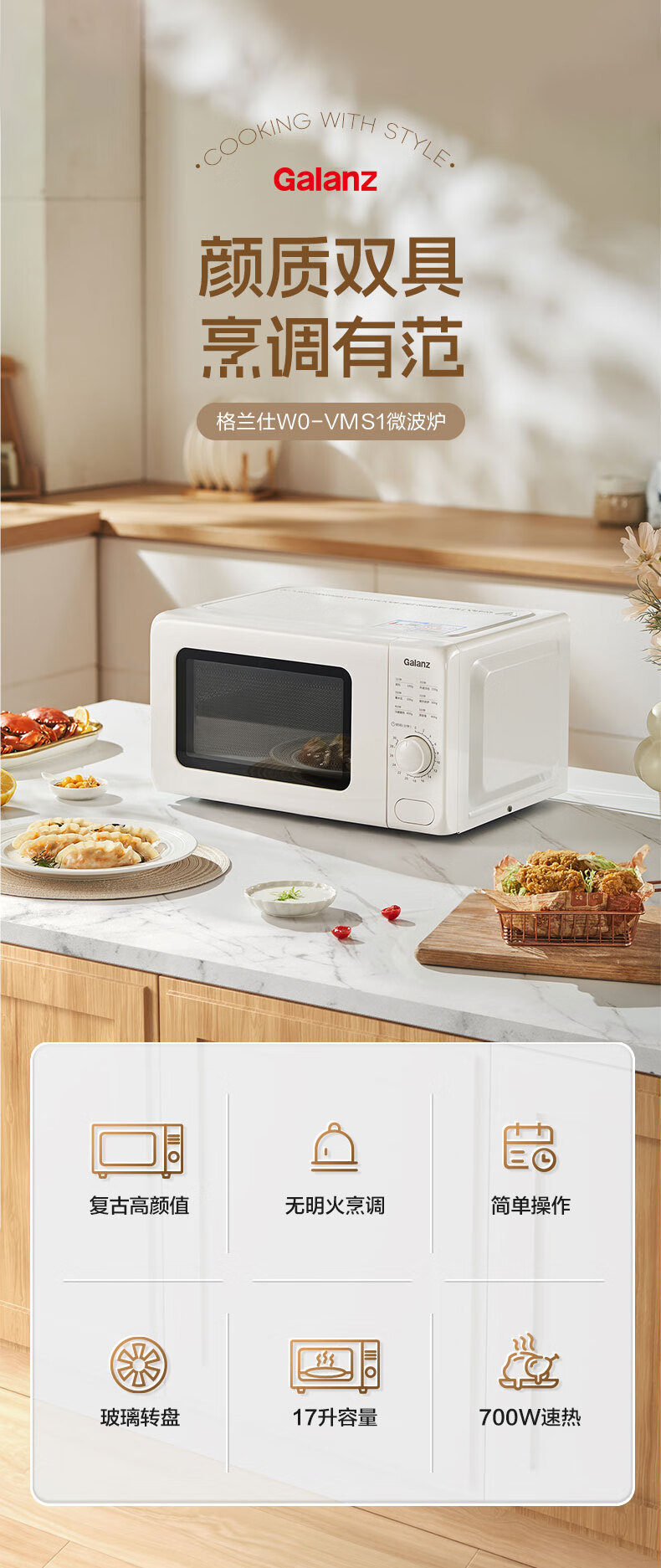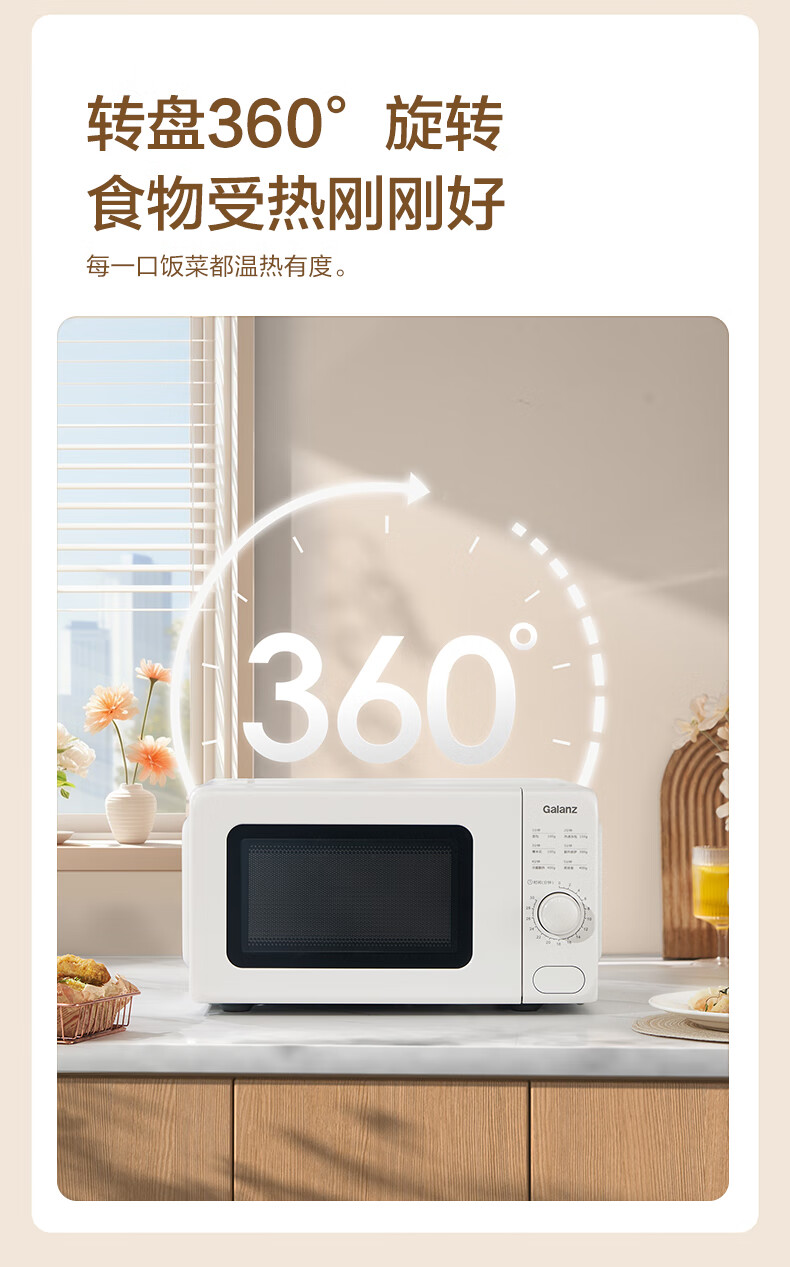格兰仕(Galanz) 微波炉 家用17L小容量 玻璃转盘加热 旋钮设计 操作简易 迷你精致小型 微波炉 V1【双旋钮操作】