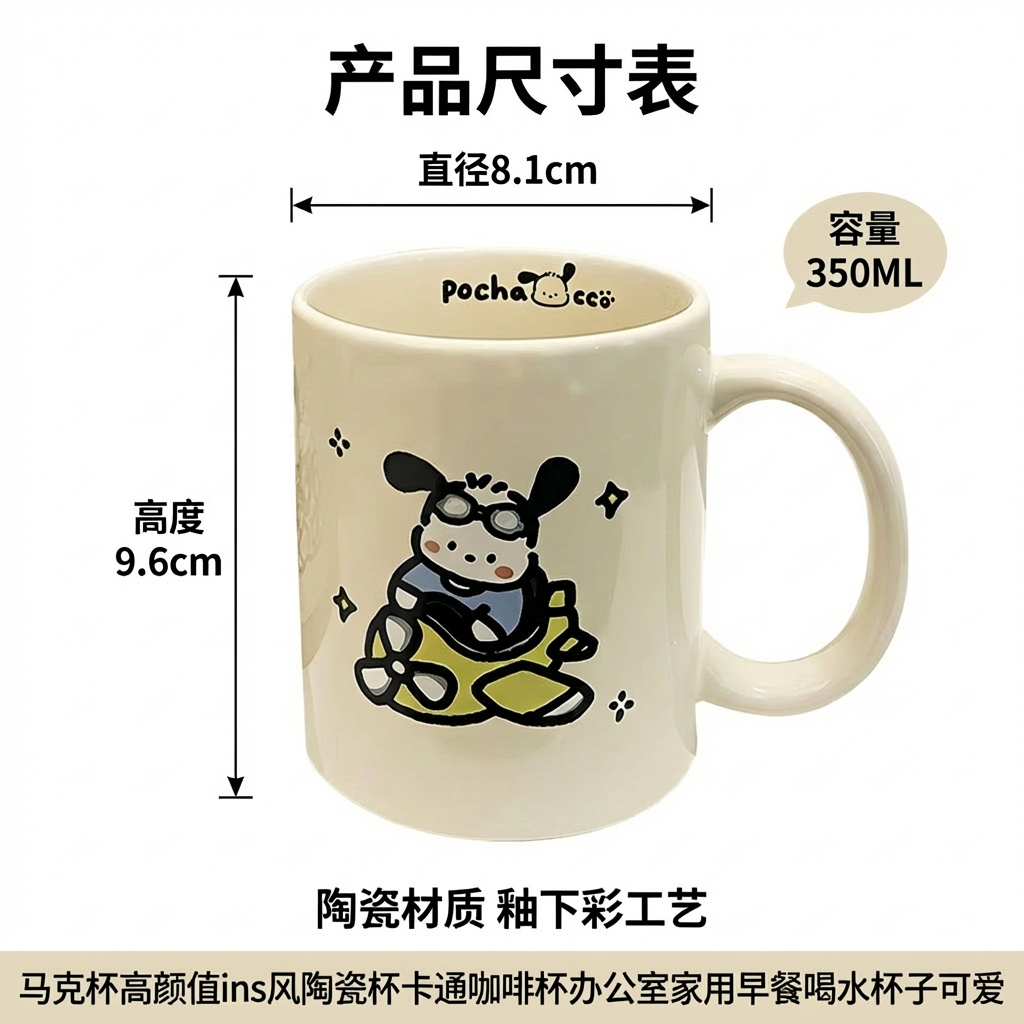 马克杯高颜值ins风陶瓷杯卡通咖啡杯办公室家用早餐喝水杯子可爱 飞机小狗陶瓷杯