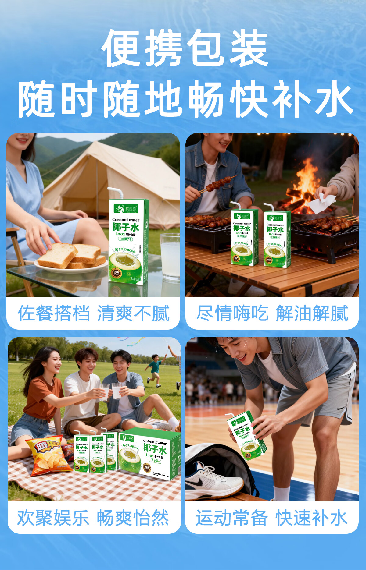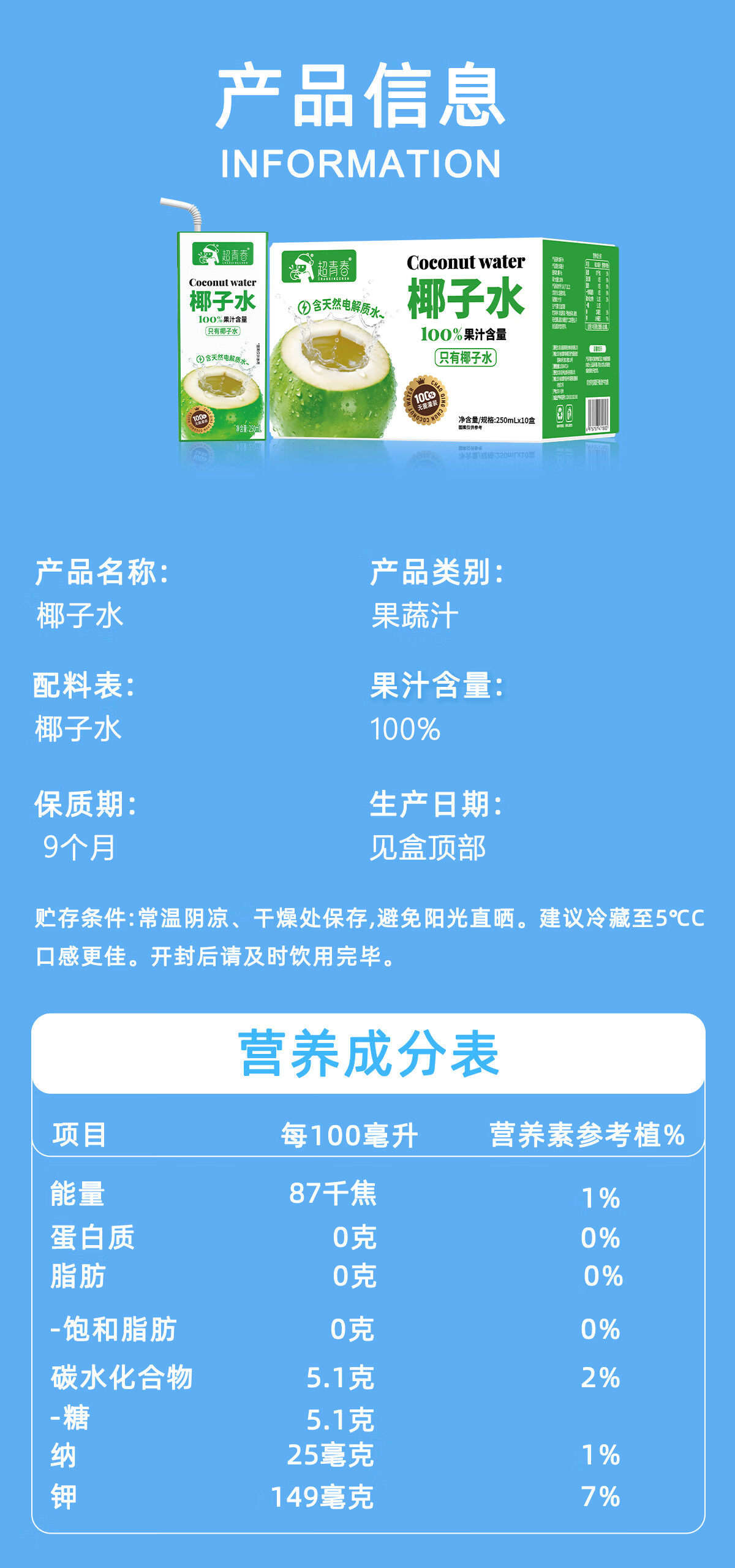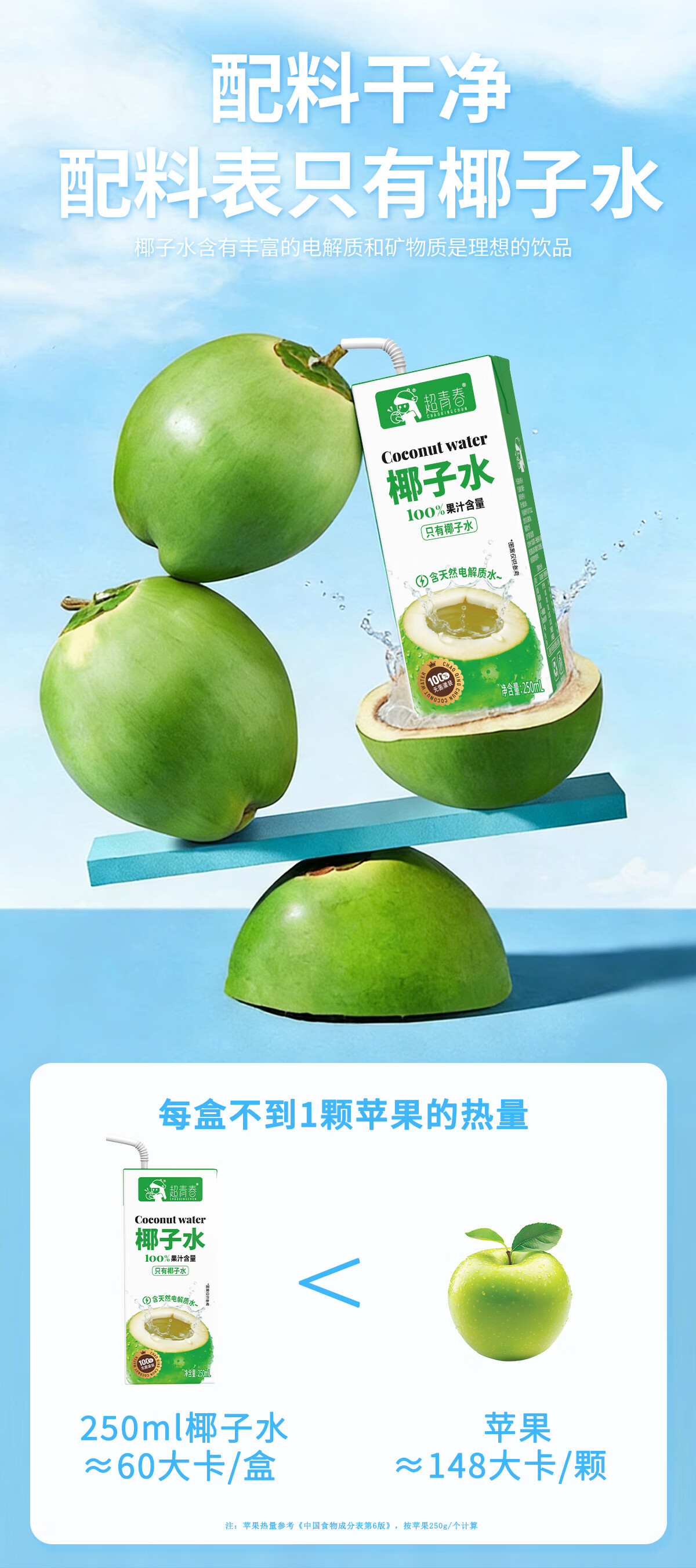 超青春果汁椰子水天然电解质整箱饮料 椰子水250ml*10盒x1箱