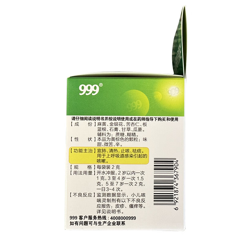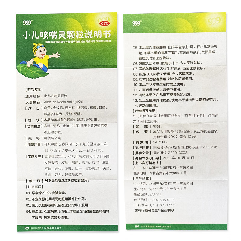 999三九小儿咳喘灵颗粒2g*10袋咳嗽药儿科用药用于上呼吸道感染引起的咳嗽 宣肺清热止咳祛痰