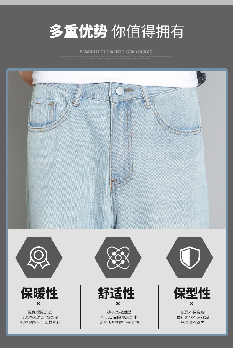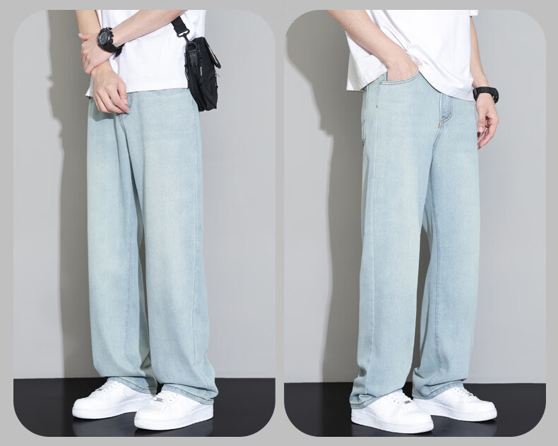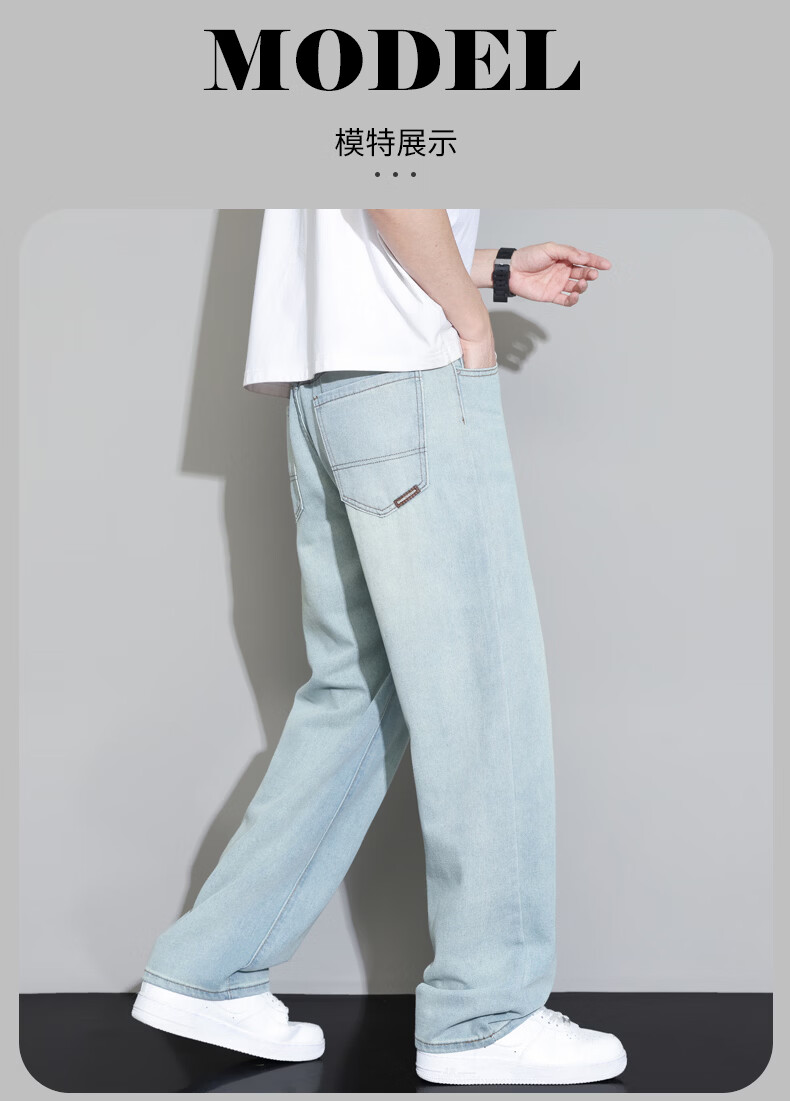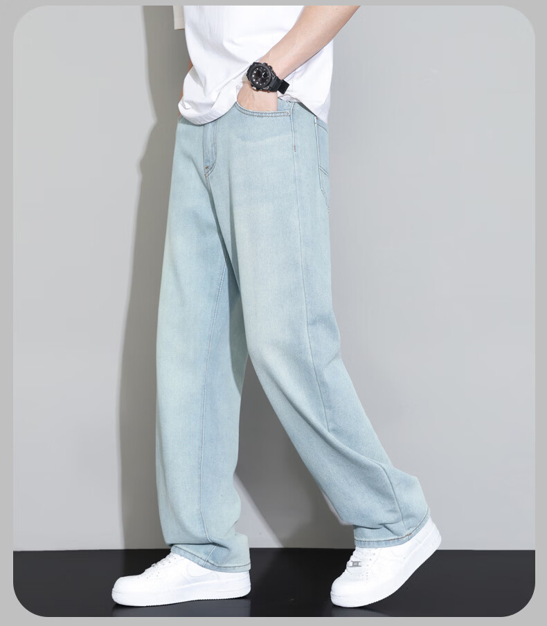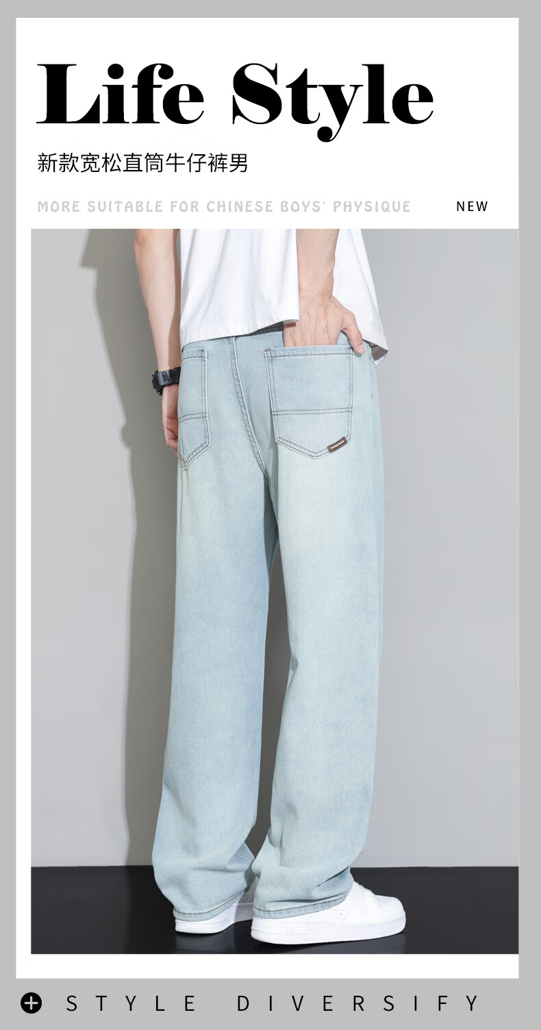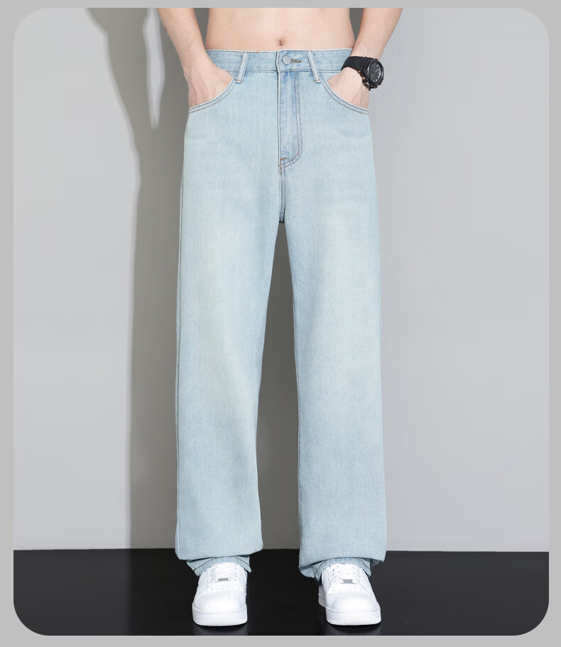 真维斯2026薄款牛仔裤男夏季新款美式潮流宽松直筒垂感百搭水洗休闲长裤 怀旧蓝 28