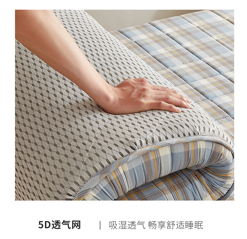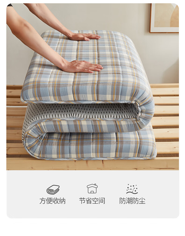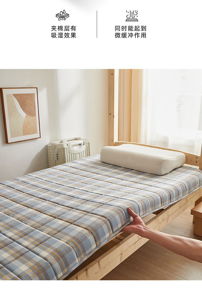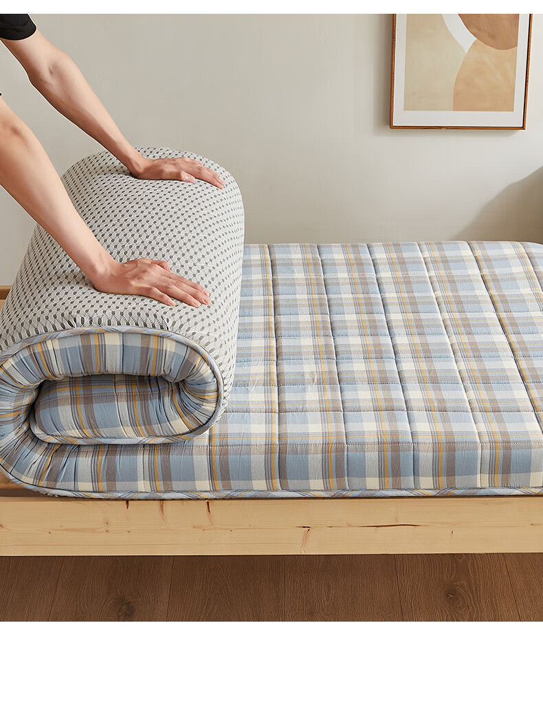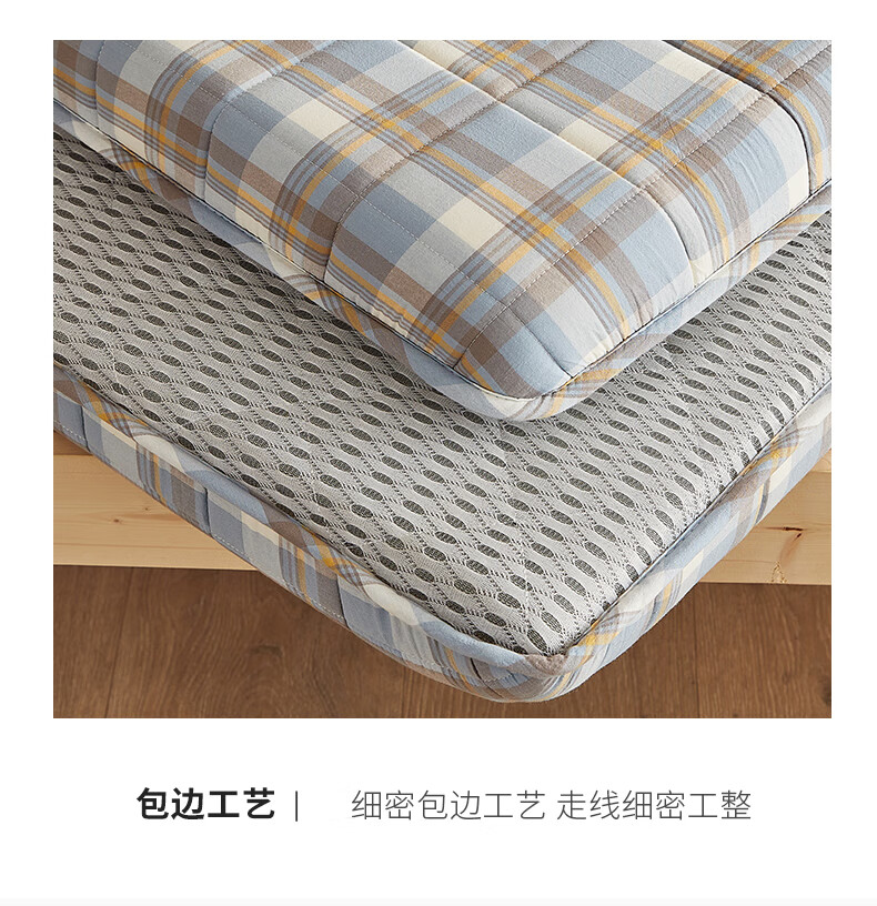 无印良品学生宿舍床垫遮盖物0.9x1.9米单人可折叠新疆棉花榻榻米床褥垫被 蓝灰中格【100%新疆棉】标准款 90*190cm【软硬适中 久睡不塌】