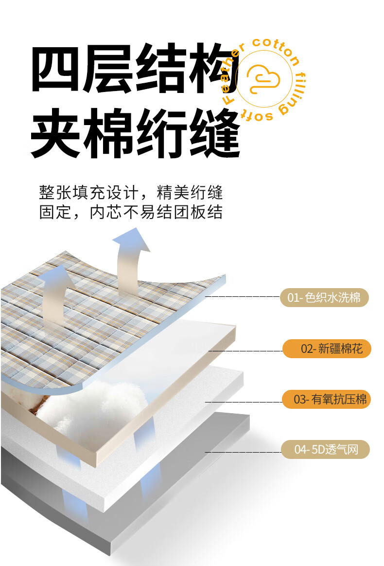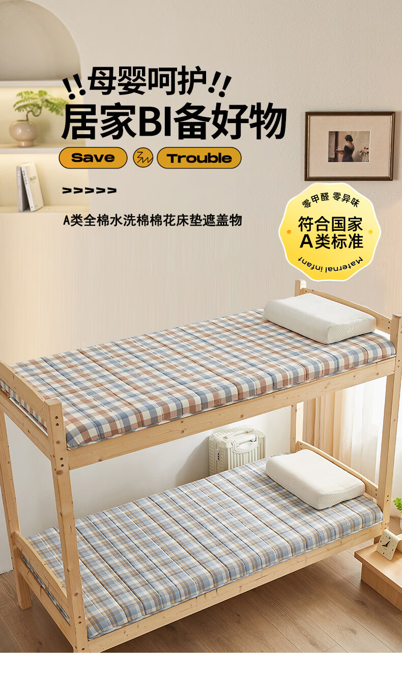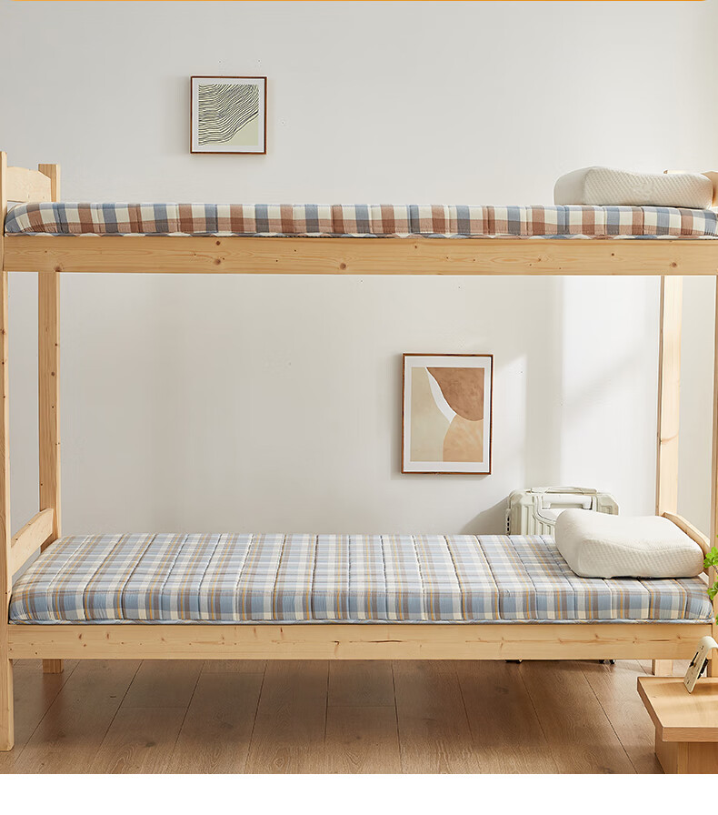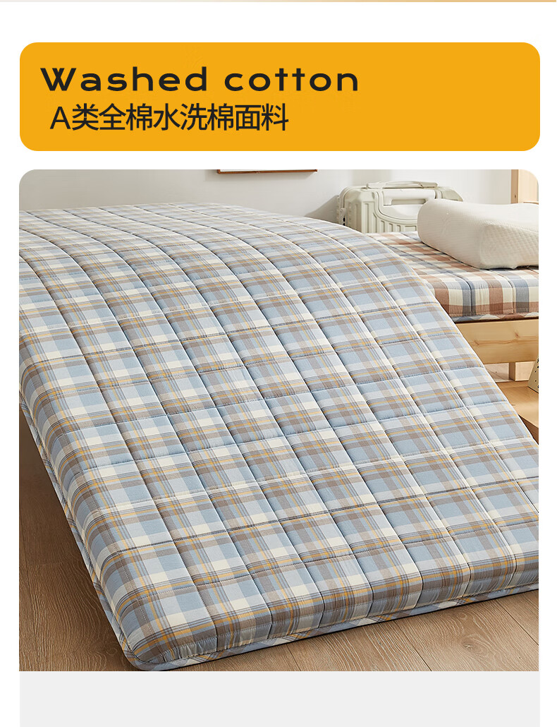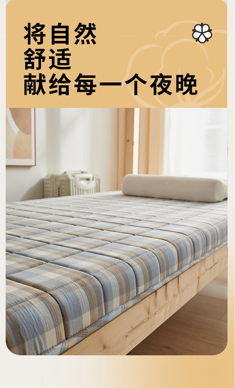 无印良品学生宿舍床垫遮盖物0.9x1.9米单人可折叠新疆棉花榻榻米床褥垫被 蓝灰中格【100%新疆棉】标准款 90*190cm【软硬适中 久睡不塌】