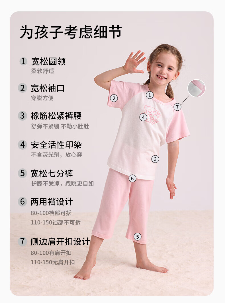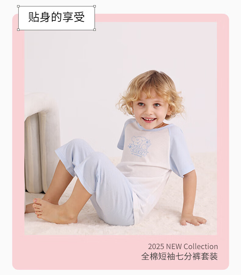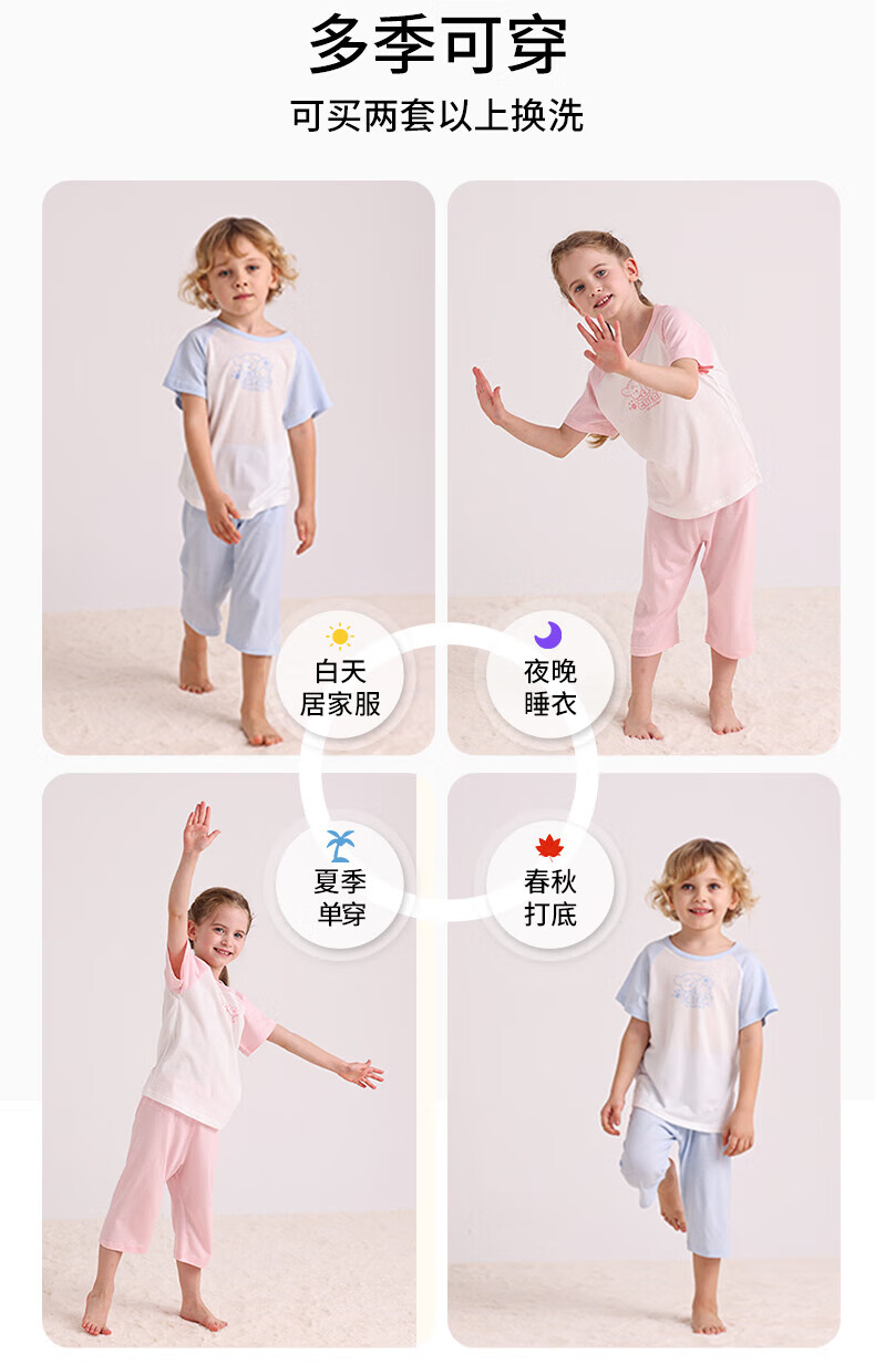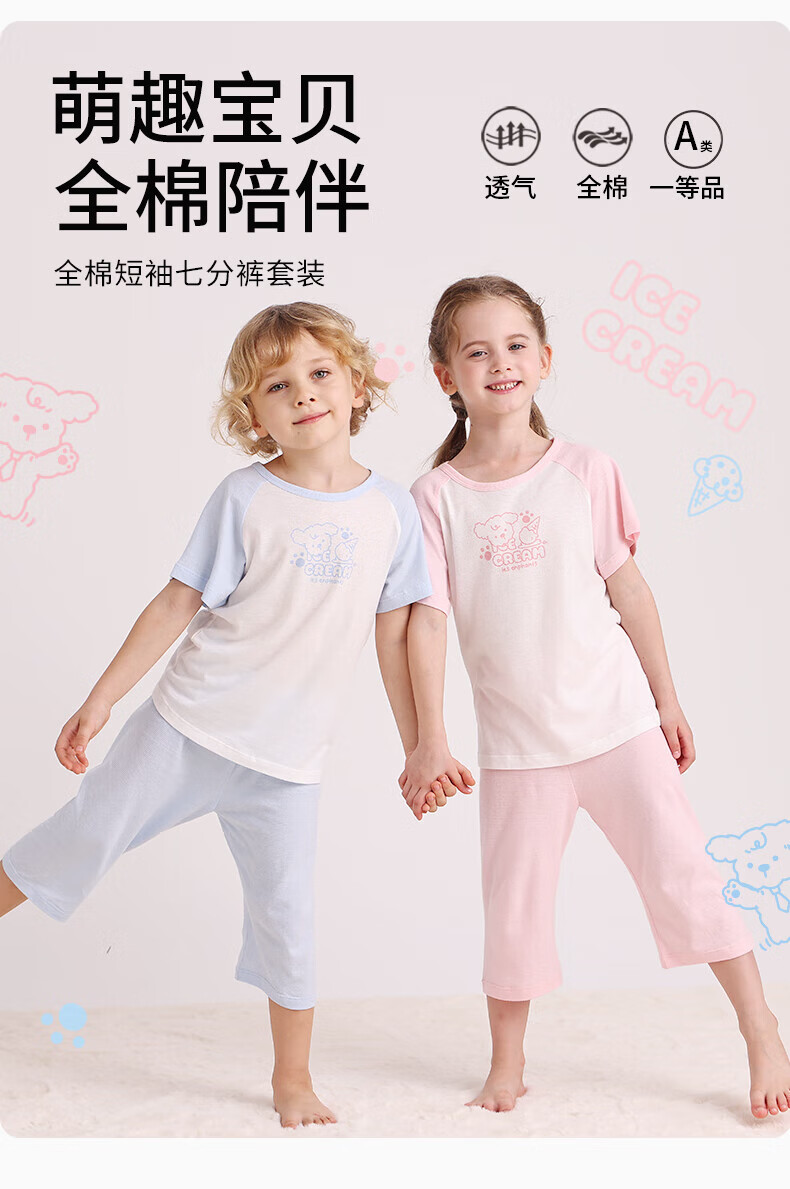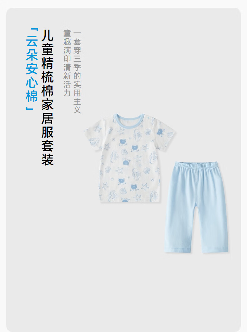 丽婴房(Les enphants)儿童全棉短袖七分裤家居服套装男童女童睡衣套装空调服 【100%棉】海洋传奇 140 cm