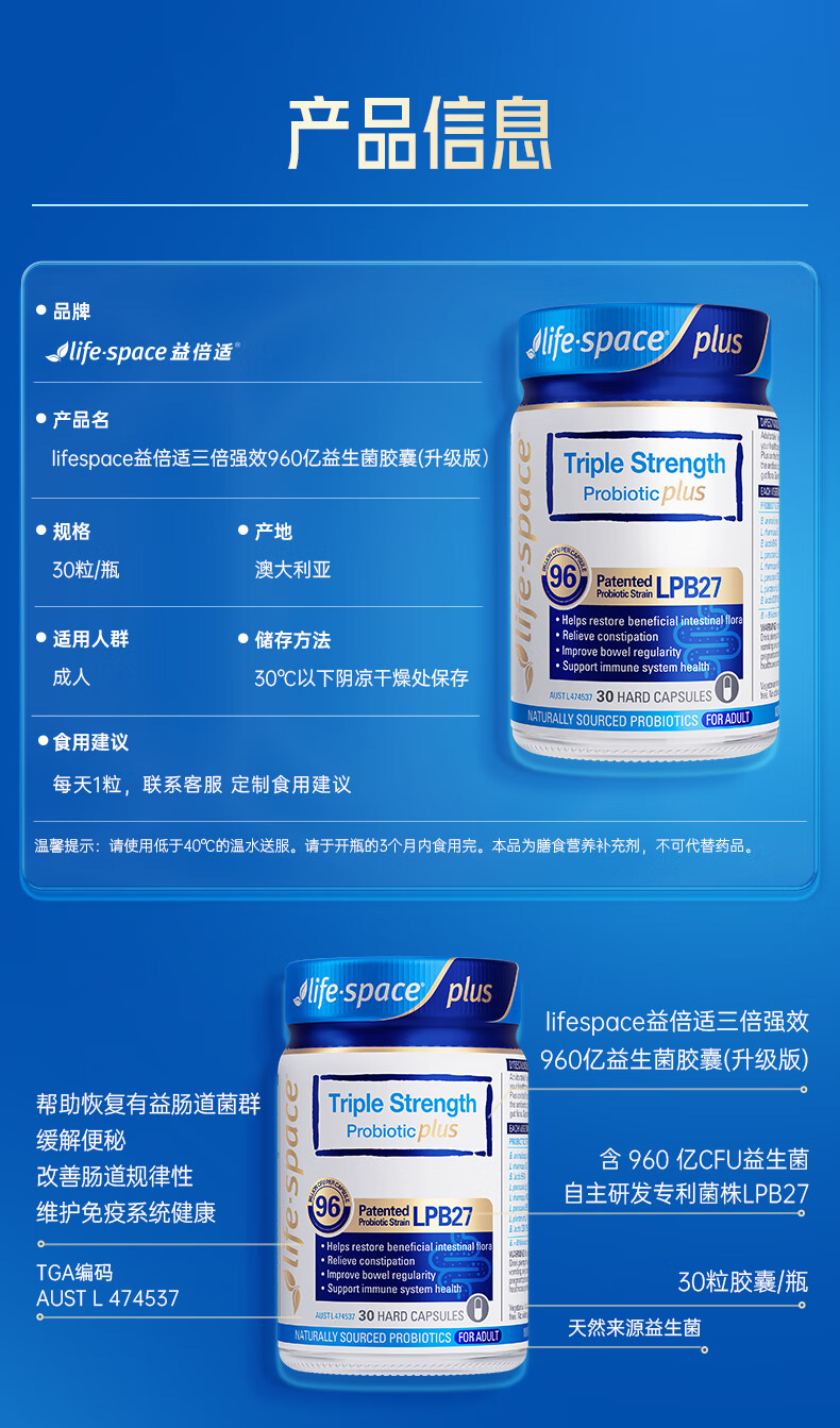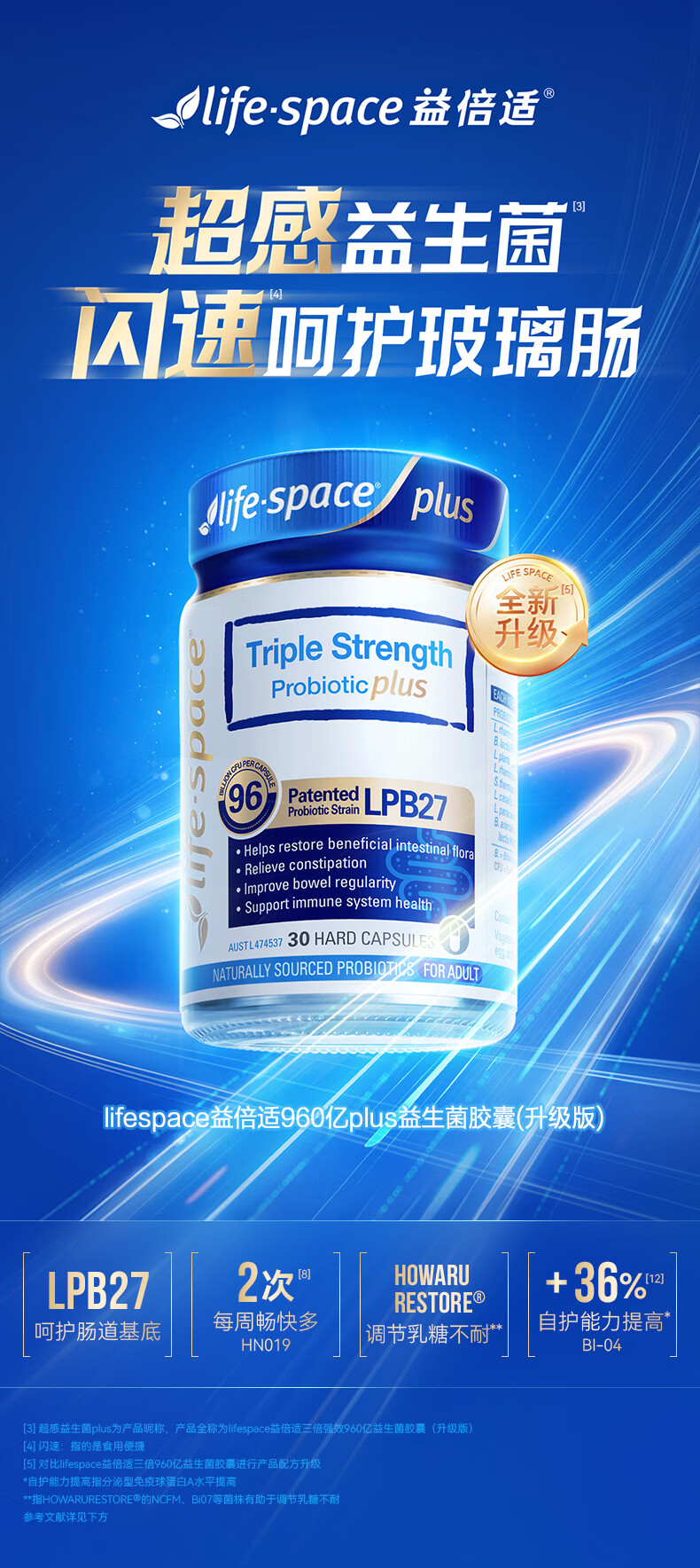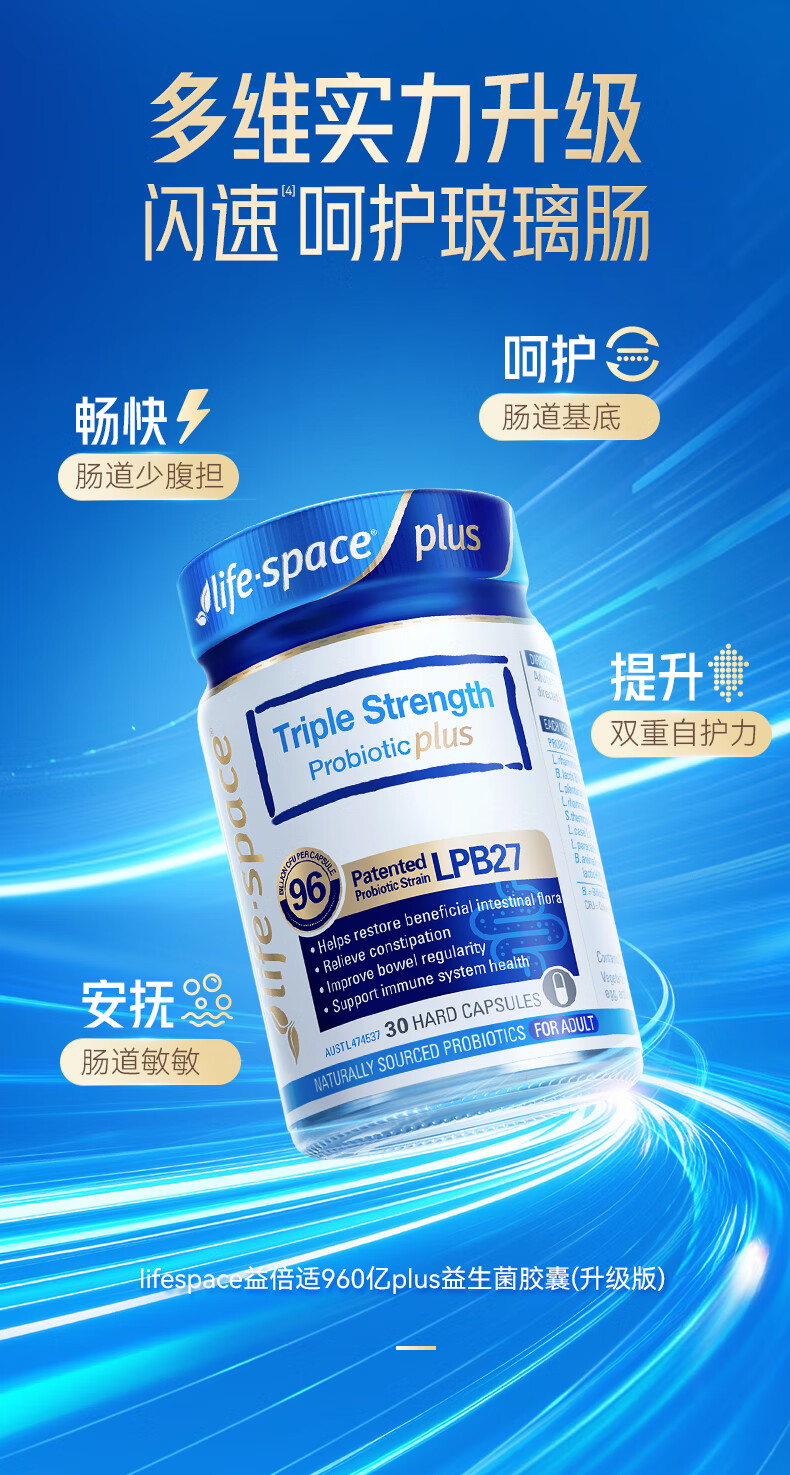 Life Space益倍适三倍强效960亿超感益生菌胶囊升级版30粒【王一博同款】