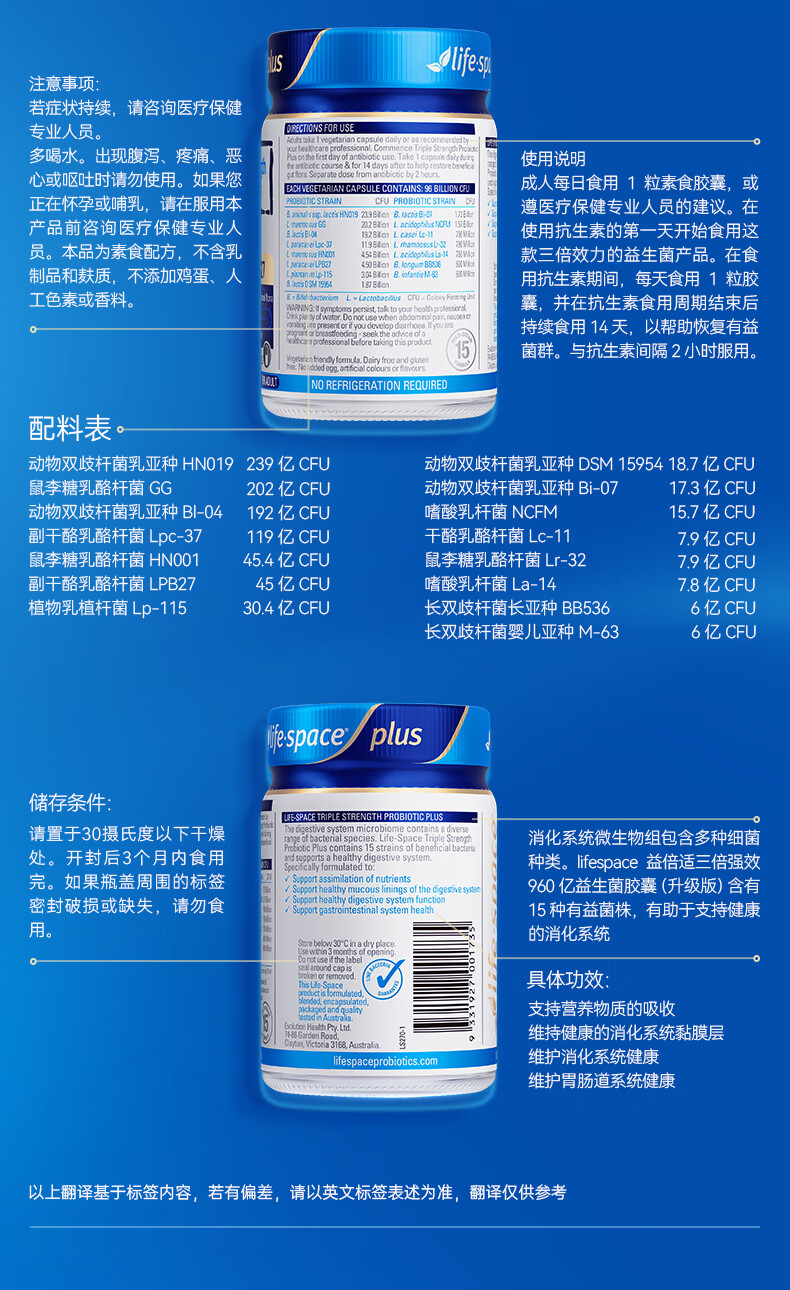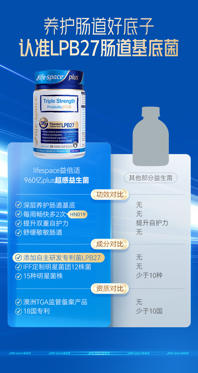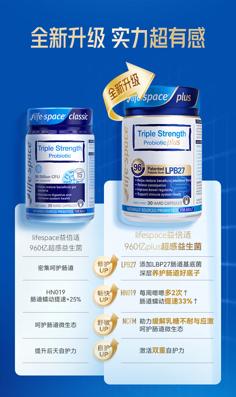 Life Space益倍适三倍强效960亿超感益生菌胶囊升级版30粒【王一博同款】