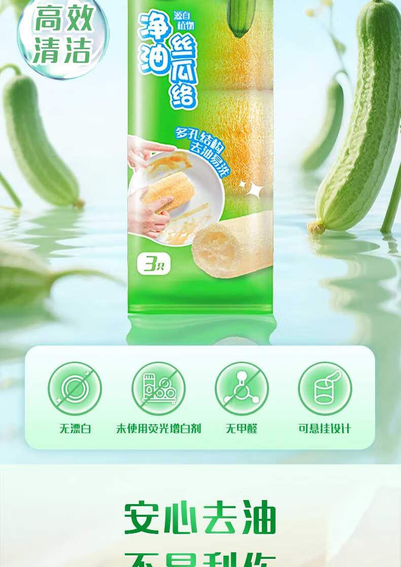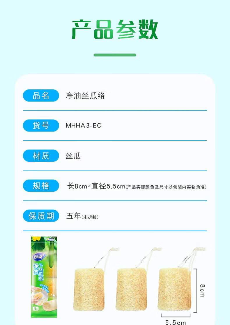 妙洁净油丝瓜络3只 丝瓜瓤洗碗布 锅刷 厨房水槽灶台清洁刷