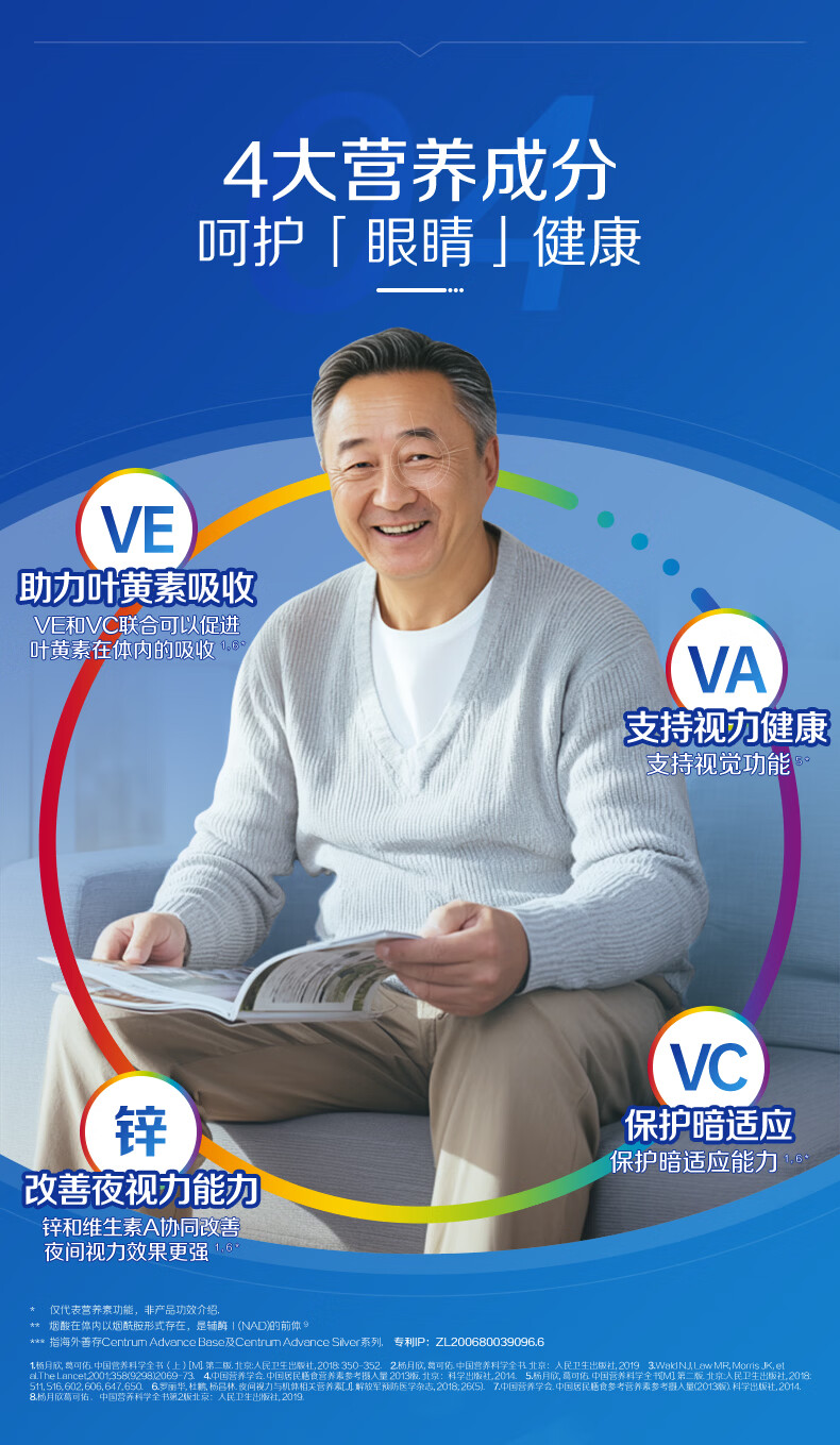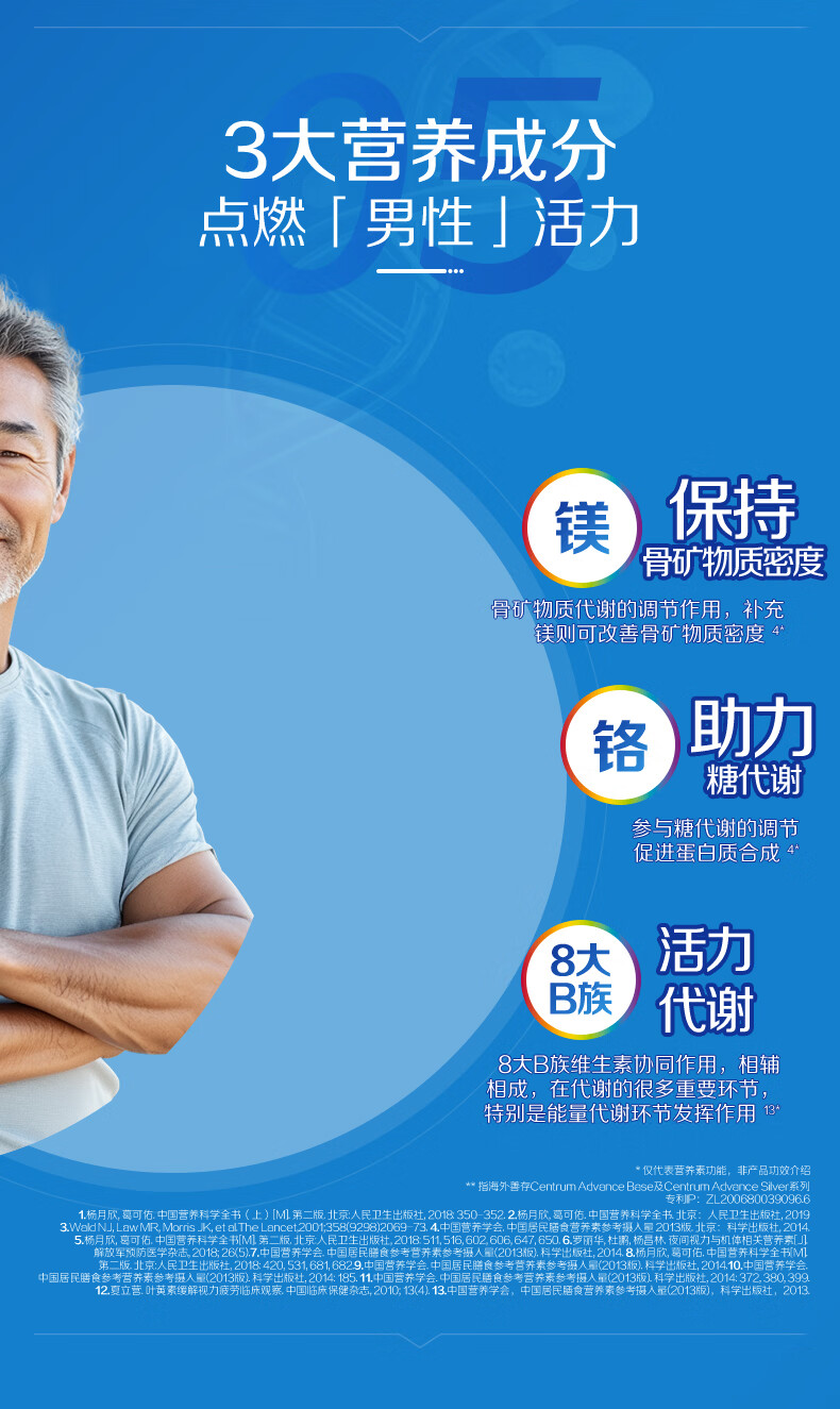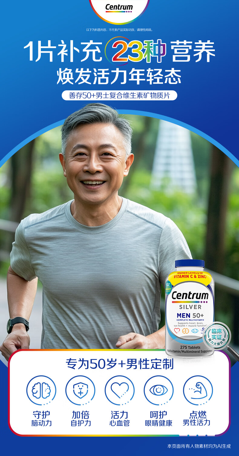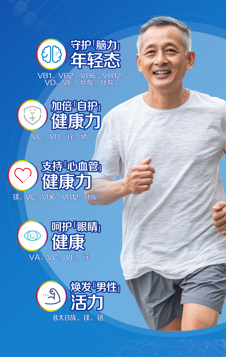 善存海外 银片中老年男士复合维生素 B族VCED3钙镁锌大脑维生素 275粒