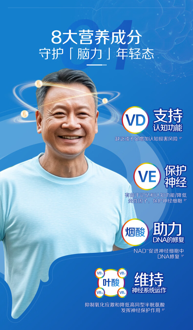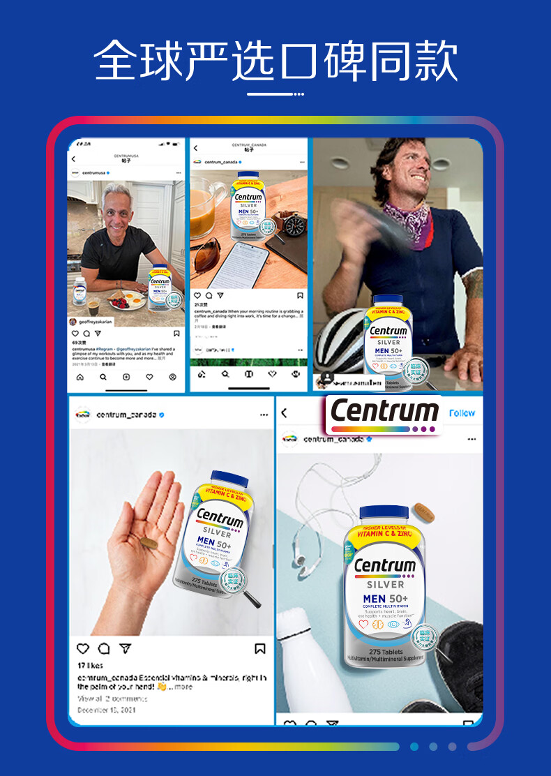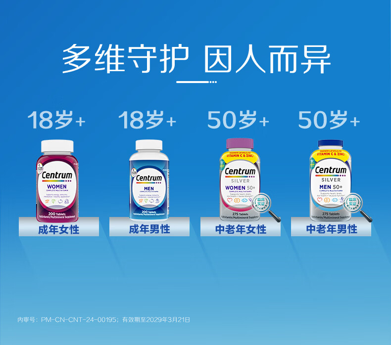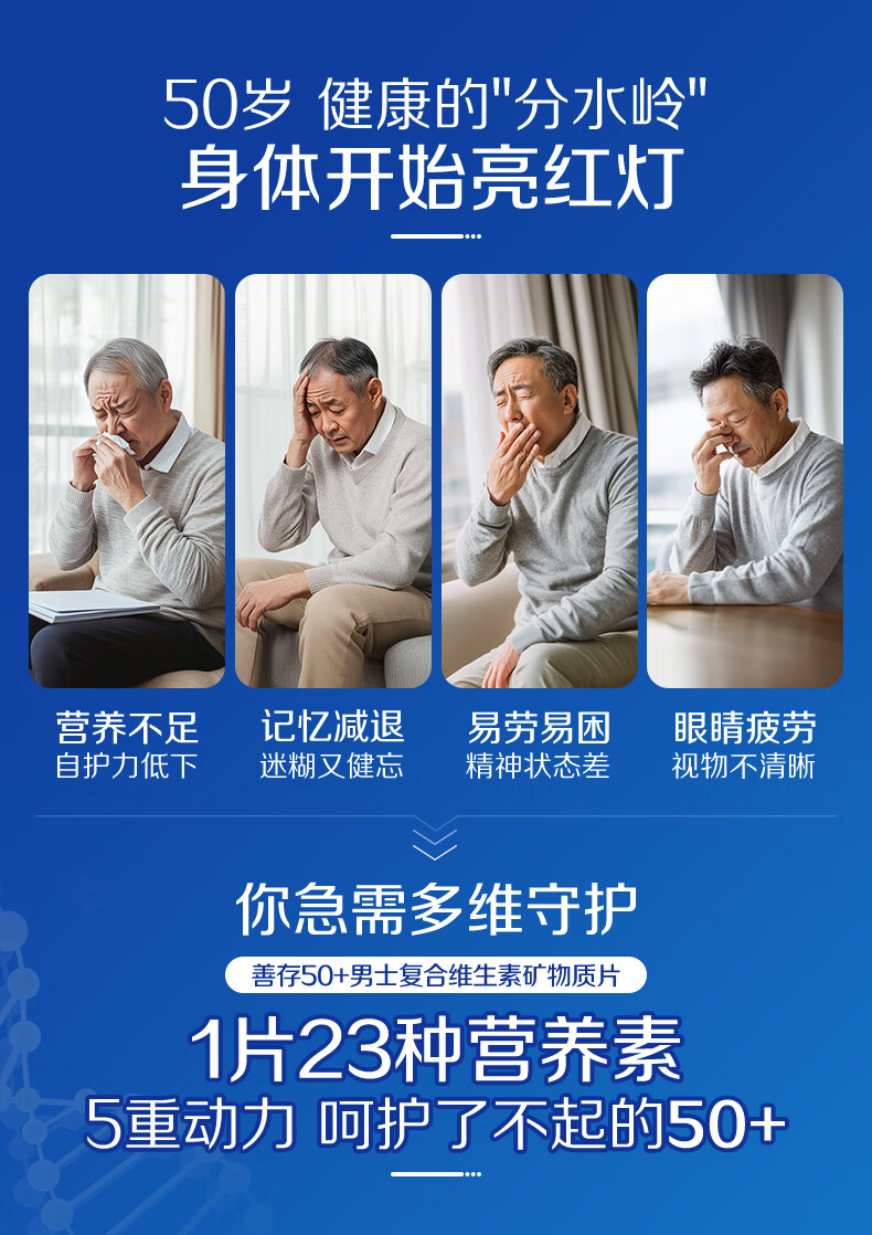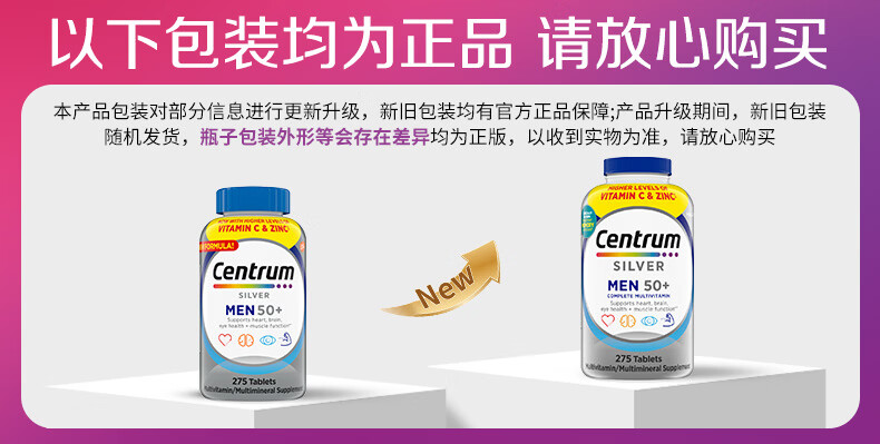 善存海外 银片中老年男士复合维生素 B族VCED3钙镁锌大脑维生素 275粒