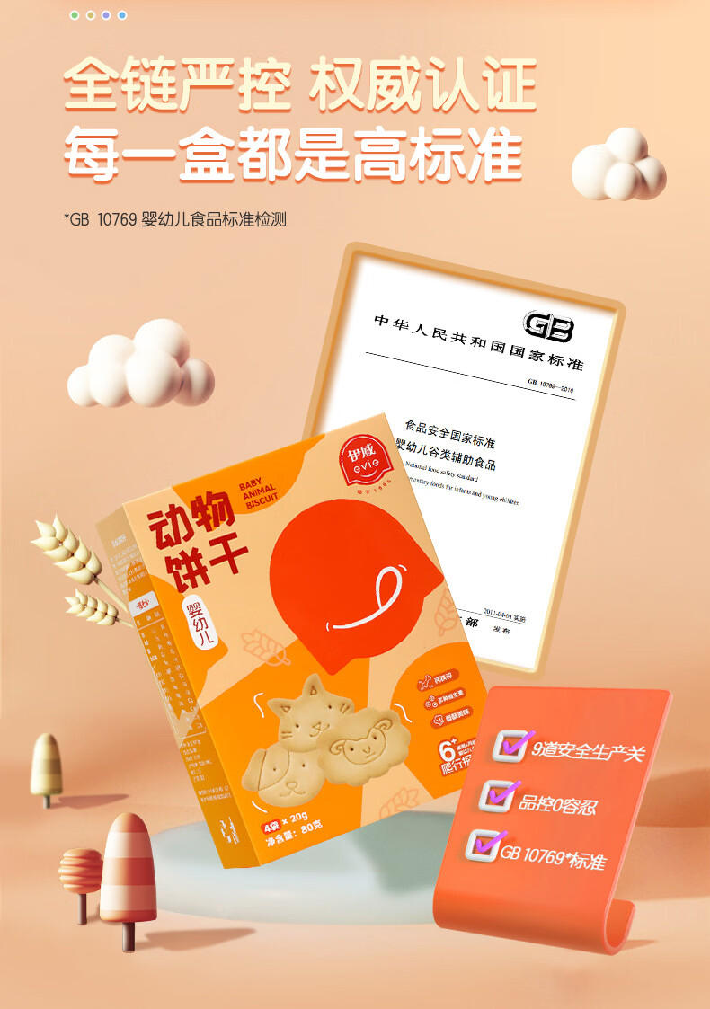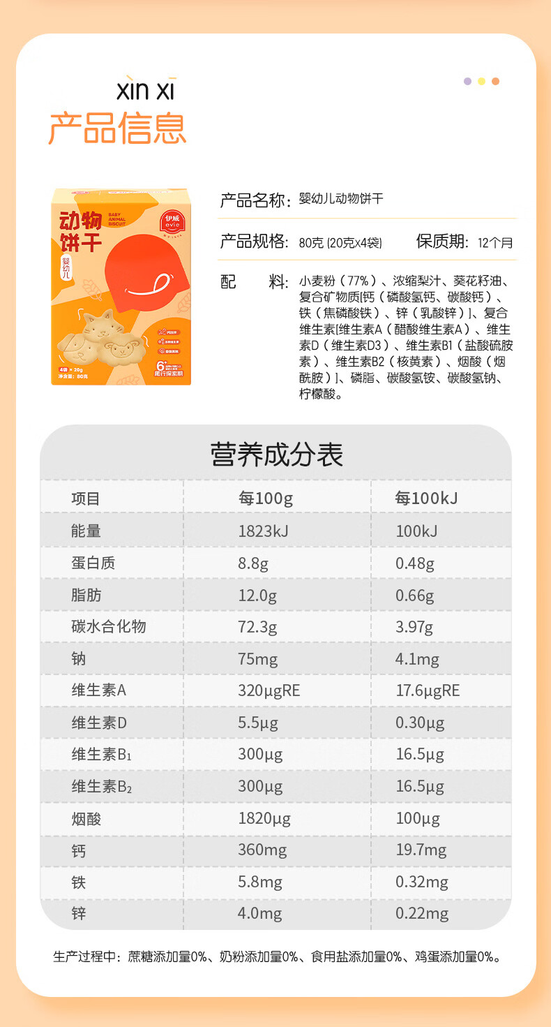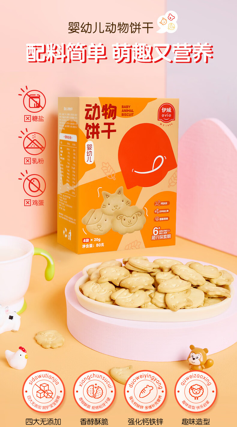 伊威(Eastwes)宝宝零食 婴幼儿动物饼干80克(4袋) 不添食盐蔗糖奶粉鸡蛋6个月+