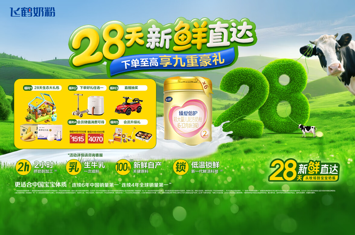 飞鹤臻爱倍护超级飞帆 婴幼儿配方奶粉 2段(6-12月)900g*6罐 28天新鲜