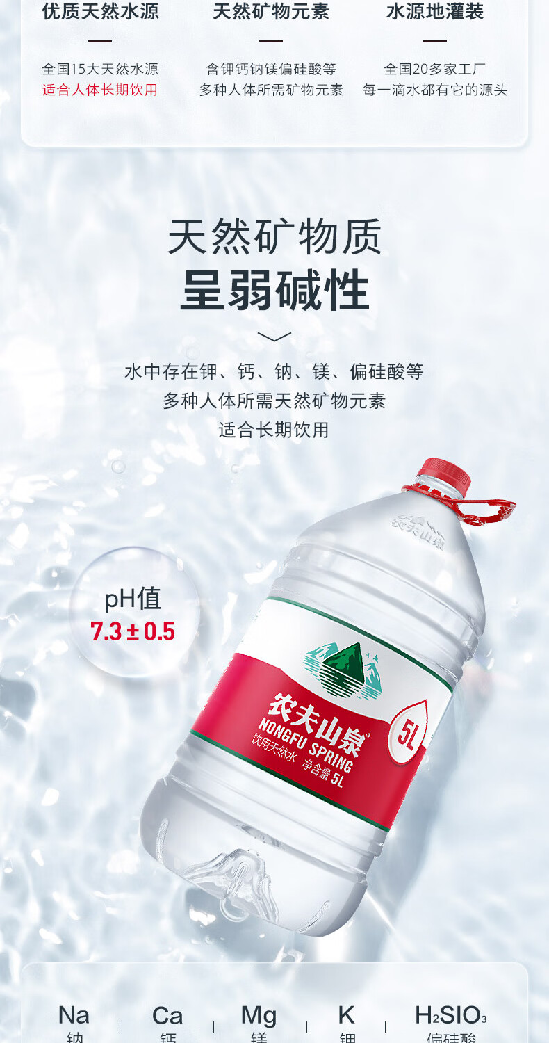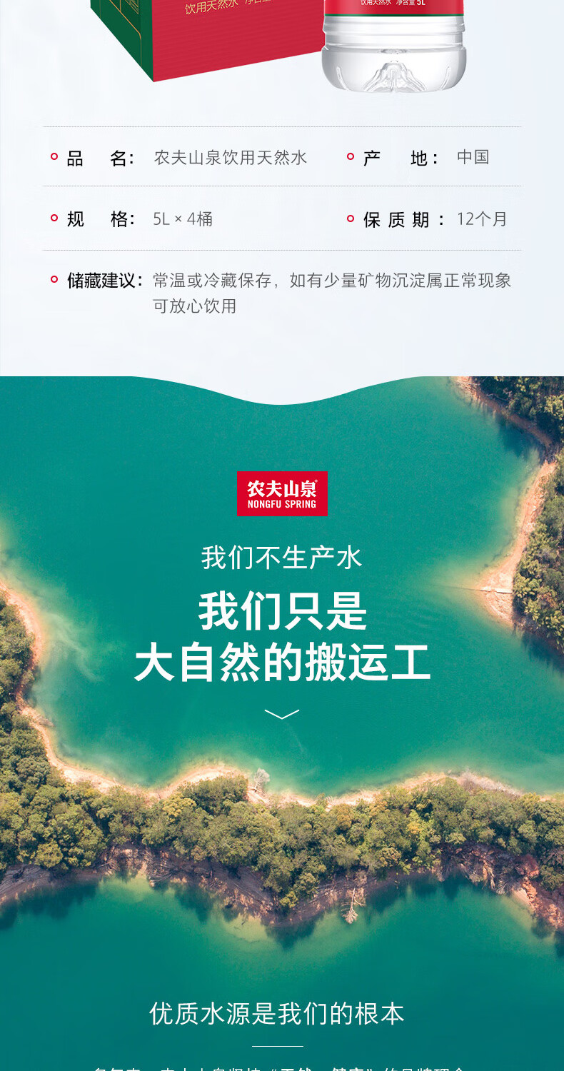 农夫山泉 饮用水 饮用天然水5L*4桶 家庭桶装水 5L*4一箱装