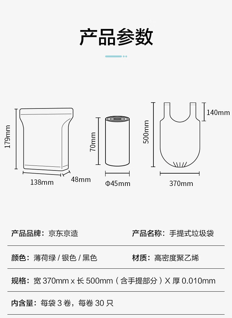 京东京造 背心式垃圾袋37*50cm*90只 10μ1丝 手提厨房家用加厚袋小号