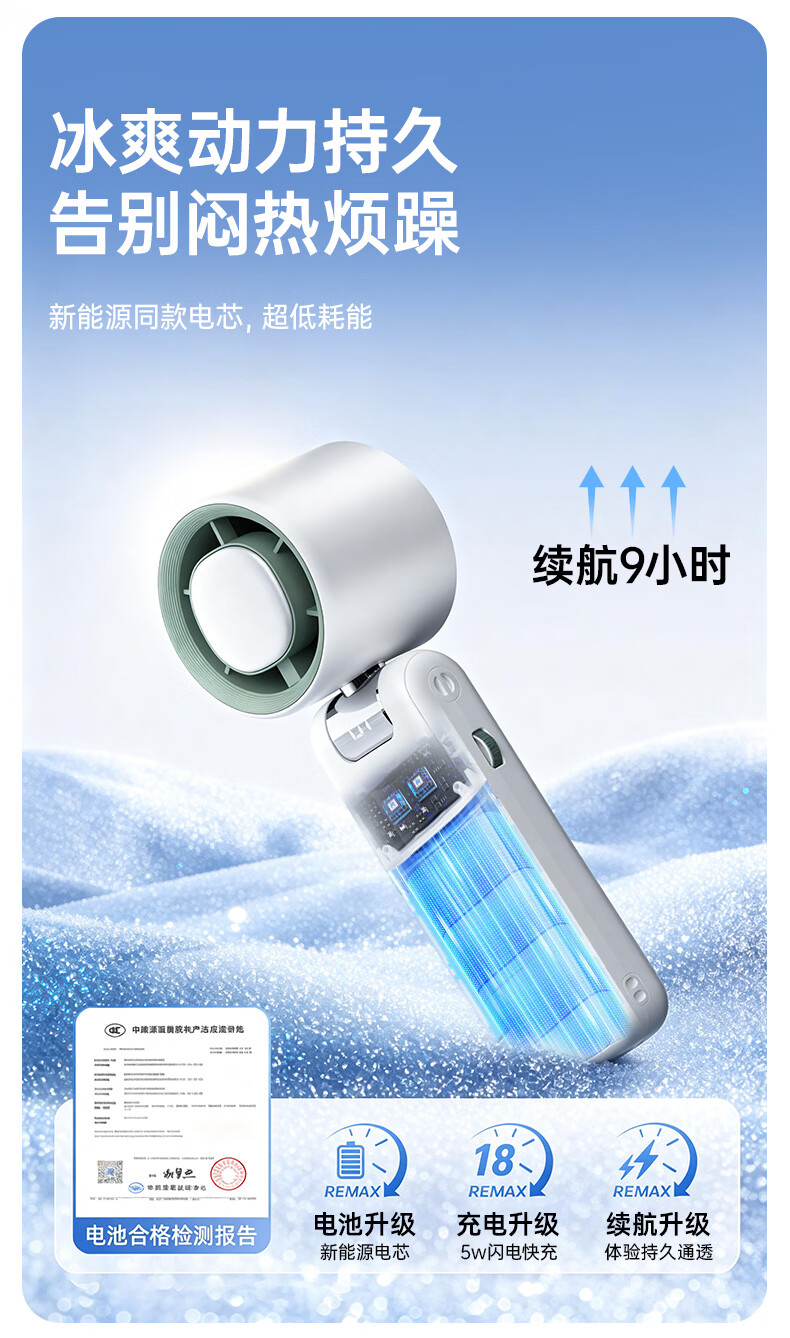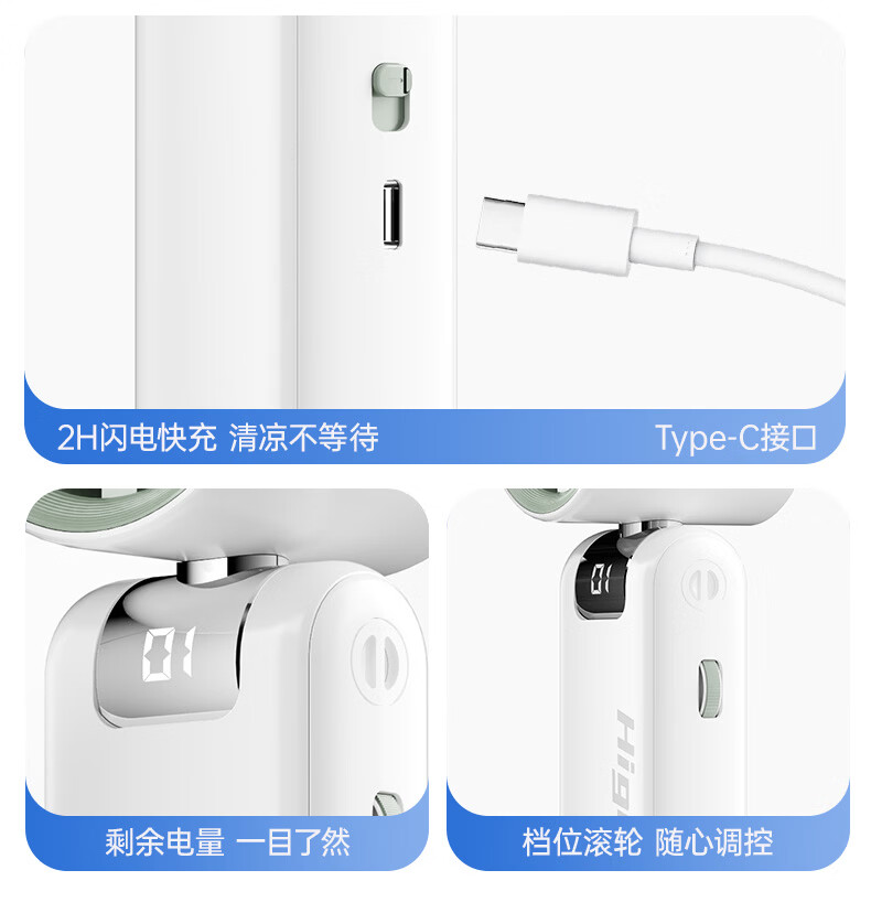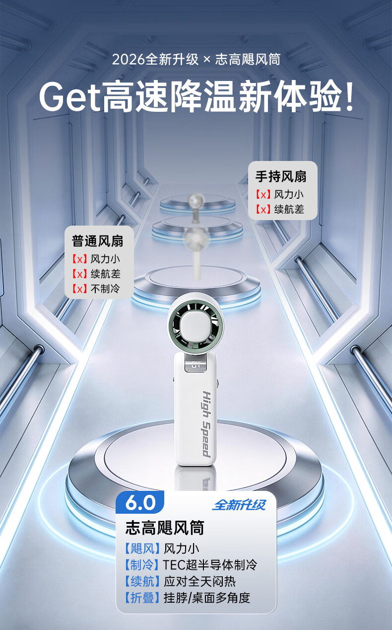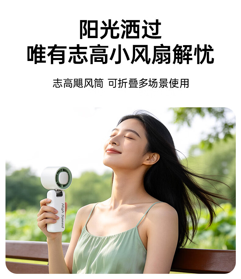 志高(CHIGO)手持小风扇制冷高速小型便携桌面电风扇可折叠强力长续航户外挂脖随身携带办公室大风力半导体冰敷