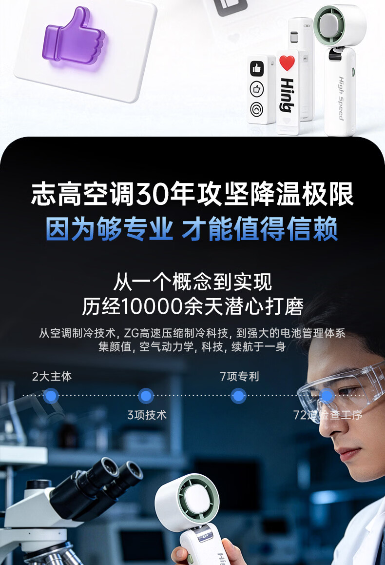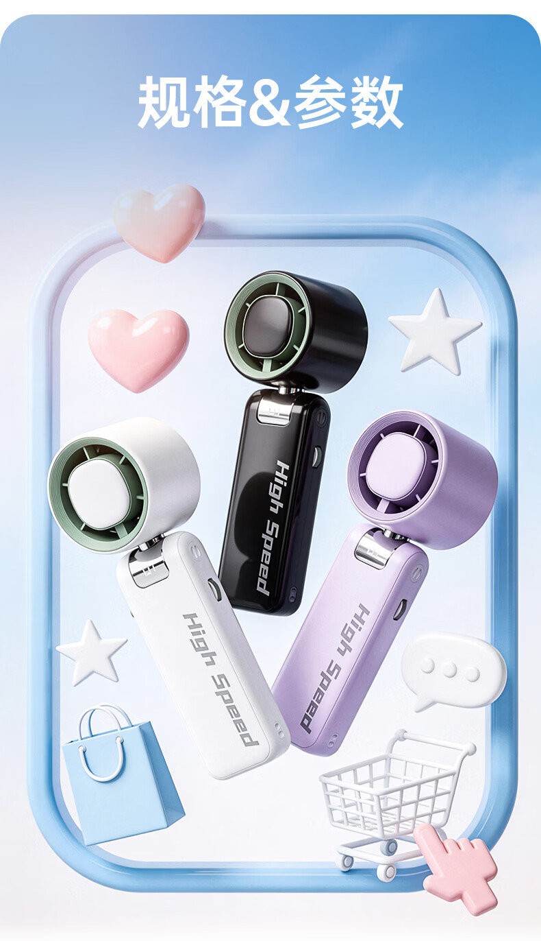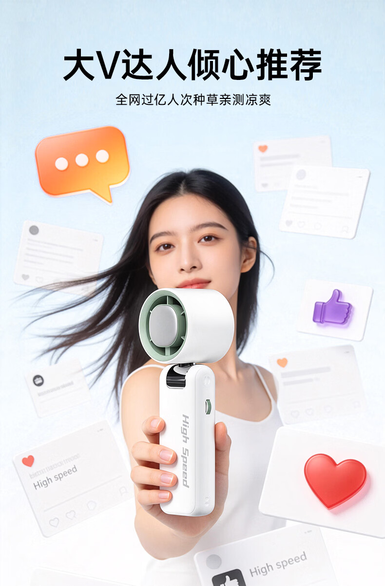 志高(CHIGO)手持小风扇制冷高速小型便携桌面电风扇可折叠强力长续航户外挂脖随身携带办公室大风力半导体冰敷