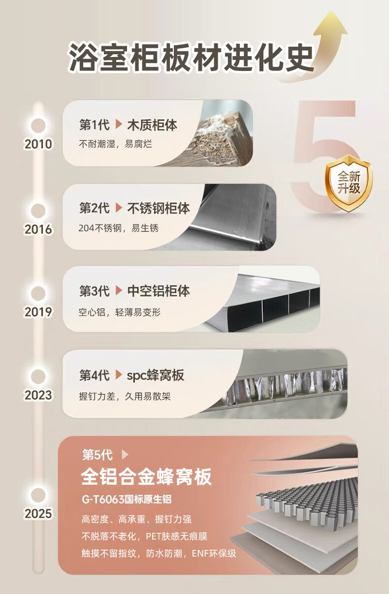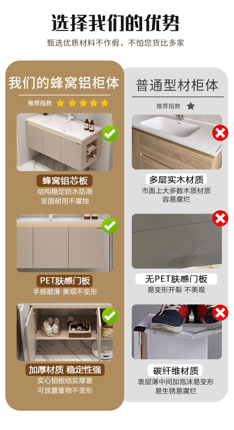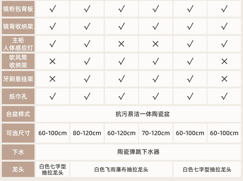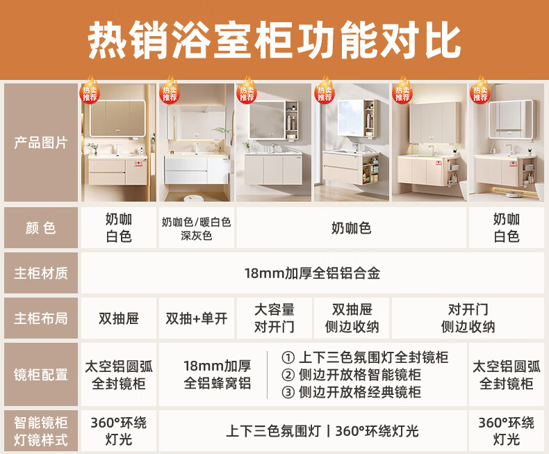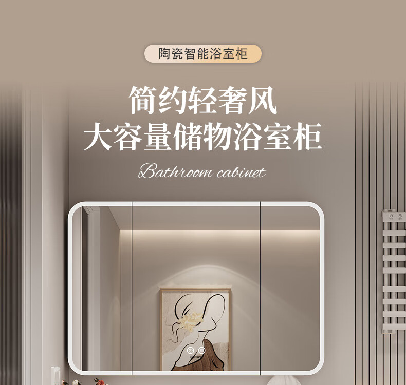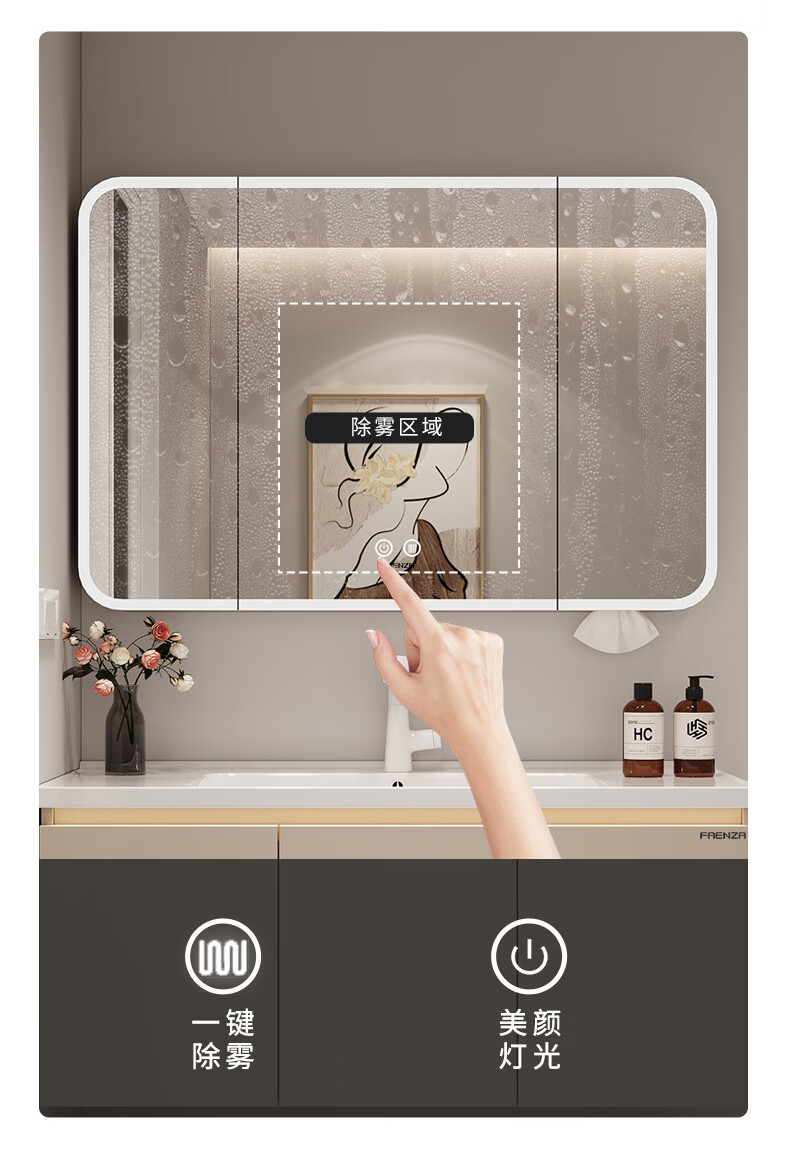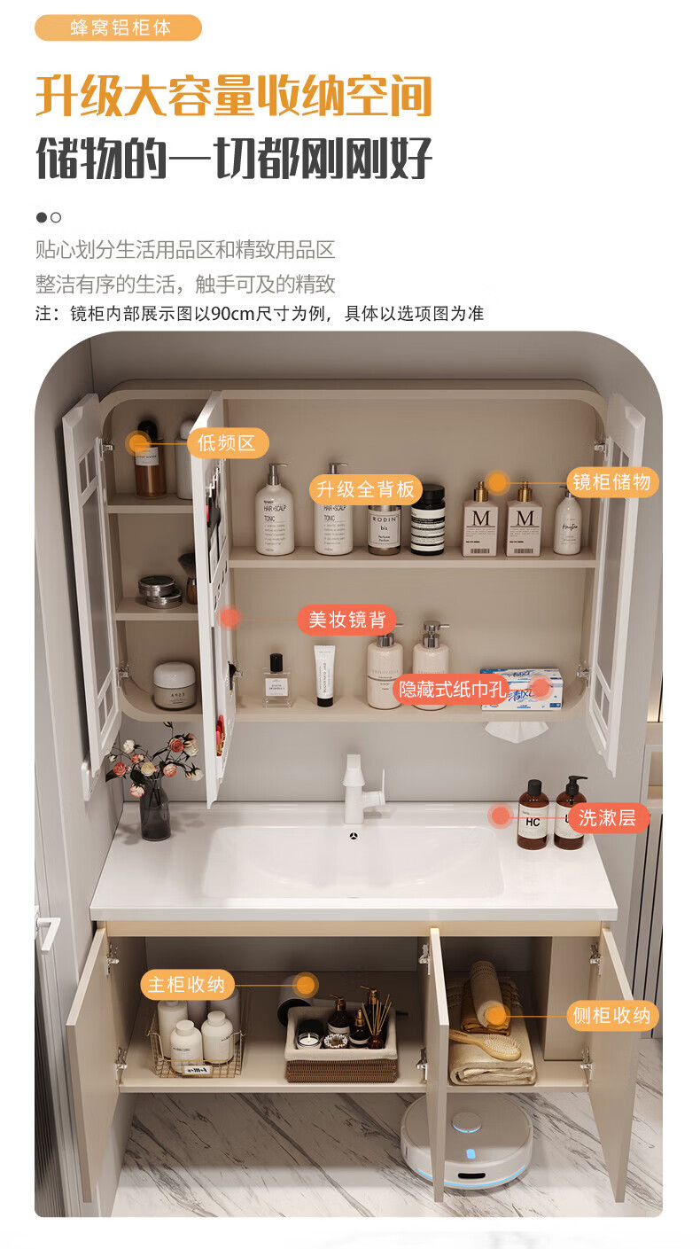 法恩莎奶油风浴室柜带侧边格陶瓷一体盆蜂窝铝卫生间洗手洗脸盆柜洗漱台 60cm奶咖|美妆镜柜|右侧格