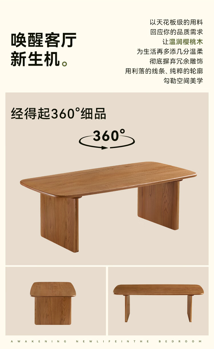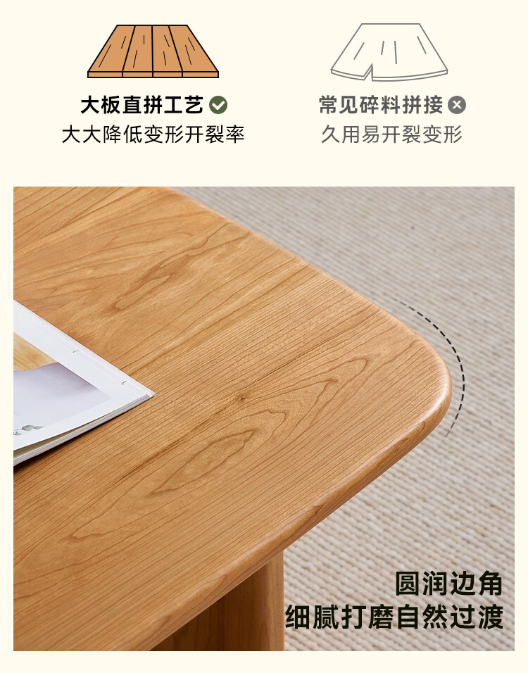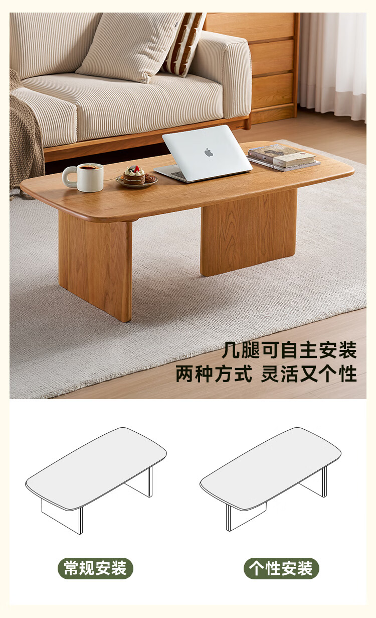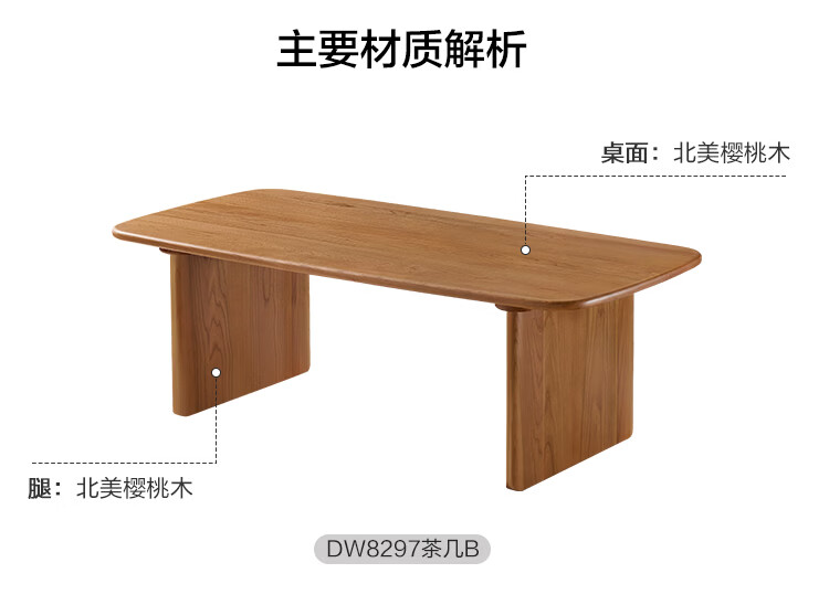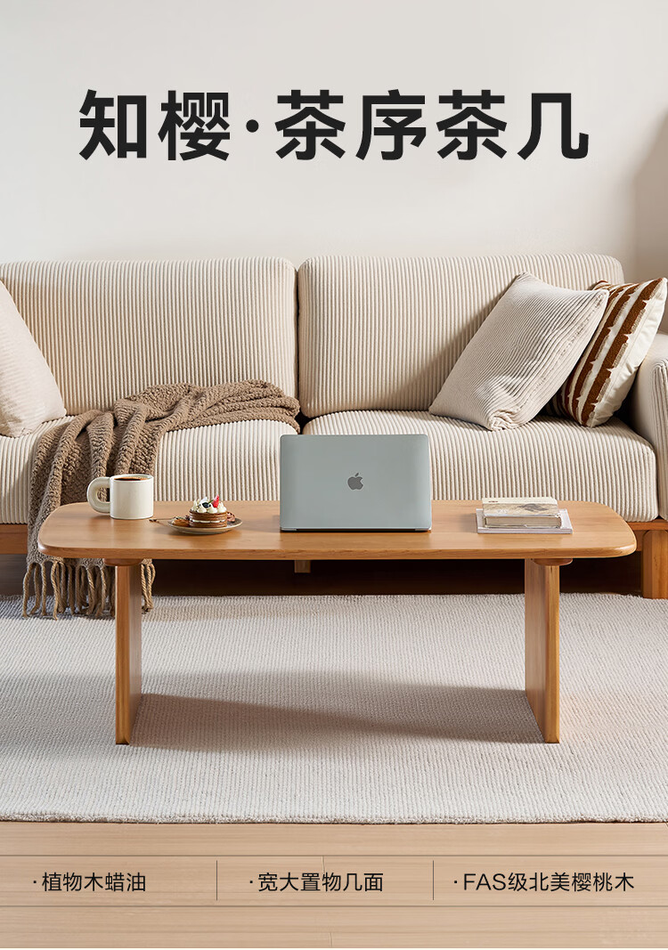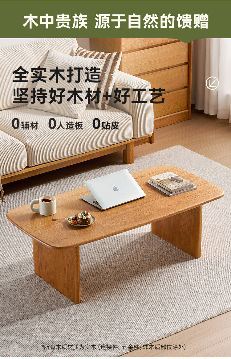 全友家居原木风全实木茶几小户型家用北美樱桃木置物桌小茶桌矮桌家具 【樱桃木】茶几