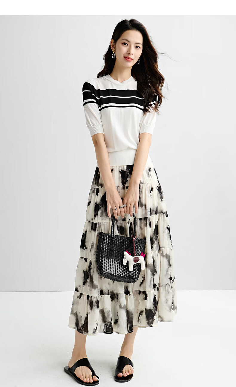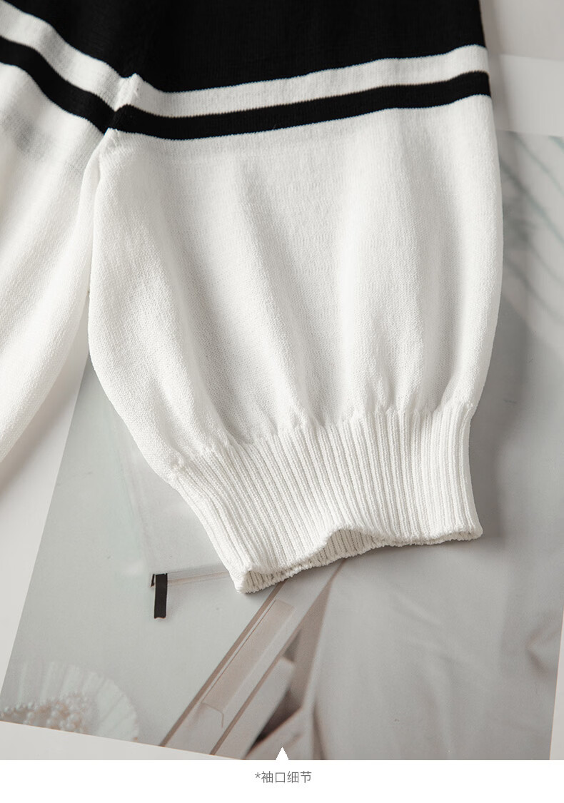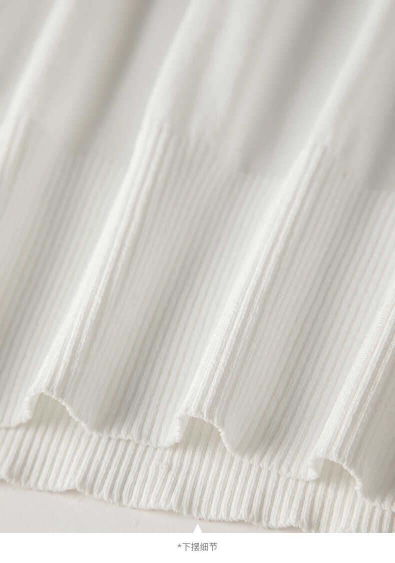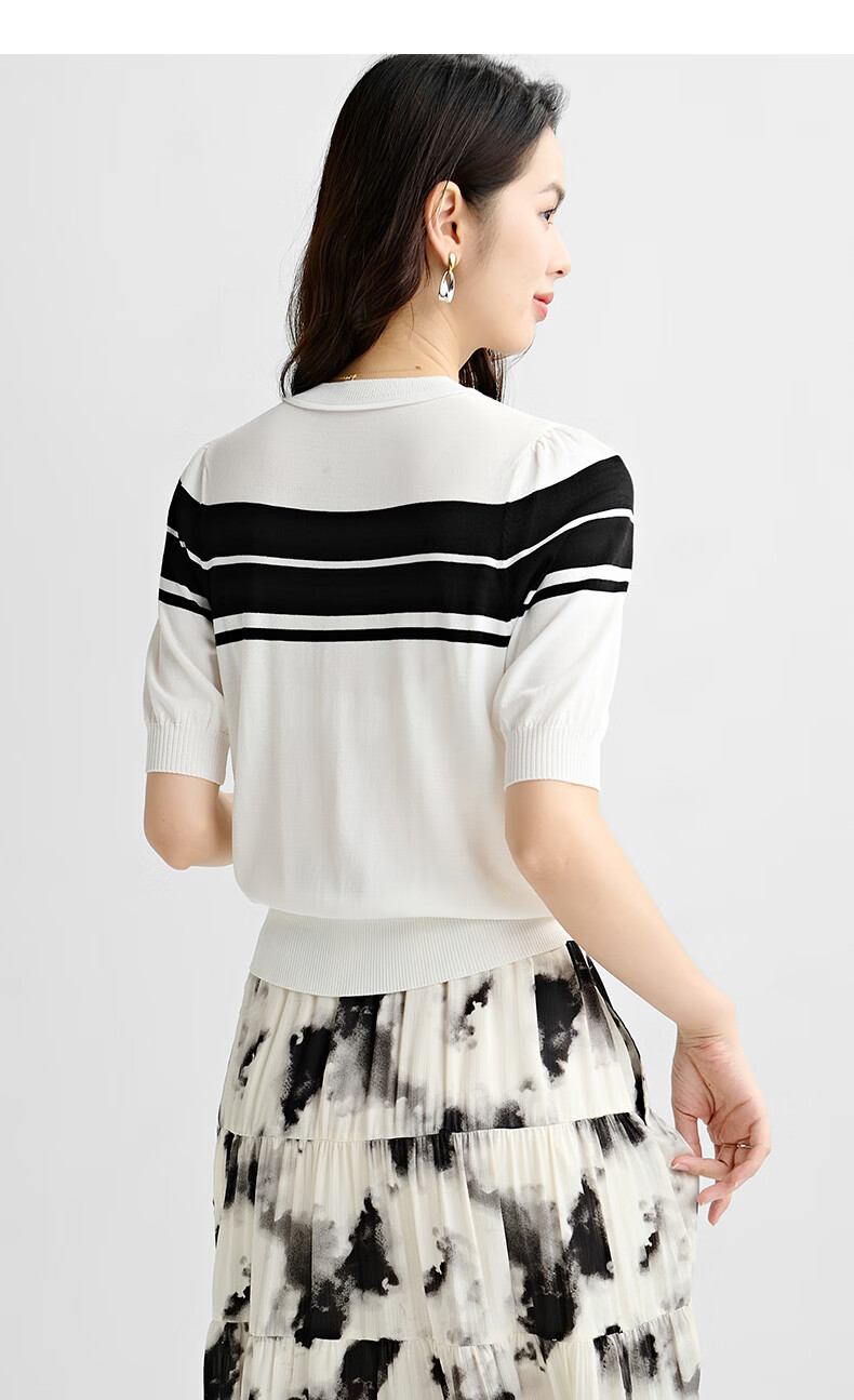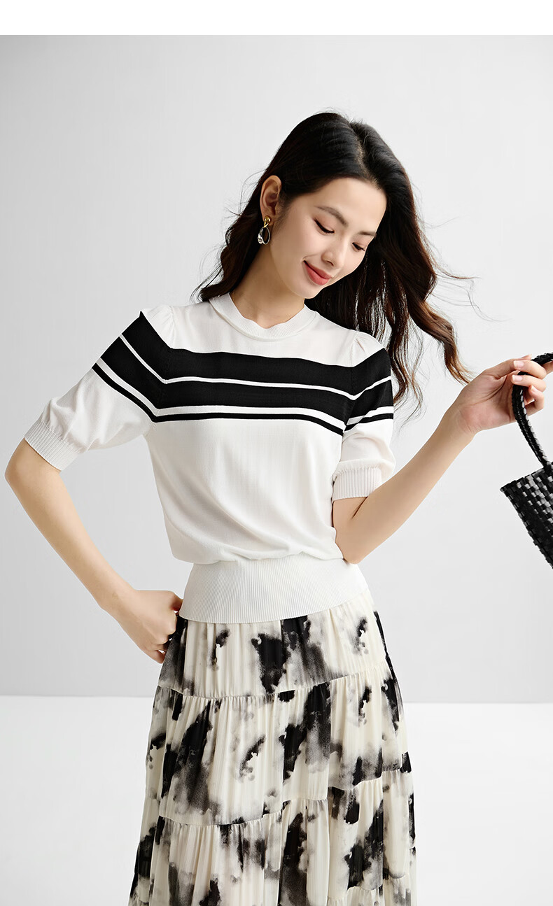 晚白2026年春夏款时尚条纹圆领短袖弹力舒适泡泡袖冰丝凉感针织T女 白色 S