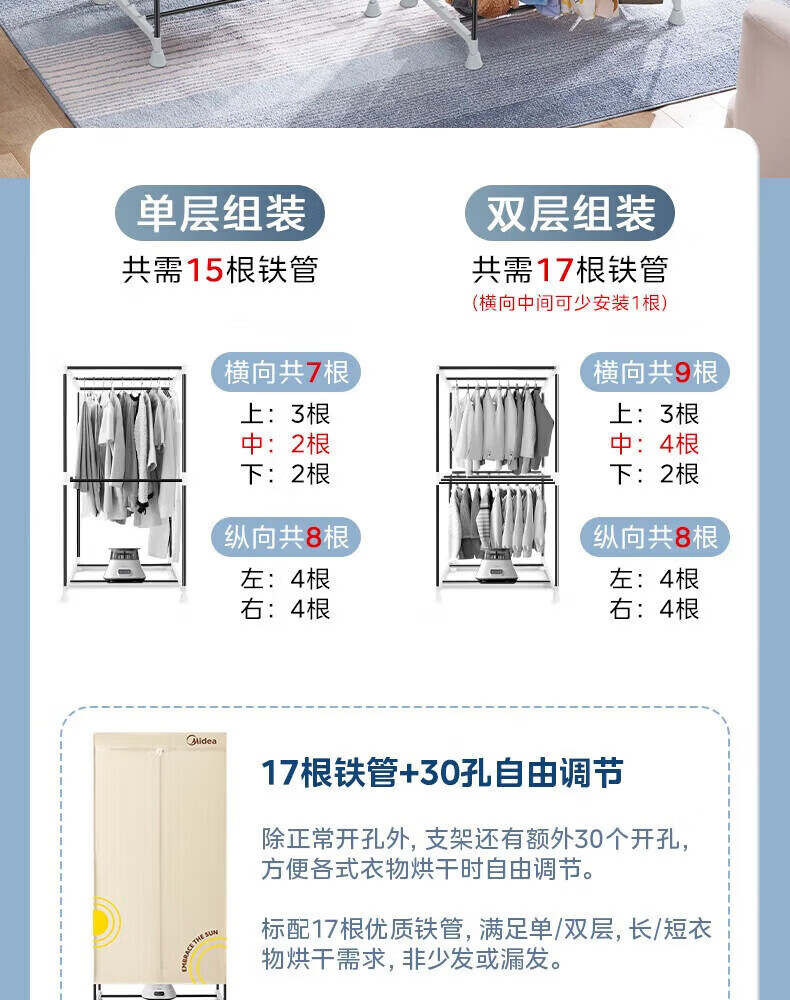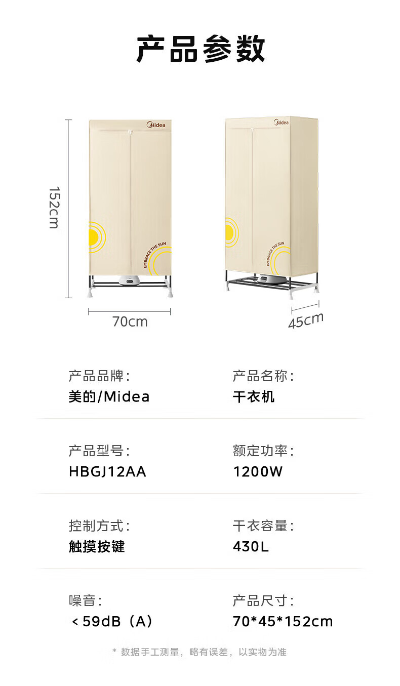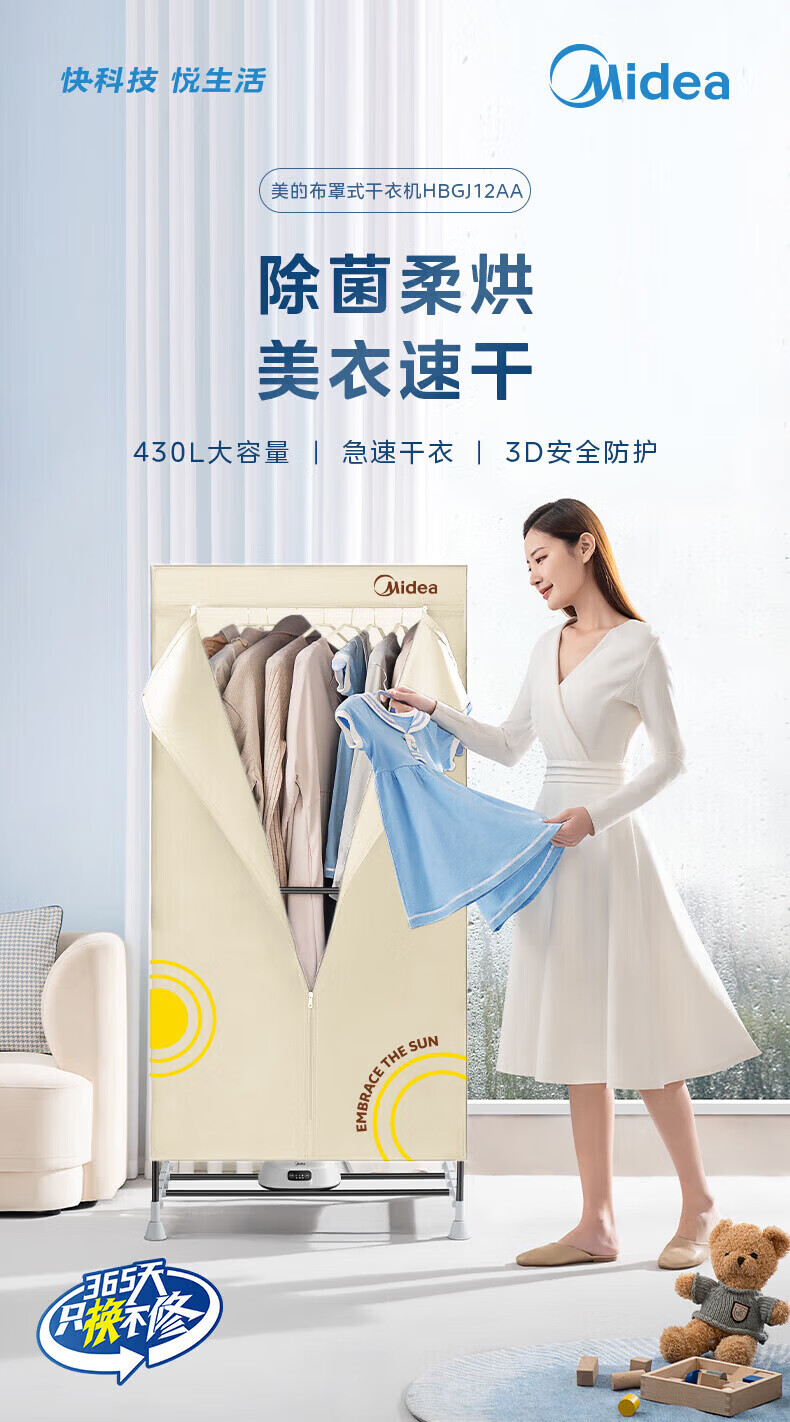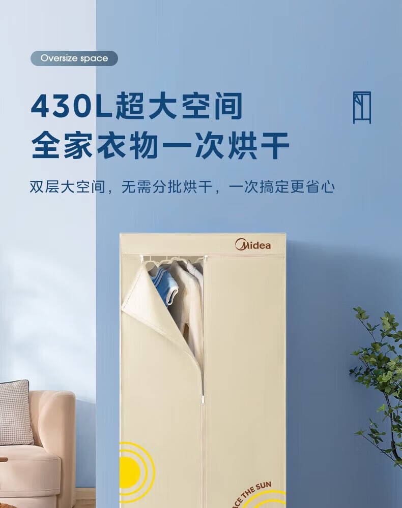 美的(Midea)【阴雨天必备】大容量家庭干衣机烘衣机家用婴儿衣物风干机360循环热风消毒大容量除菌除螨烘衣机 6H定时+智能触控 430L