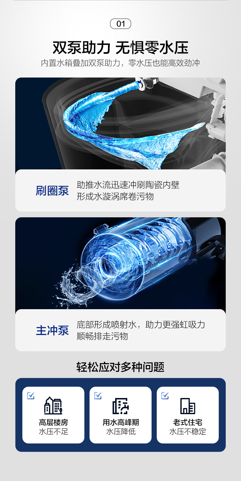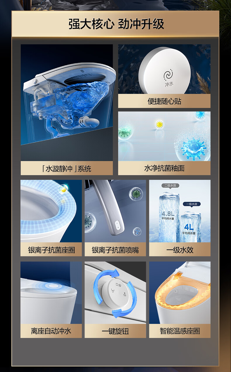 九牧(JOMOO)轻智能马桶泡沫盾大座圈家用马桶一体机虹吸坐便器白魔方SQ8450 【旋风魔力泡】0压限制+脚感冲水 305坑距(290-390以内选择)
