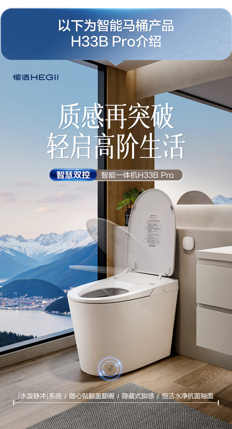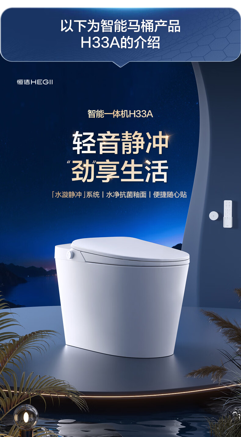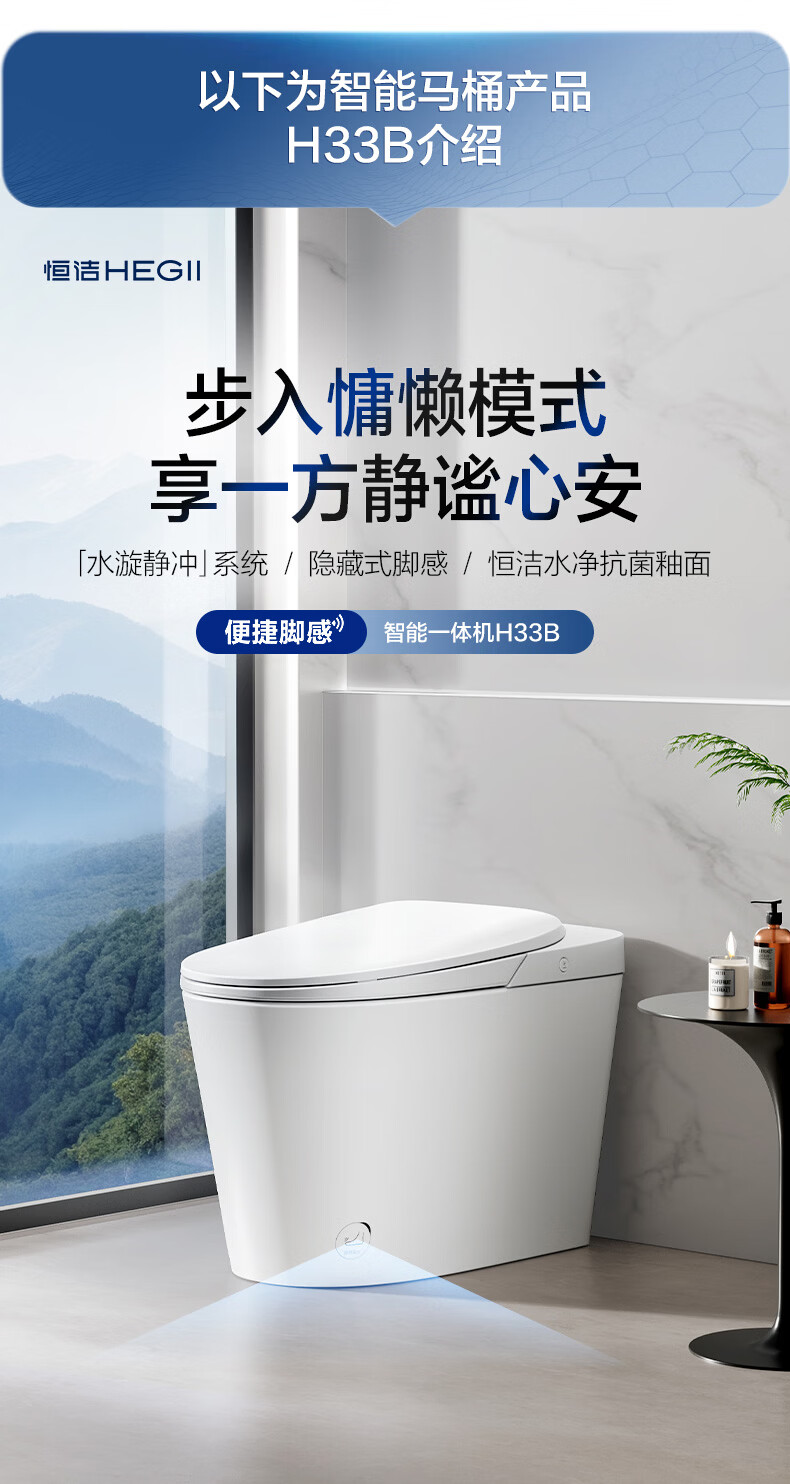 恒洁(HEGII)智能马桶静音带水箱全自动冲洗加热烘干一体家用坐便器包安装送货 【店铺热卖】随心贴+静音升级H33A 305坑距 (预留290-390mm)