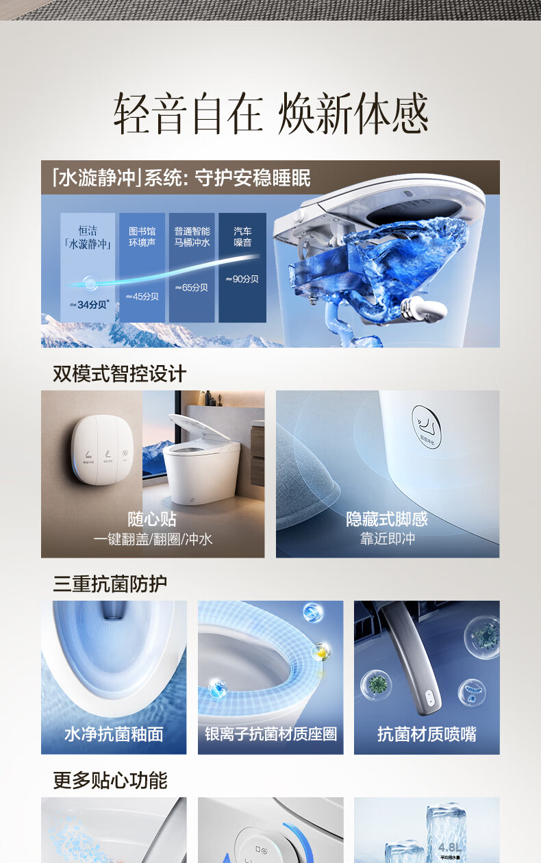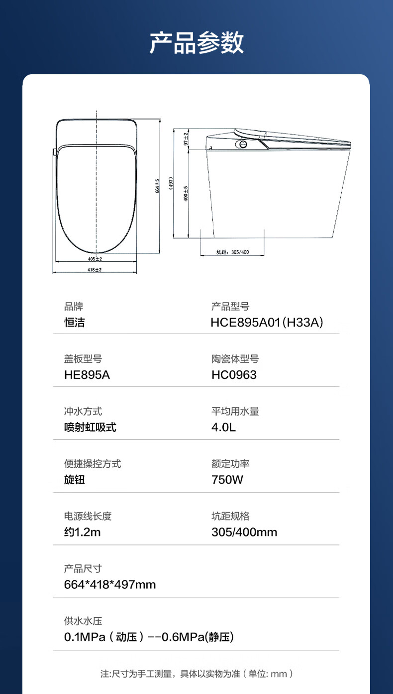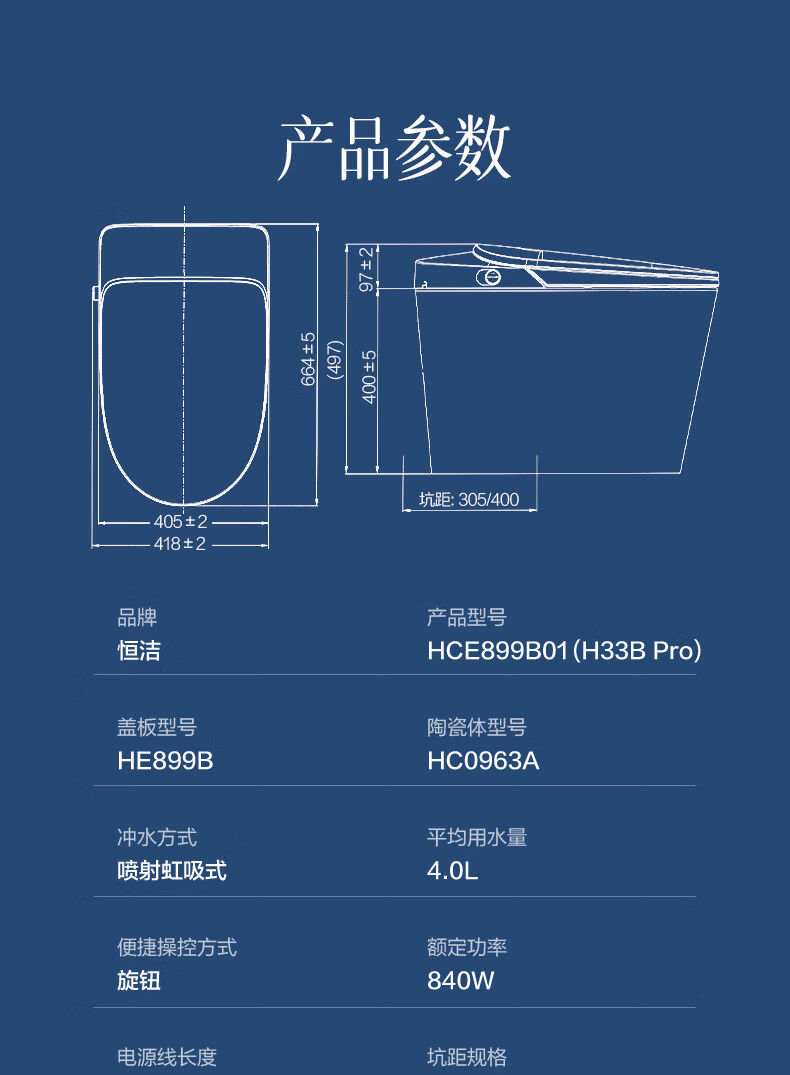 恒洁(HEGII)智能马桶静音带水箱全自动冲洗加热烘干一体家用坐便器包安装送货 【店铺热卖】随心贴+静音升级H33A 305坑距 (预留290-390mm)