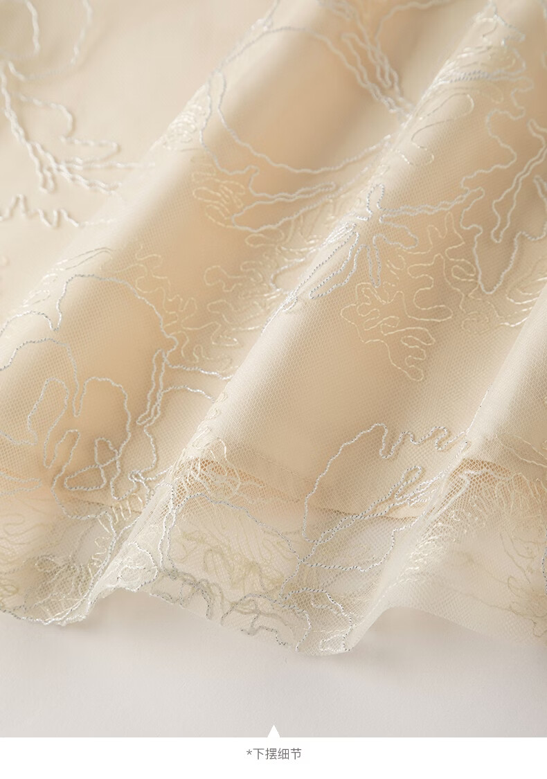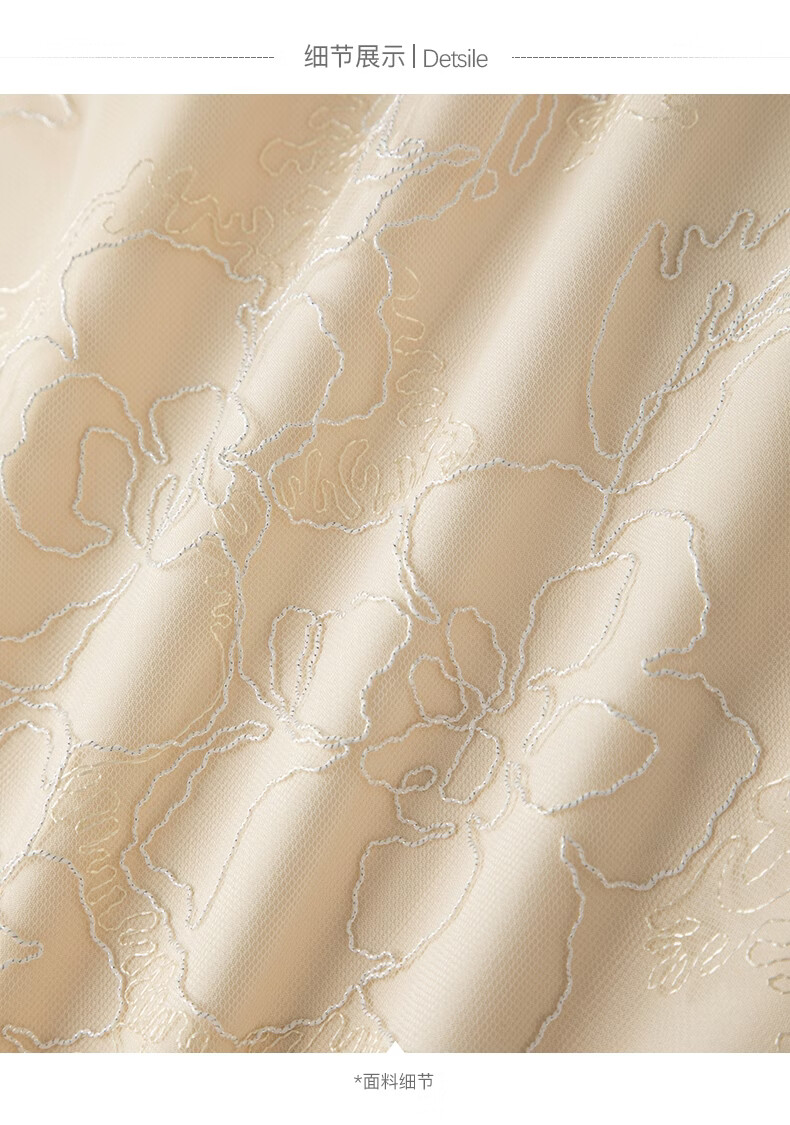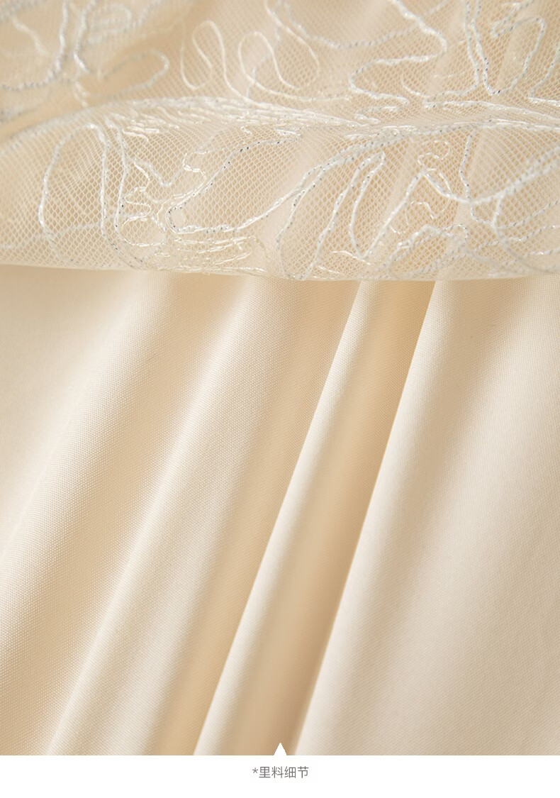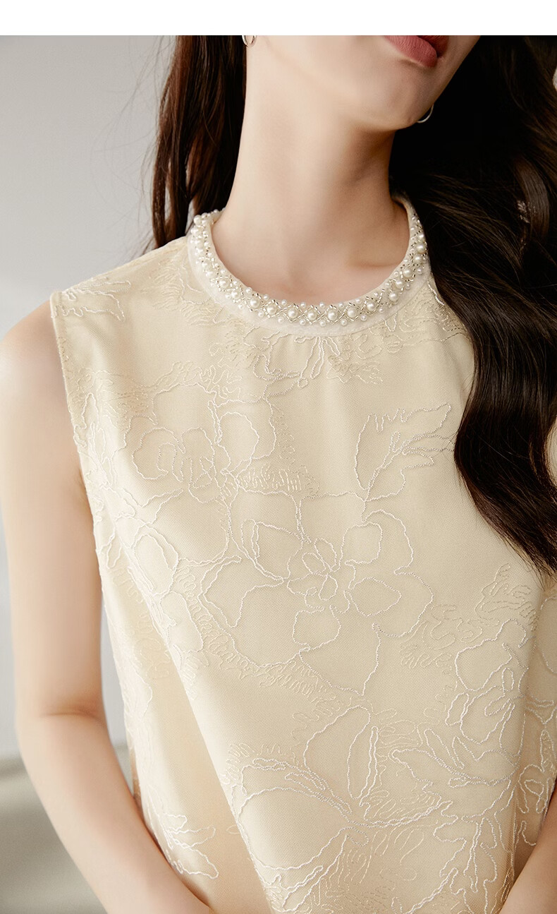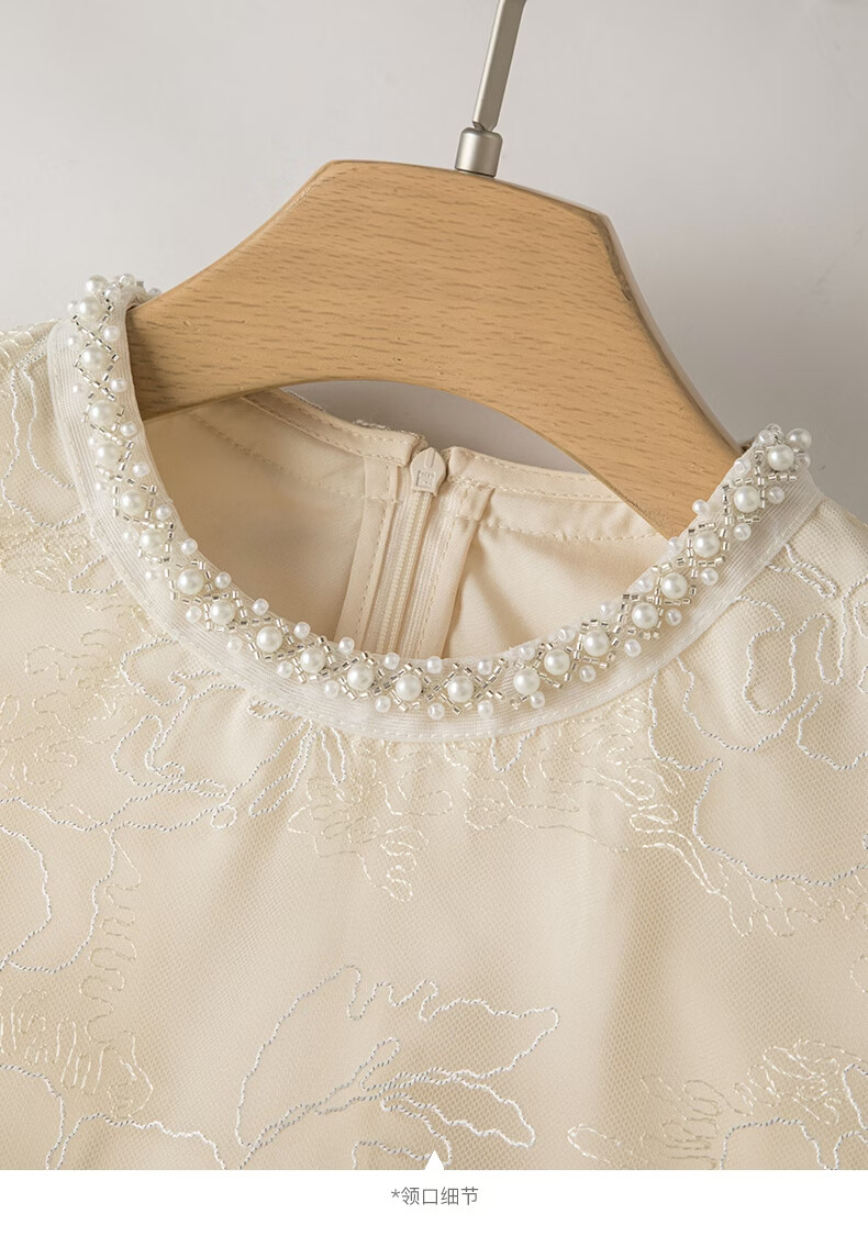 晚白2026年春夏款法式温柔珍珠圆领裙子提花刺绣小个子显瘦无袖连衣裙 杏色 S