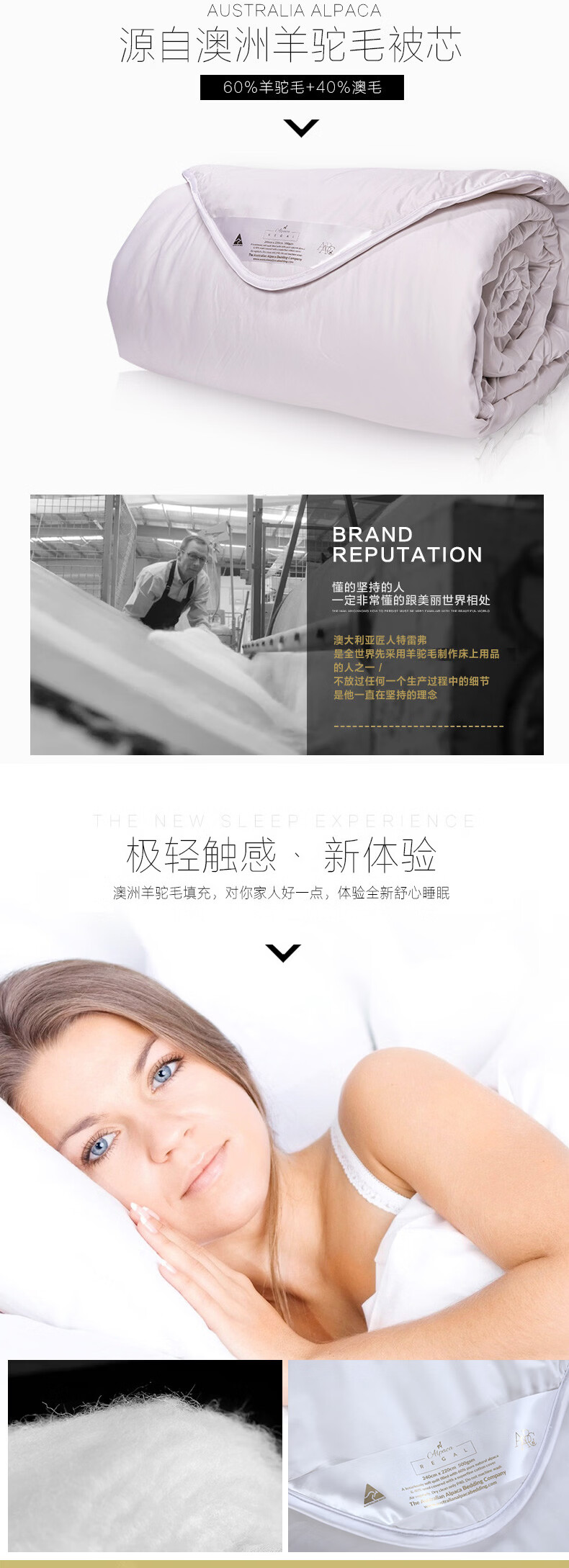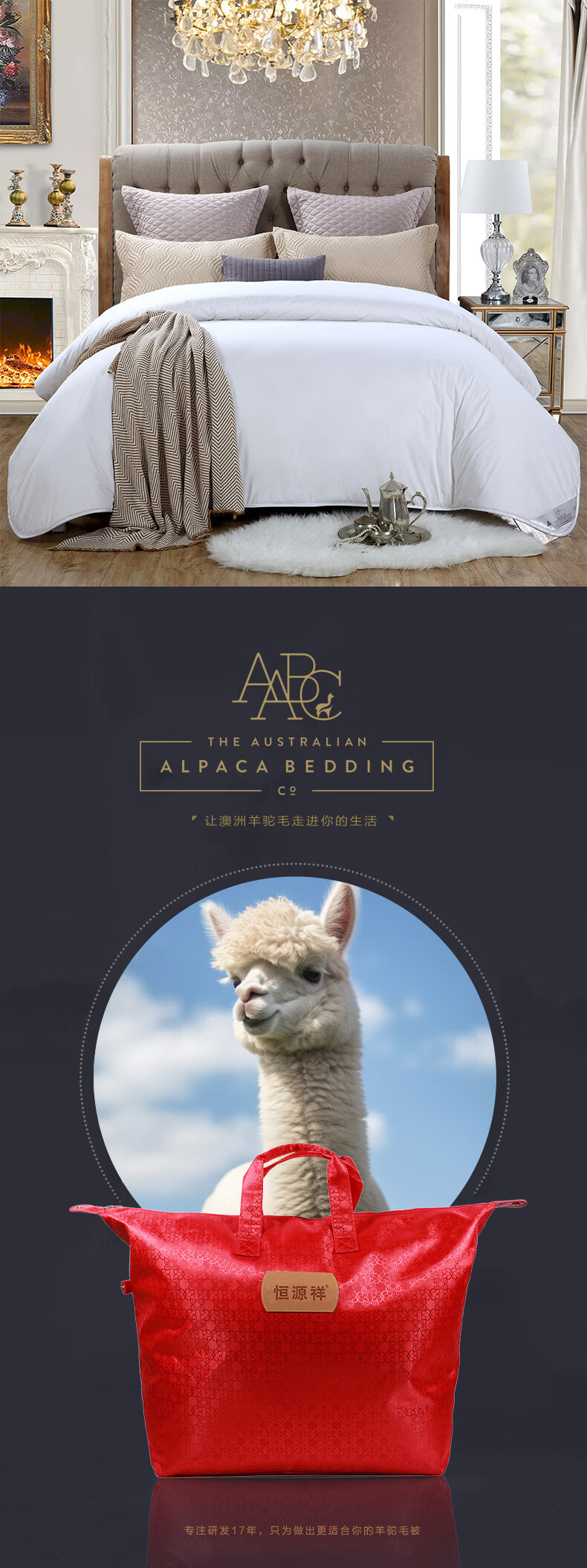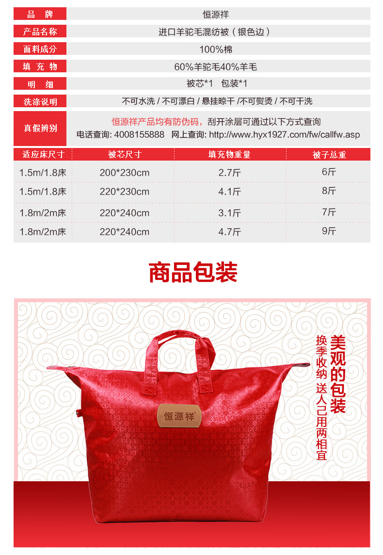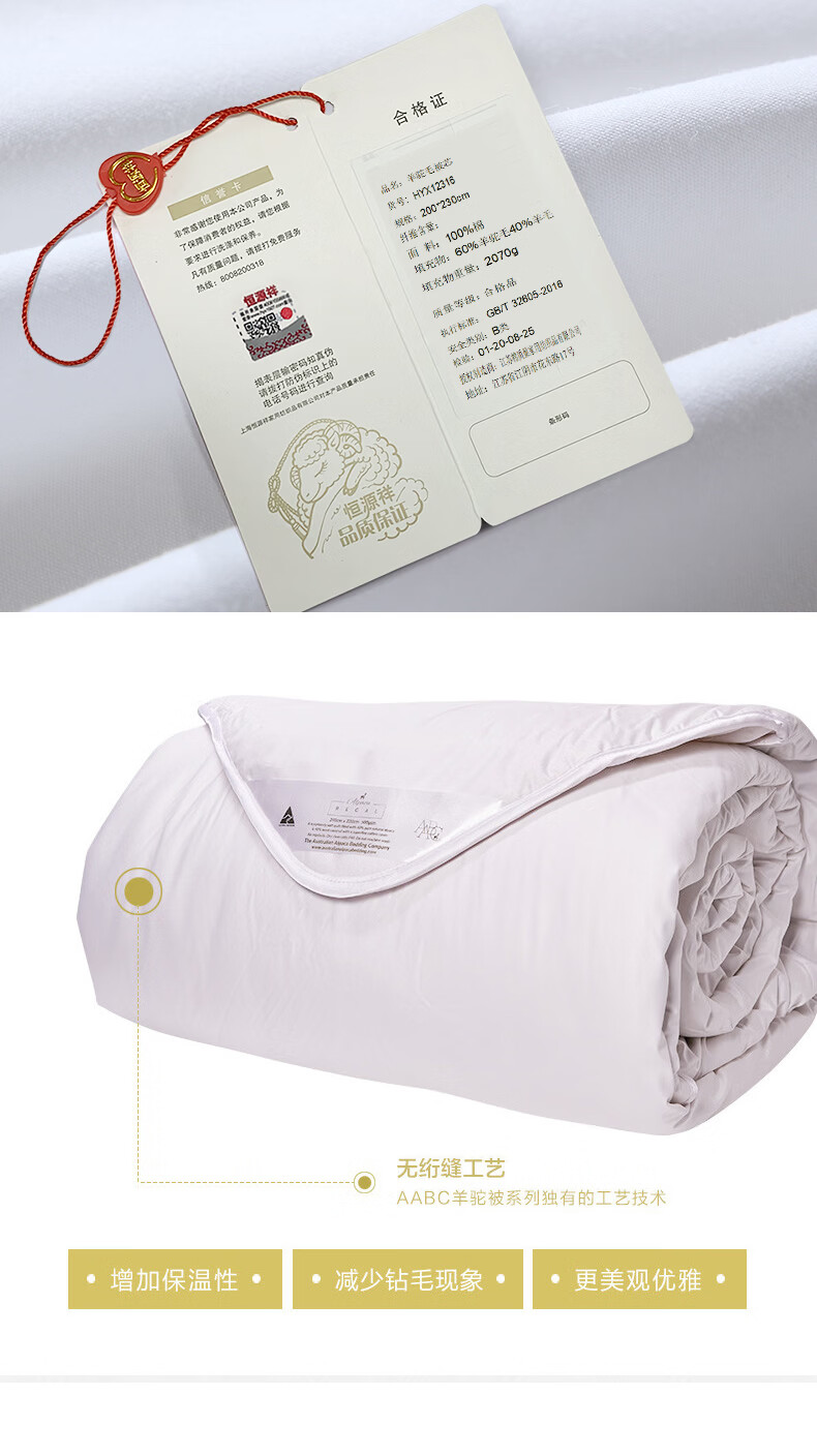 恒源祥 羊驼毛被 澳洲进口羊驼毛羊毛混纺被纯棉面料加厚保暖冬季被芯 澳洲羊驼毛被【银色边】 220*240cm 总重7斤