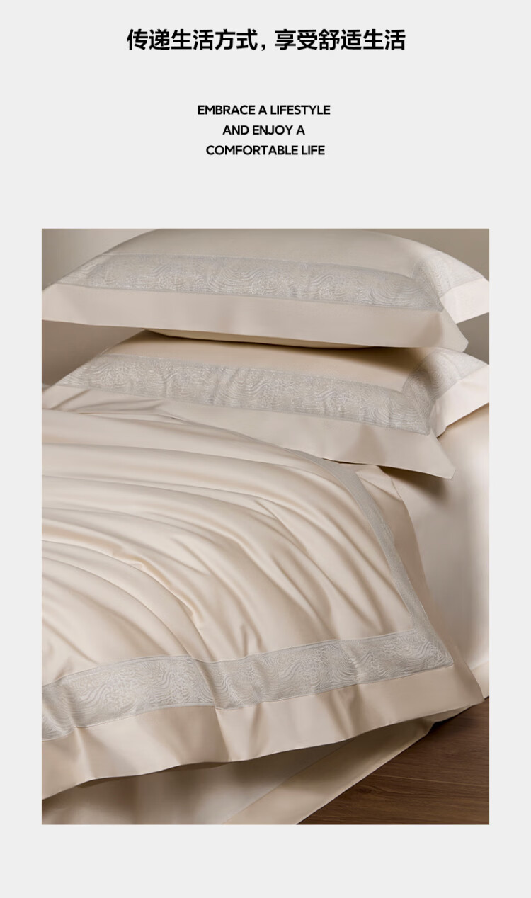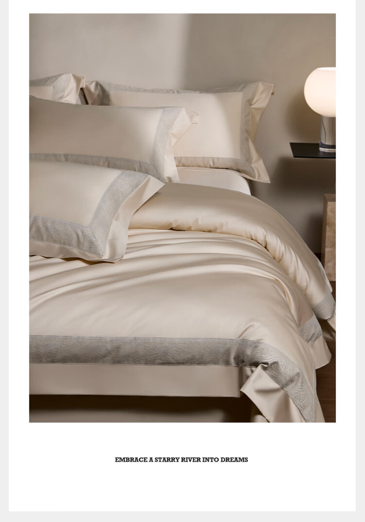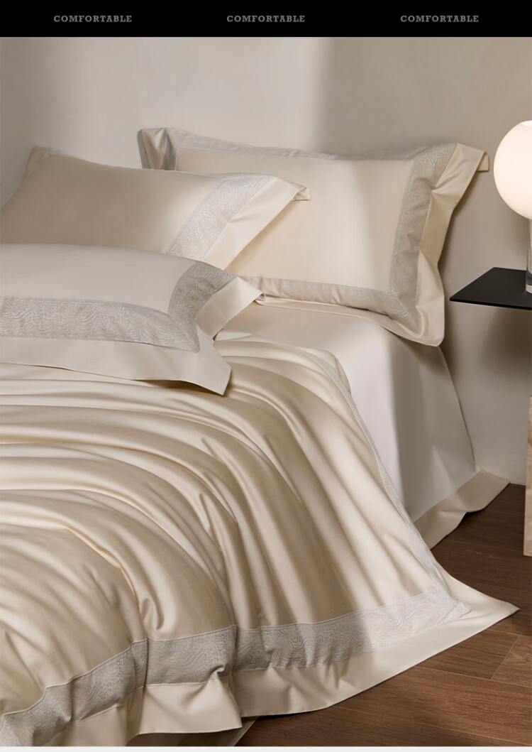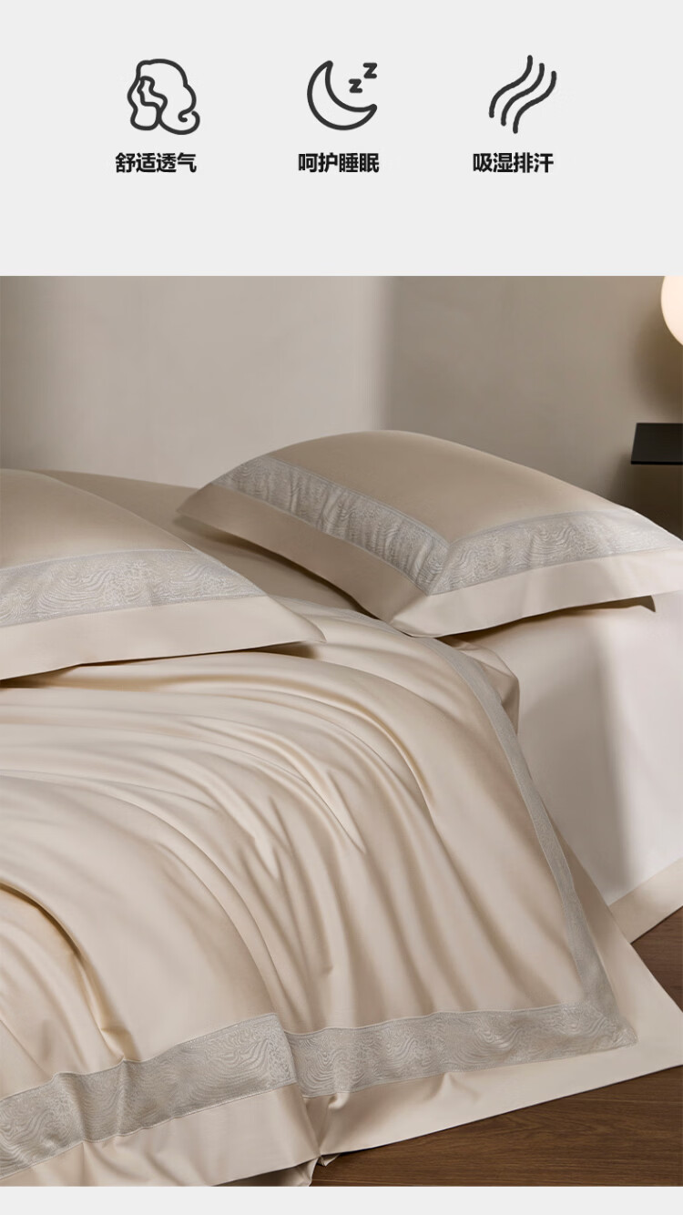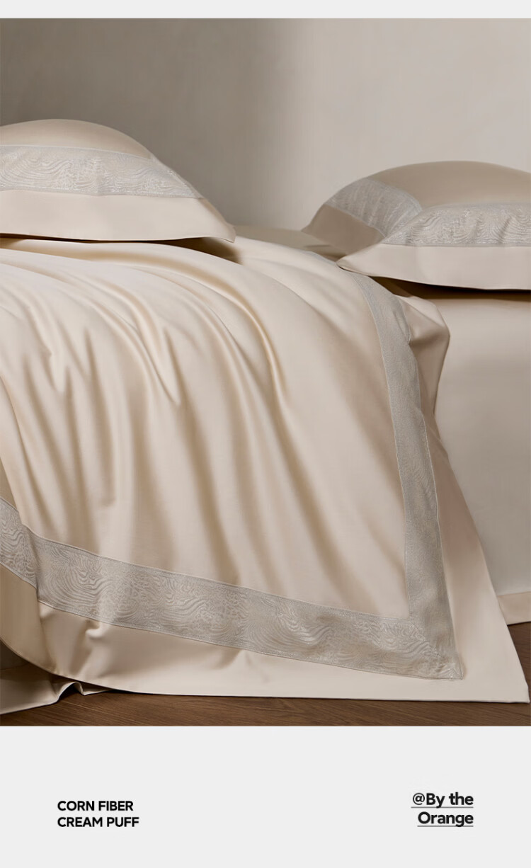 ROLAND LIVE轻奢全棉四件套纯棉亲肤透气四季款床单被罩床上用品裸睡套件 TGH 全棉四件套-莫妮卡奶油米 1.5米床 床单款 【被套200*230cm】