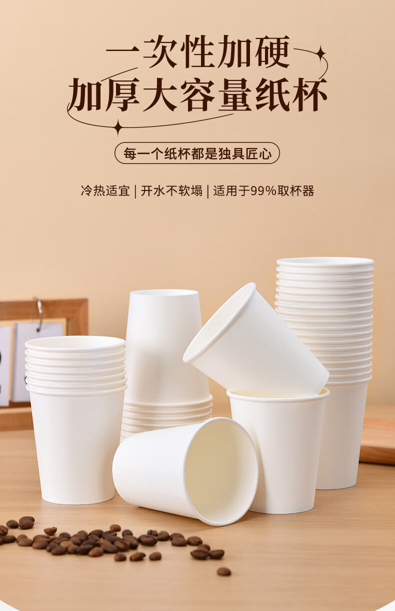 妙然100只一次性纯白加厚食品级防烫手热饮杯幼儿园手工儿童涂鸦杯 100只