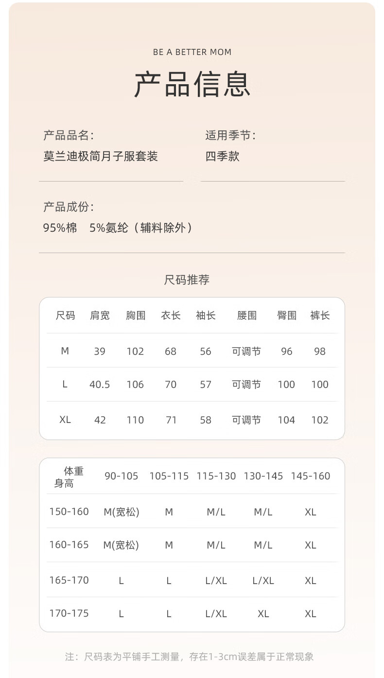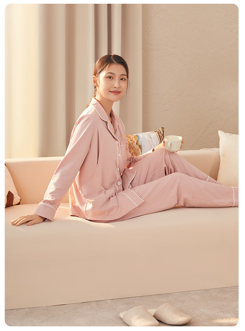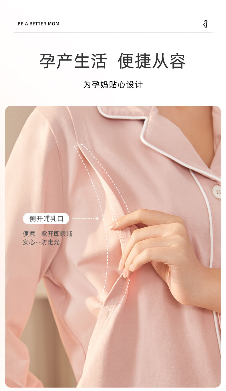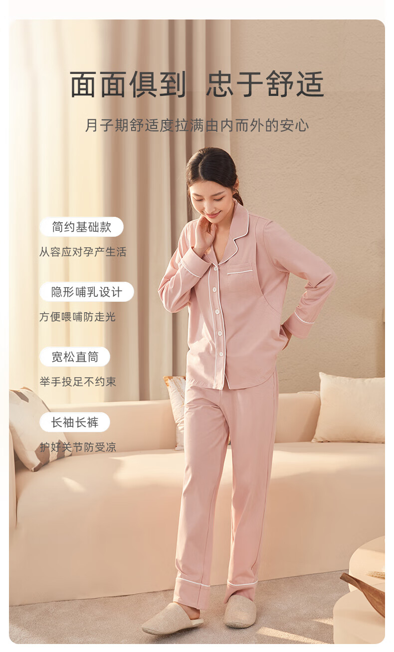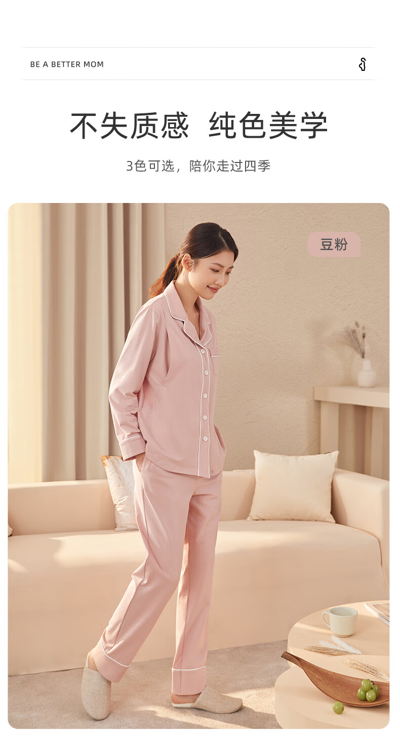 十月结晶月子服春秋棉产后孕妇睡衣哺乳家居服套装豆粉 M码