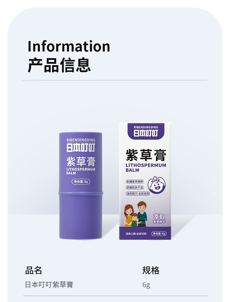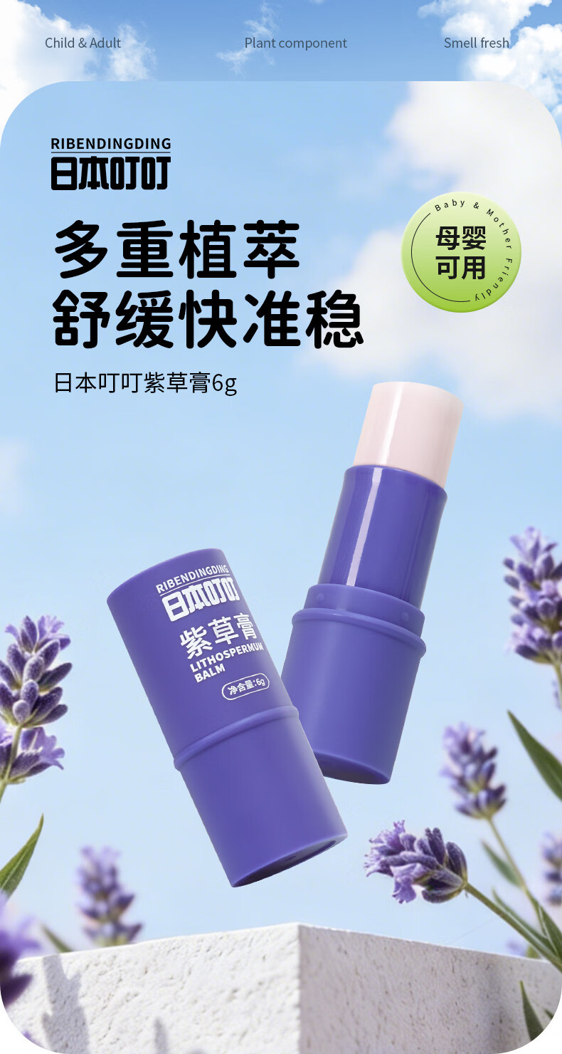日本叮叮婴儿童舒缓紫草膏6g草本清凉膏宝宝不黏腻小巧便携