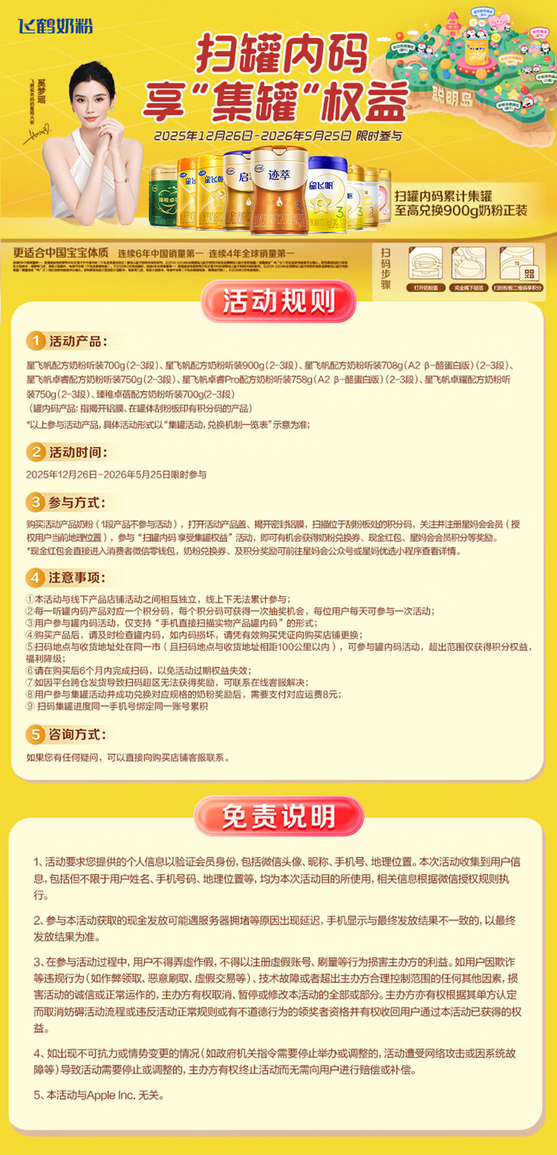 飞鹤星飞帆卓睿3段幼儿配方奶粉(12-36个月)750克g专利HMO 育儿补贴 3段 750g 6罐 【热销爆款】