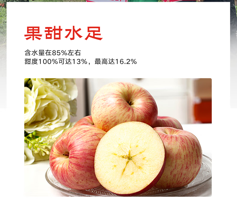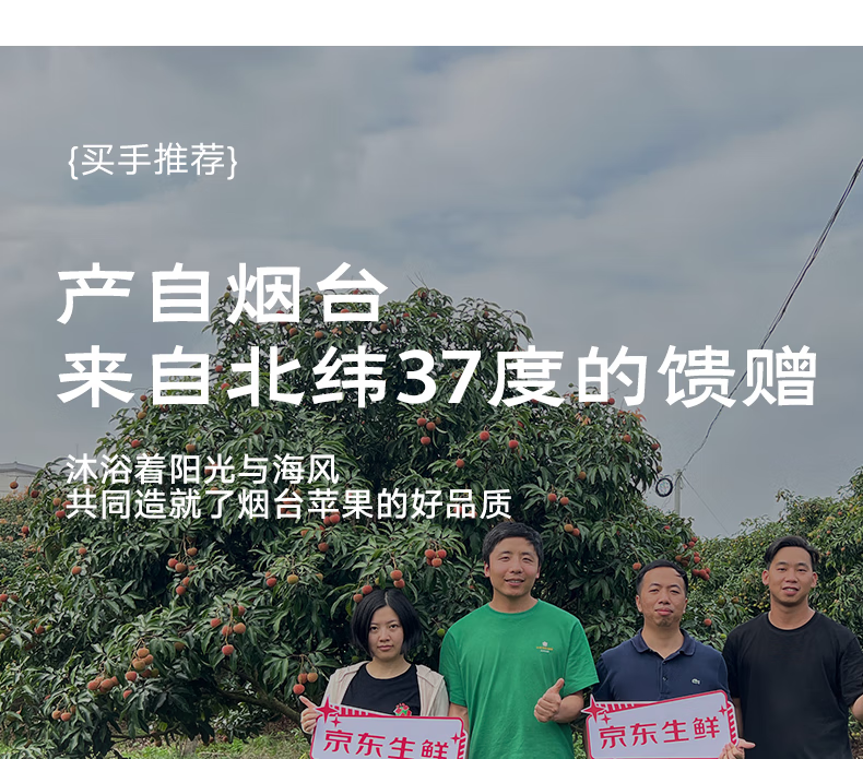 京鲜生山东烟台红富士苹果净重8斤单果80mm+生鲜水果源头直发