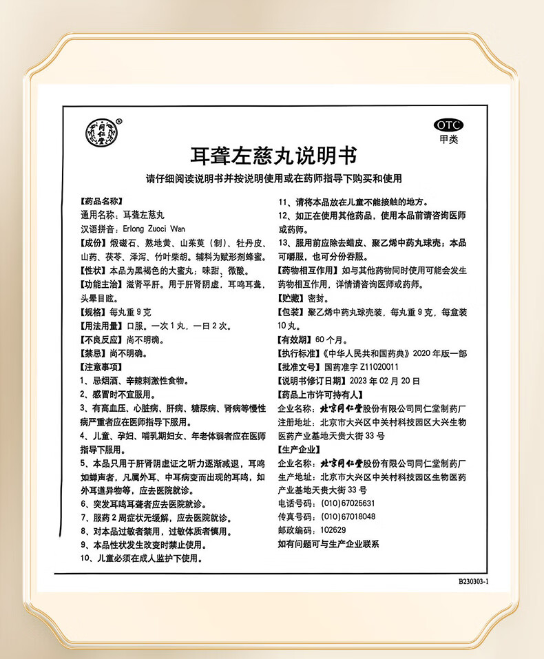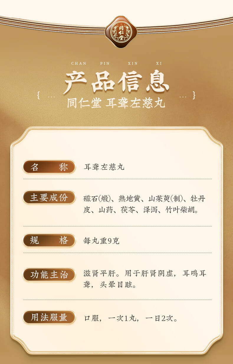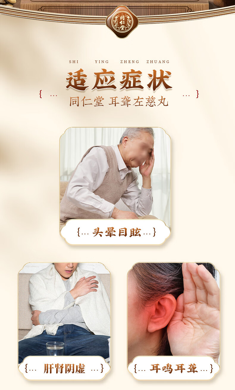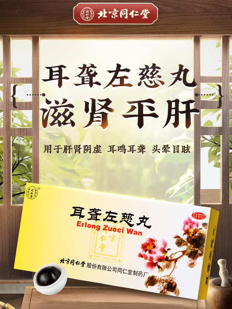 北京同仁堂 耳聋左慈丸 9克*10丸 滋肾平肝。用于肝肾阴虚/耳鸣耳聋/头晕目眩