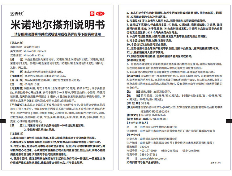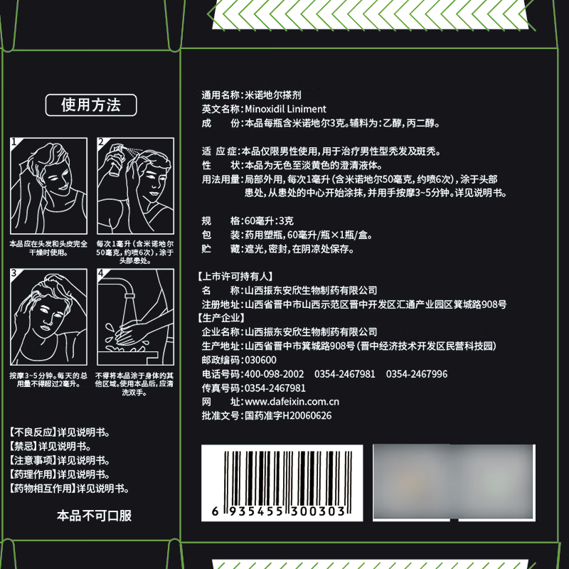 达霏欣5%米诺地尔酊搽剂60ml*3瓶【男士脱发疗程装】防脱生发剂育发发际线增长脱发斑秃高渗透达菲欣米洛地尔