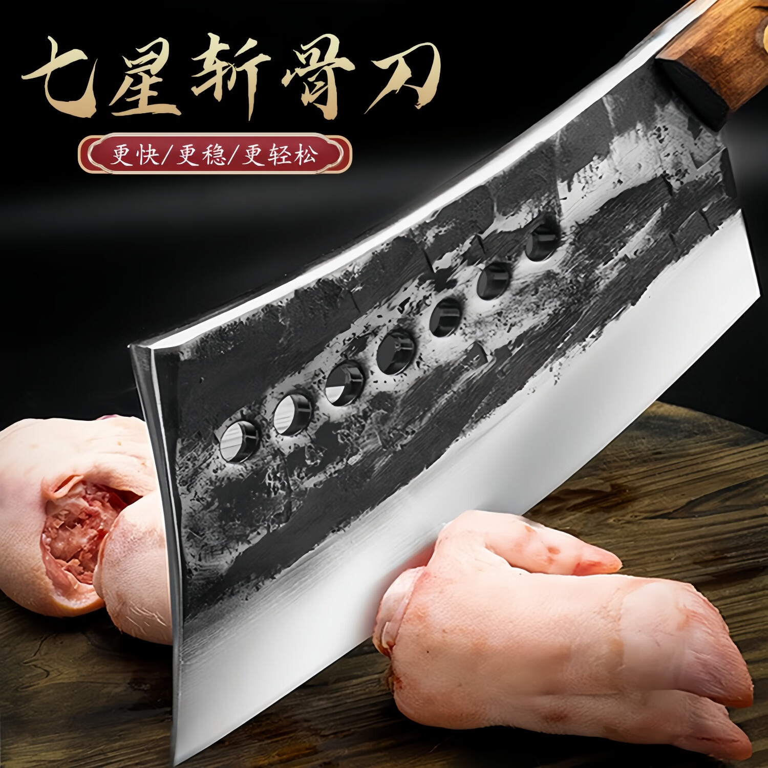 手工锻打七星斩骨刀卖肉专用刀砍骨刀商用猪脚刀剁骨刀锻打不崩口 约5斤-重型商用斩牛大骨【七星斩骨刀】