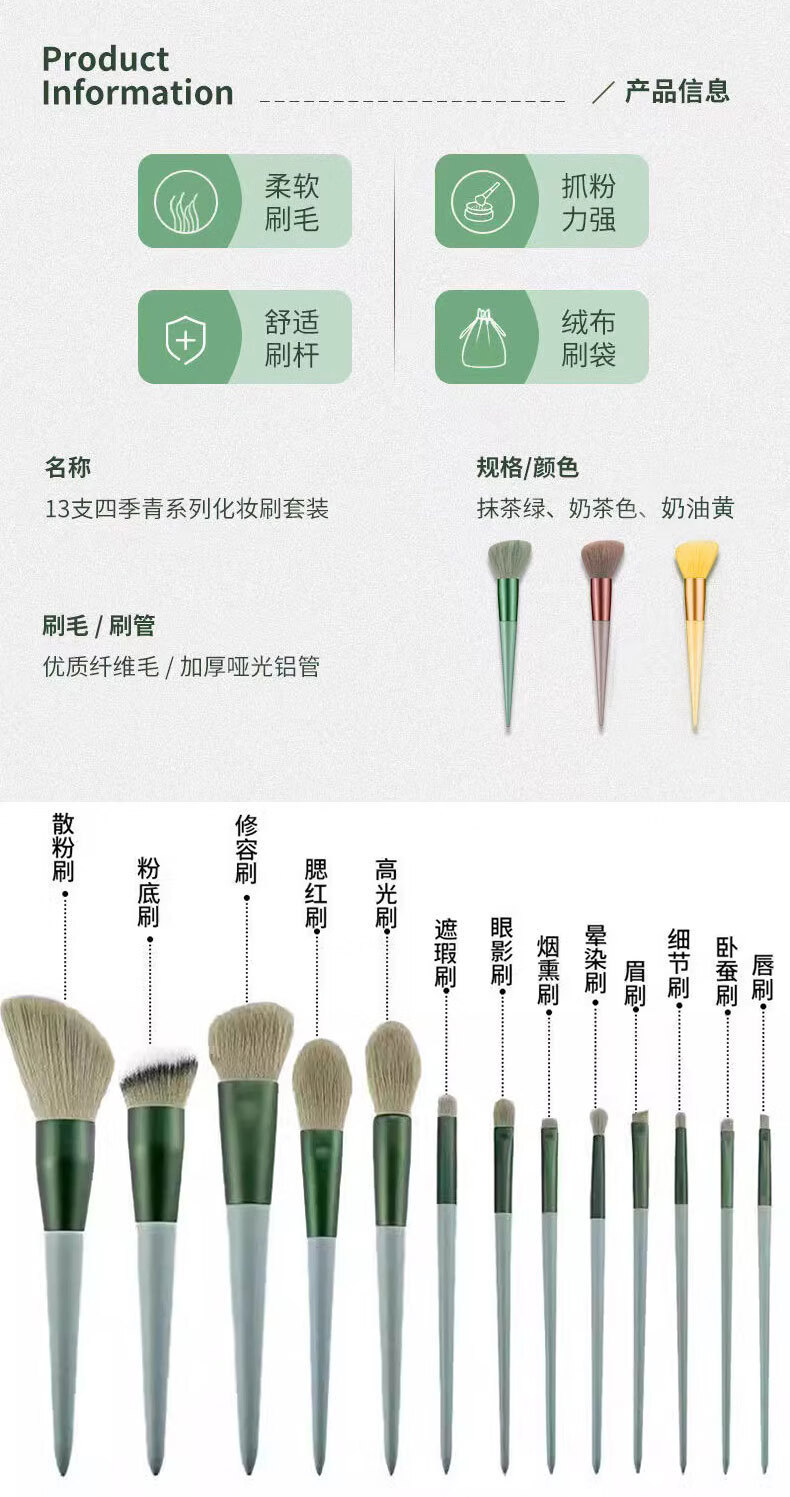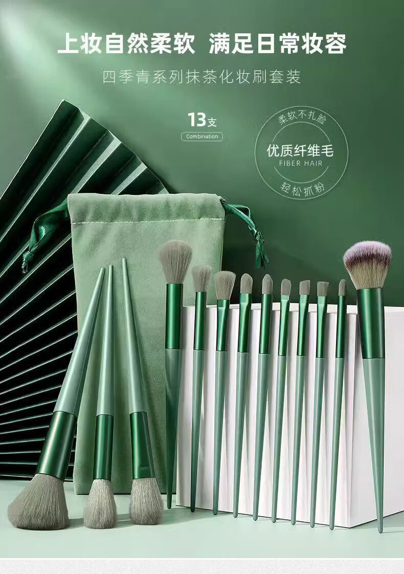 眼影腮红散粉高光修容刷美妆工具软毛化妆刷套 绿色 13支
