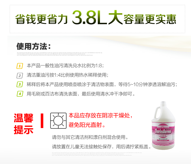 超宝强力化油清洁剂3.8升大瓶商用装重油除油剂餐馆酒店厨房去油剂 强力化油剂3.8升1瓶装