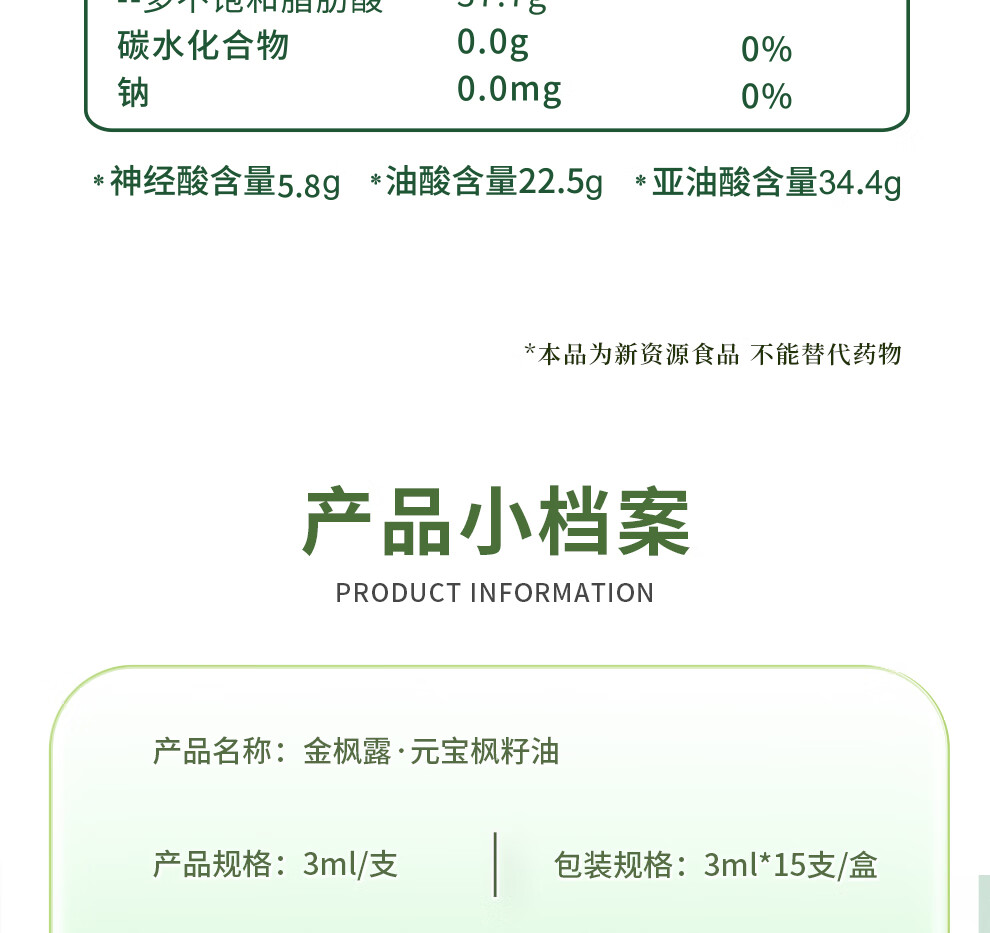 金枫露 官方正品元宝枫籽油神经酸DHA学生青少年中老年可搭枫籽油3ml/支 1盒(15支)