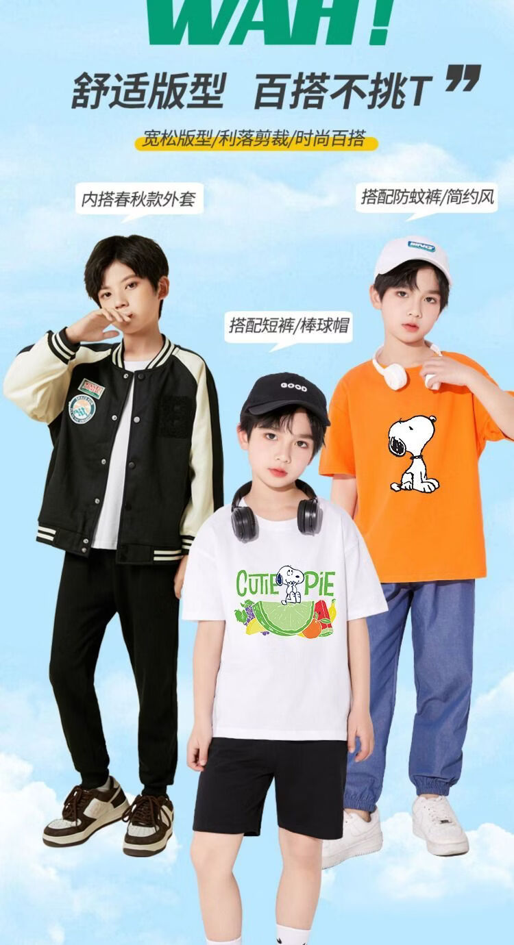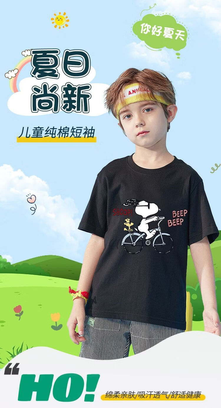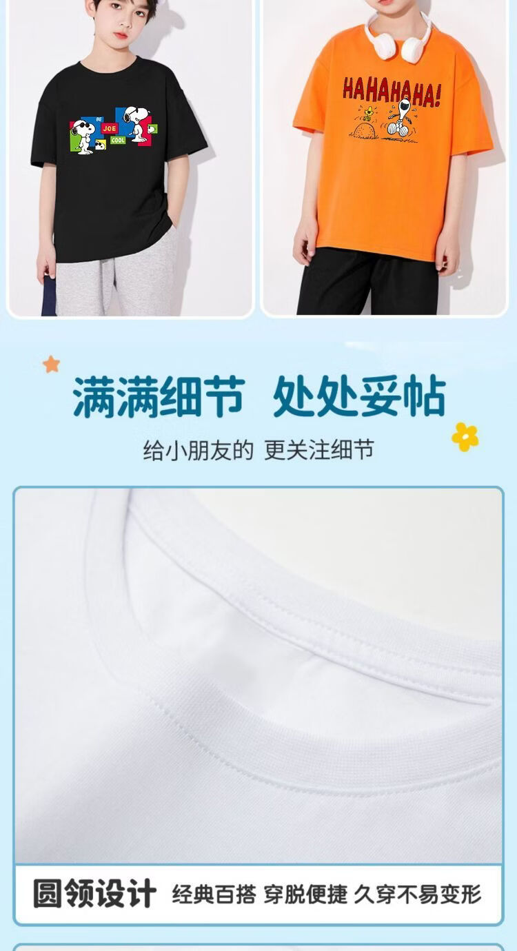 史努比(SNOOPY)儿童男童短袖t恤纯棉夏季2026新款儿童上衣中大童衣服短袖童装 短袖/393大红色+315大蓝色+301大黄色 120 适合体重20-25公斤