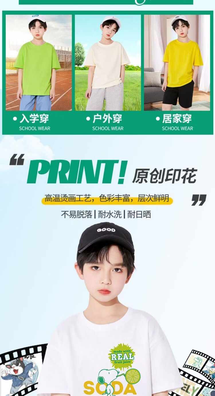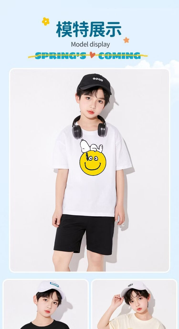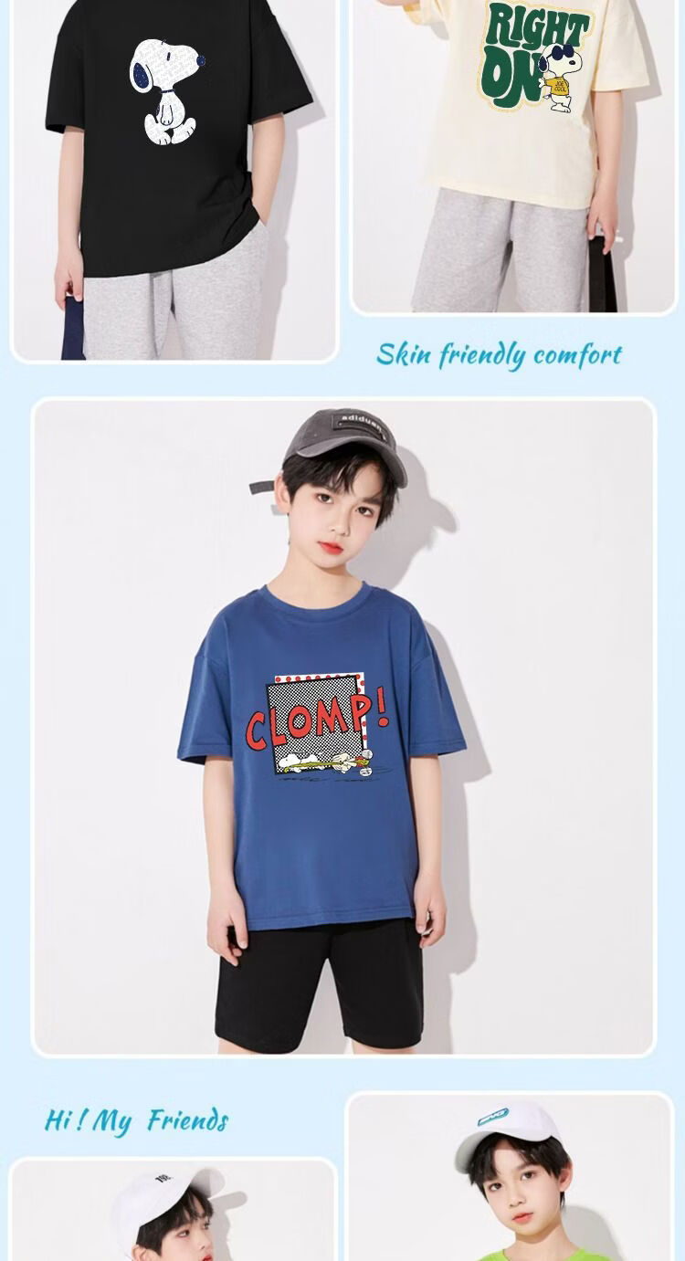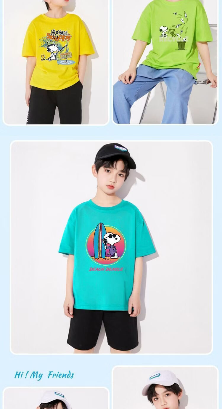史努比(SNOOPY)儿童男童短袖t恤纯棉夏季2026新款儿童上衣中大童衣服短袖童装 短袖/393大红色+315大蓝色+301大黄色 120 适合体重20-25公斤