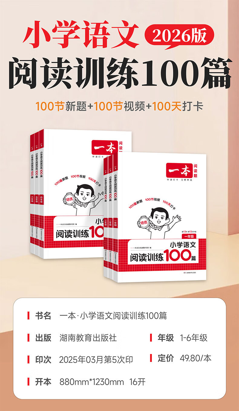 一本阅读训练100篇2026新版小学语文阅读理解专项训练一二三四五六年级上册下册名校真题80篇每日一练人教版小学生课内课外阅读练习题一百篇小升初123456年级三段式答题模板技巧视频讲解 【语文】阅读