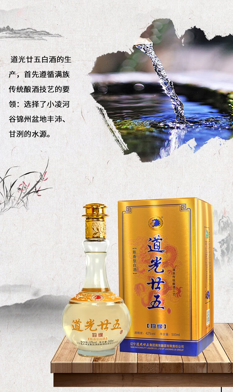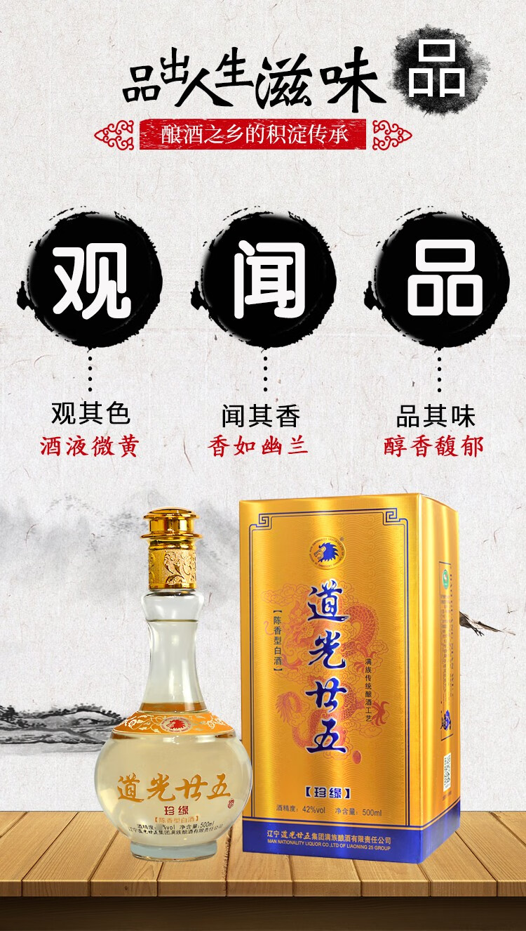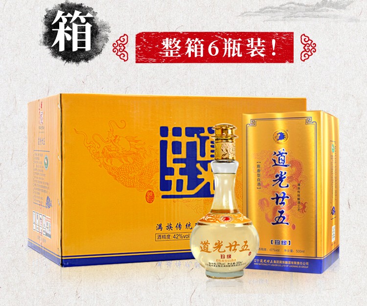 道光廿五珍缘陈香型白酒东北辽宁特产北方粮食白酒道光二十五送礼 42度 500mL 6瓶 道光珍缘+3个礼袋