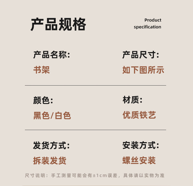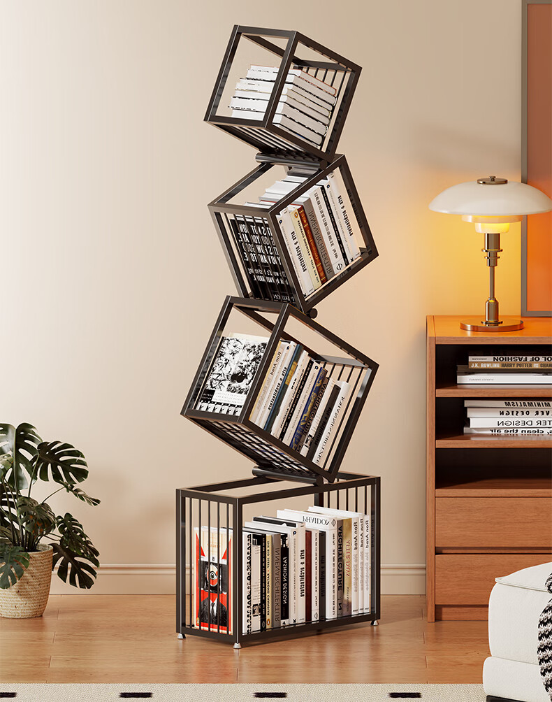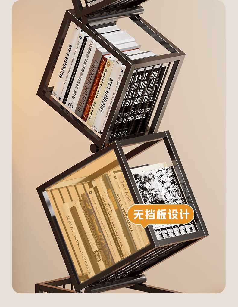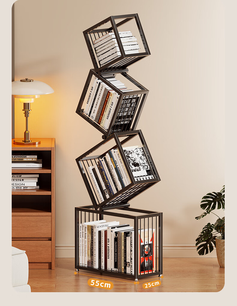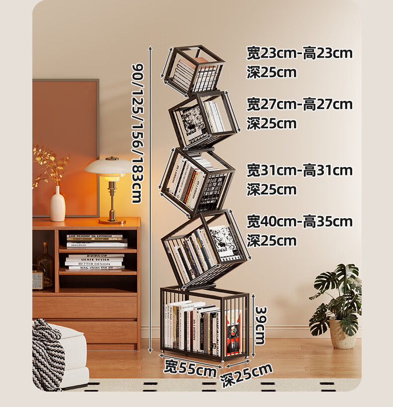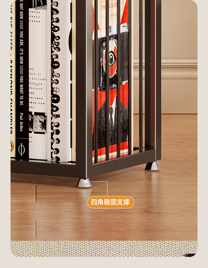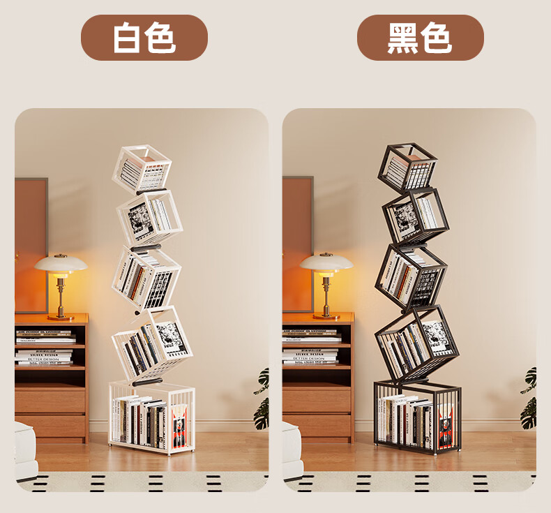 尔思家书架立式落地免安装铁艺书柜客厅多层简易书本收纳架多功能展示柜 两层-白色