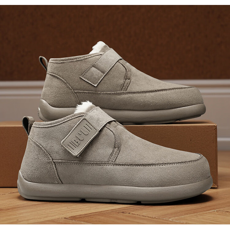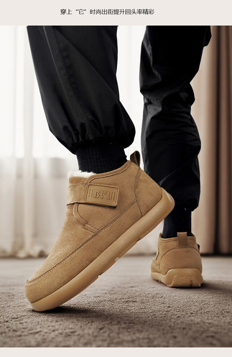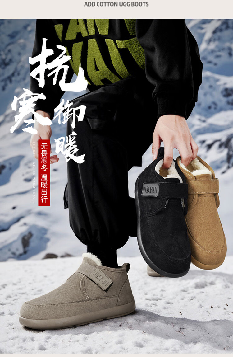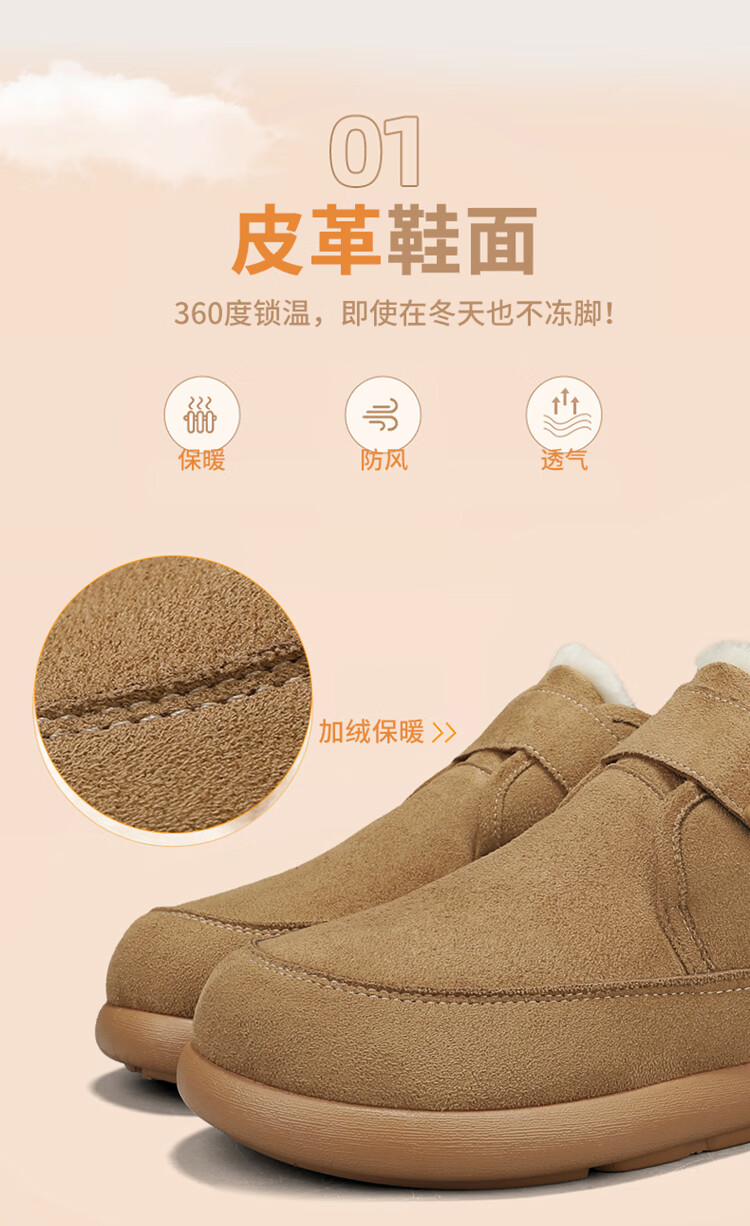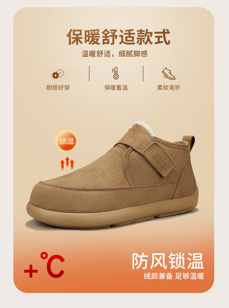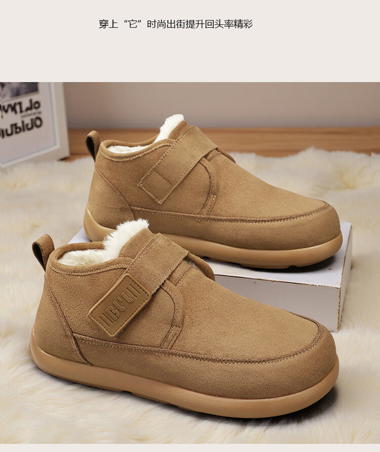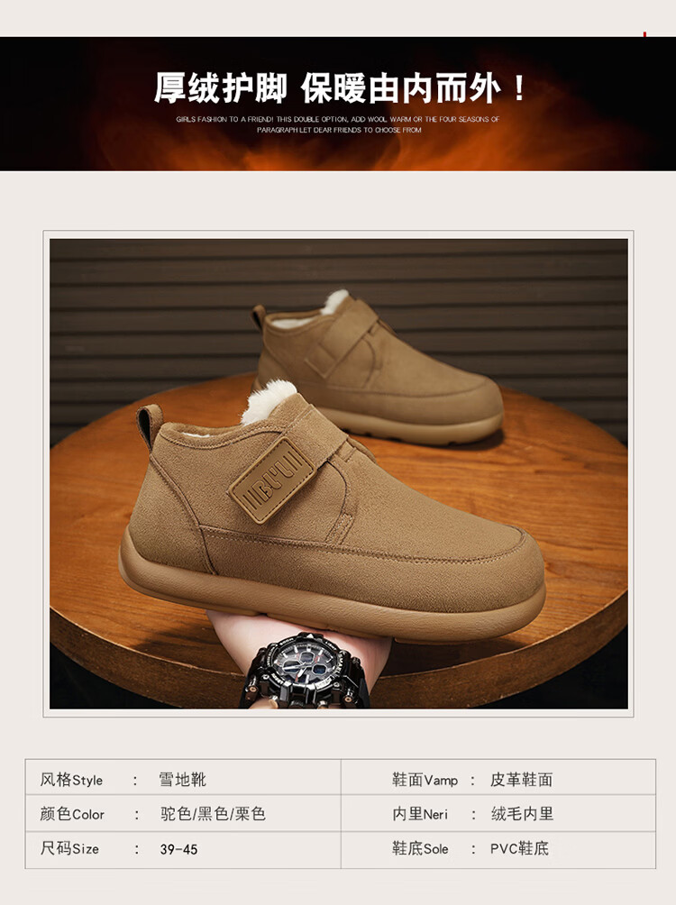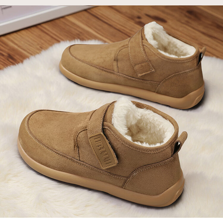 稻草人(MEXICAN)雪地靴男冬季加绒保暖户外皮面棉靴防水加厚中老年爸爸防滑二棉鞋 栗色【升级款】 39
