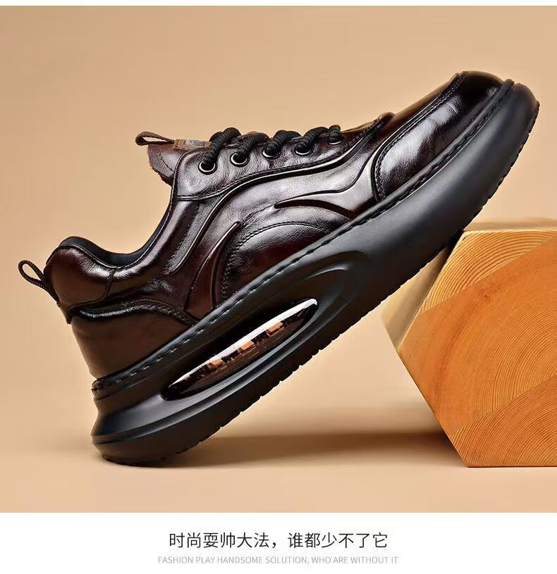 稻草人(MEXICAN)头层牛皮商务休闲皮鞋男冬季软底皮鞋气垫底潮流皮鞋加绒保暖棉鞋 加绒/棕色 44 皮鞋码