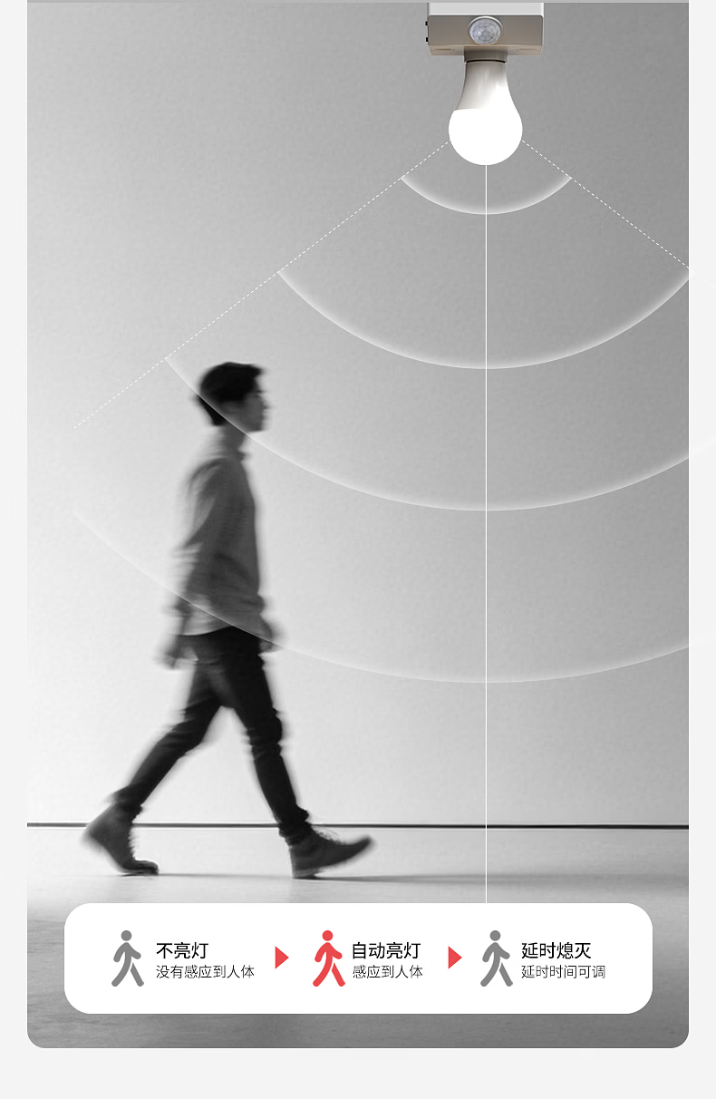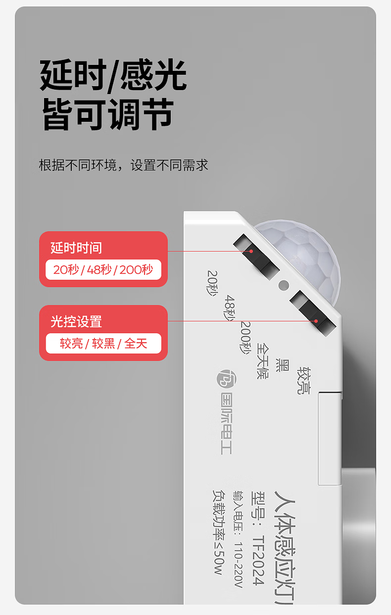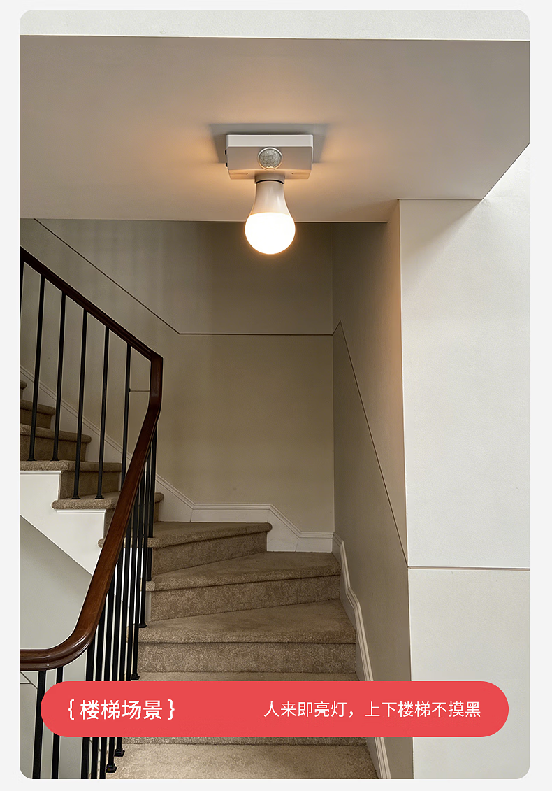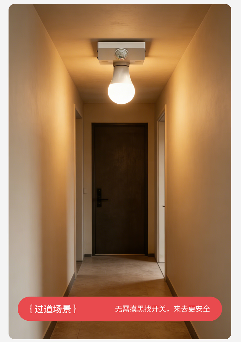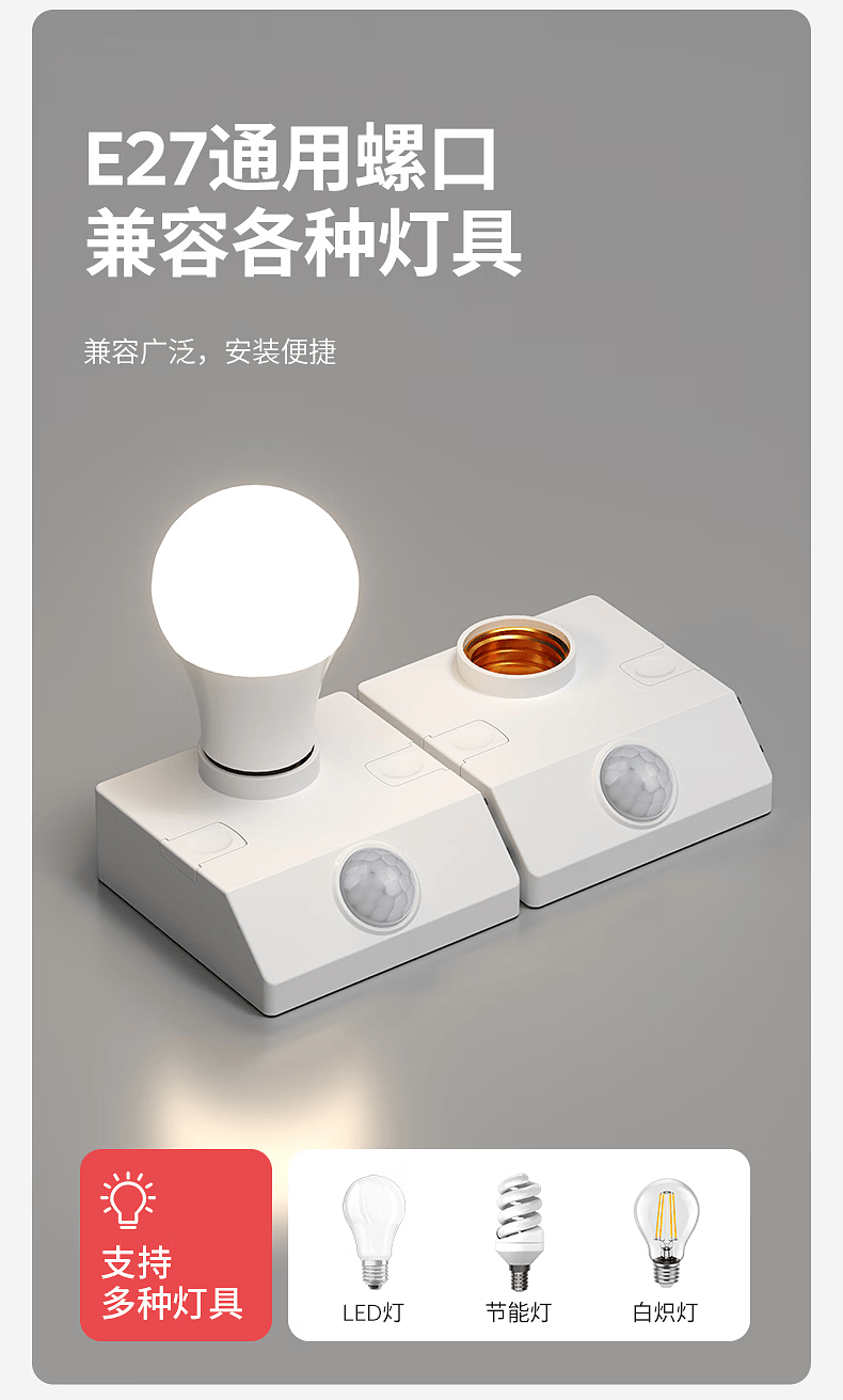 国际电工(FDD)E27红外线人体感应灯座楼道走廊家用螺口明装220V感应器灯头开关 人体感应灯座-可调节【100W】 单只装(无灯泡)