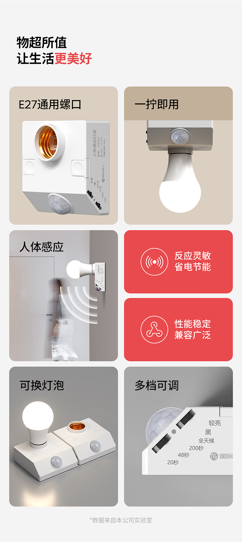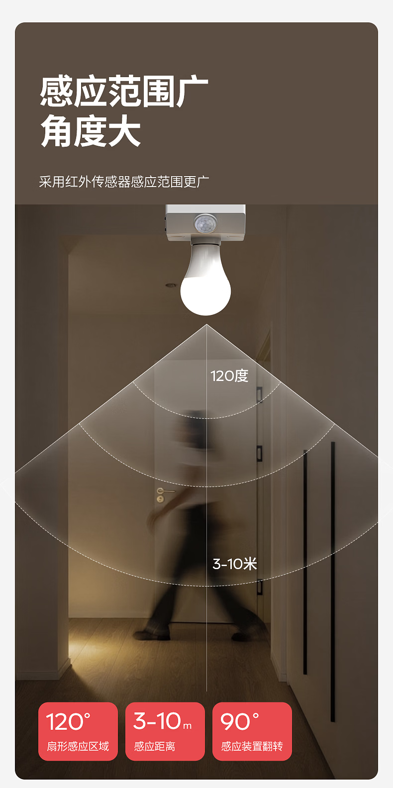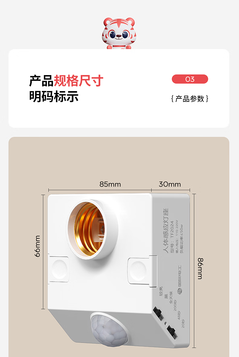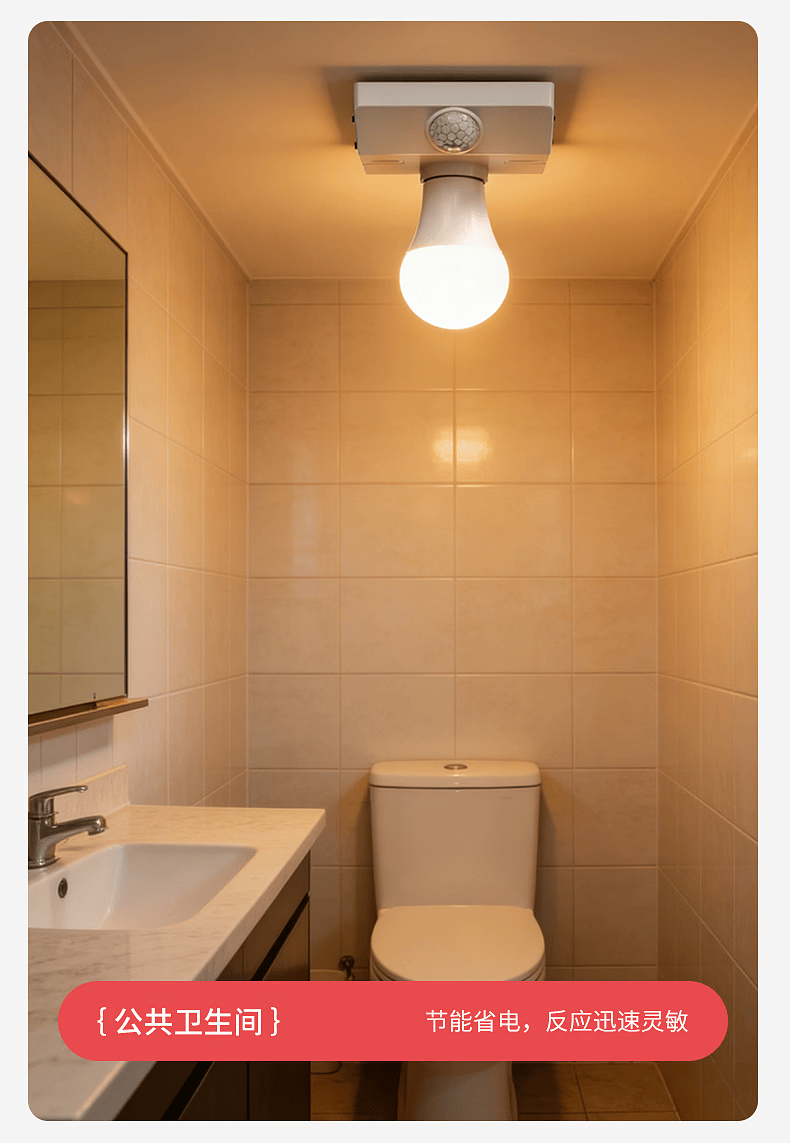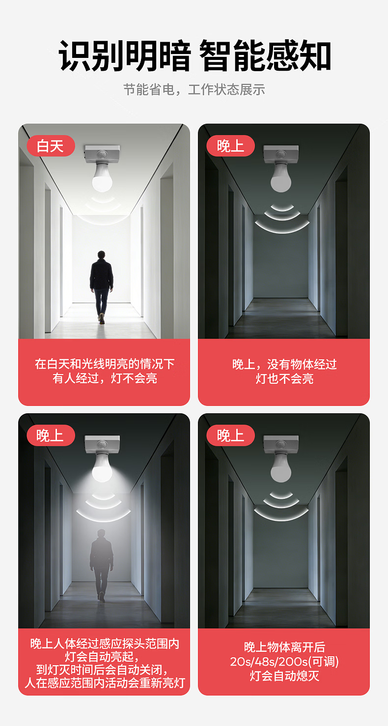 国际电工(FDD)E27红外线人体感应灯座楼道走廊家用螺口明装220V感应器灯头开关 人体感应灯座-可调节【100W】 单只装(无灯泡)