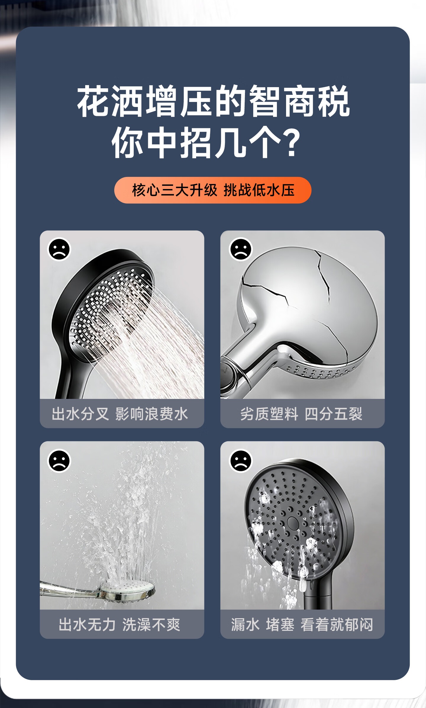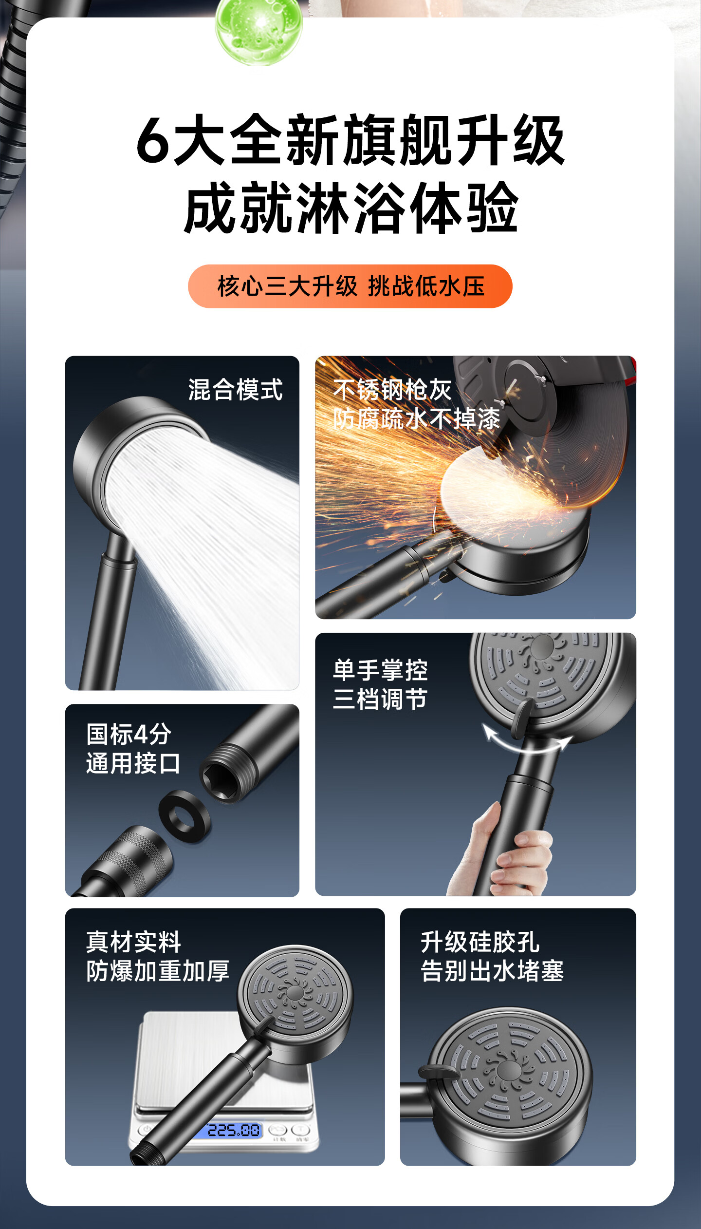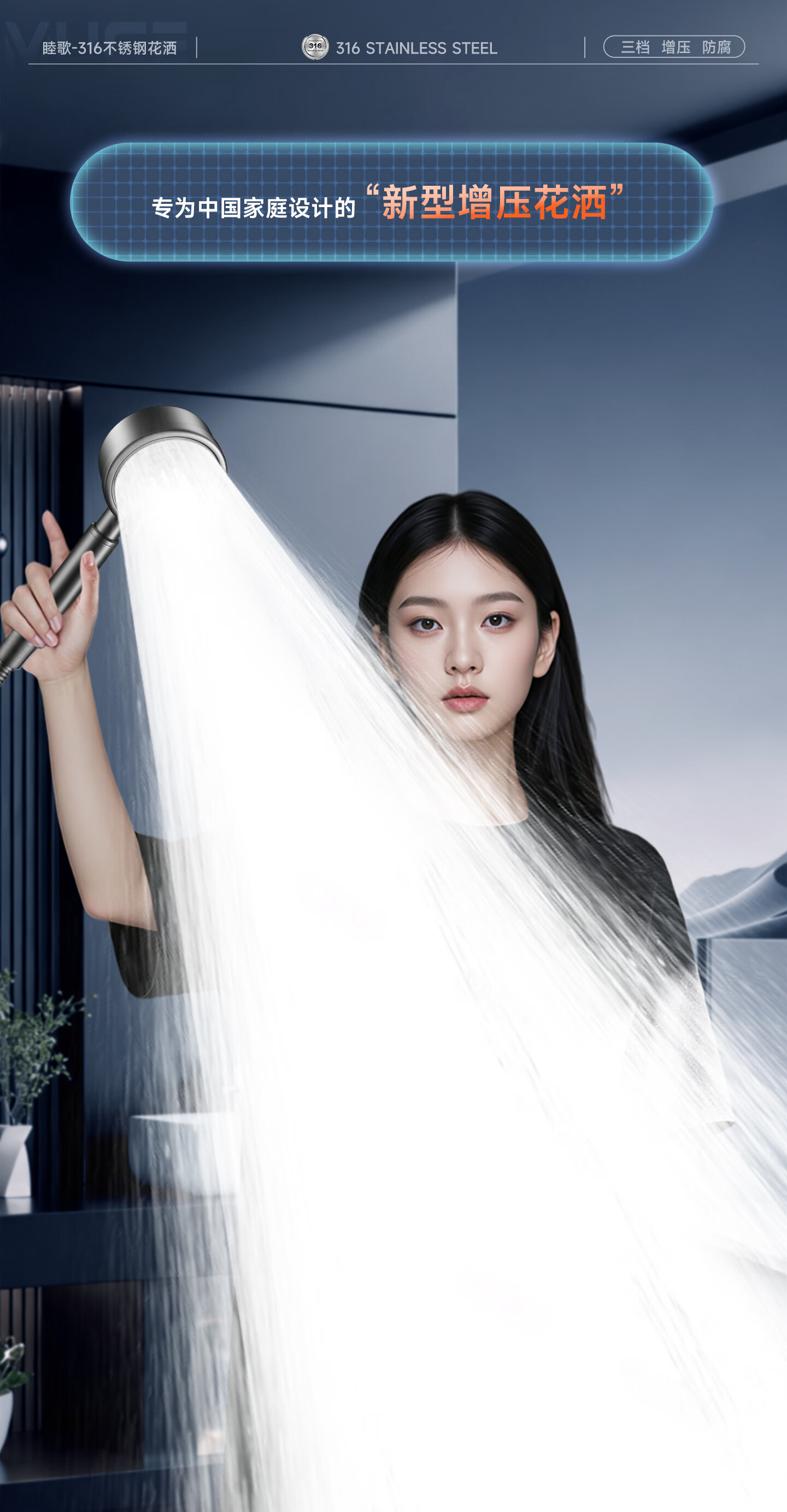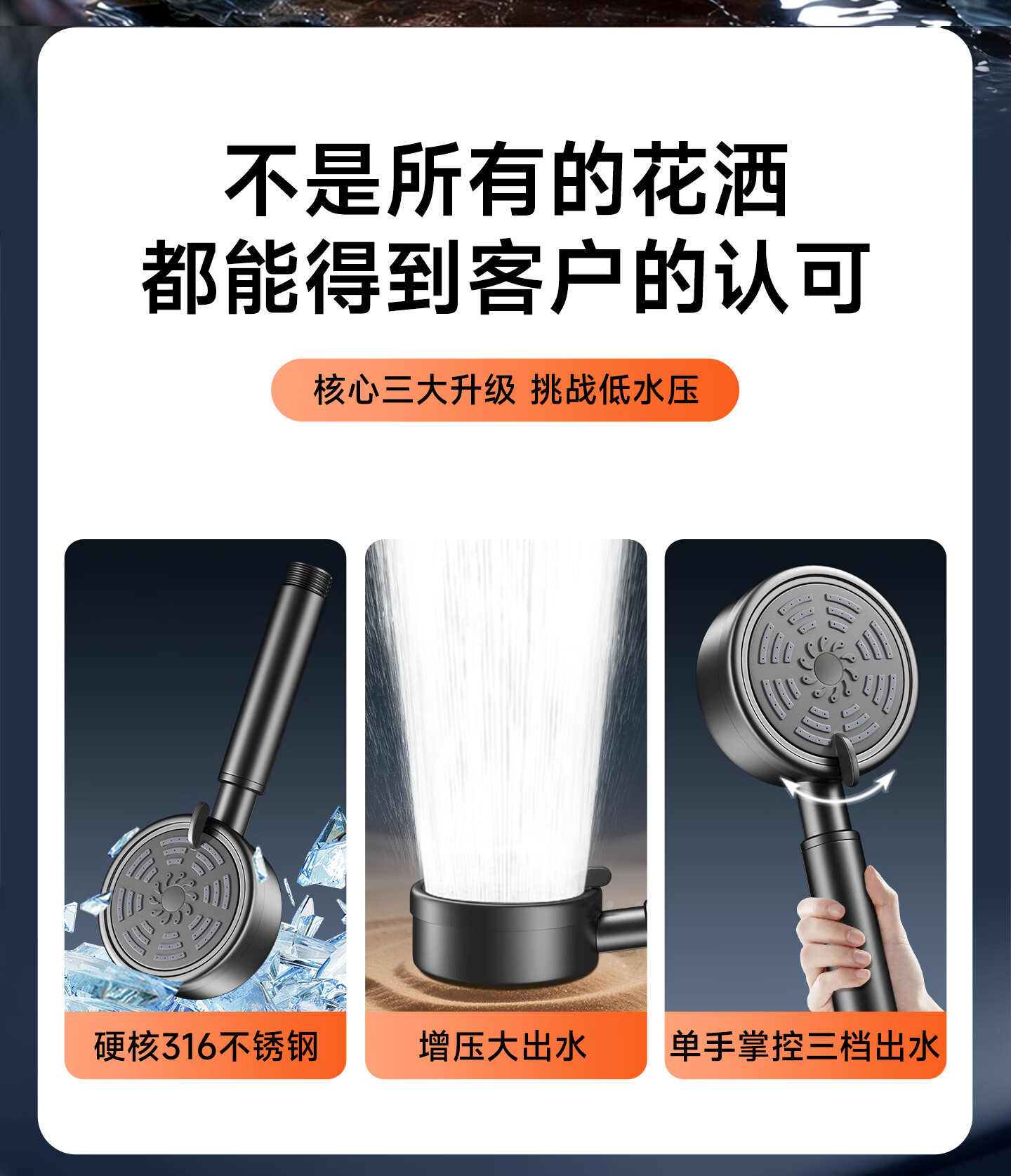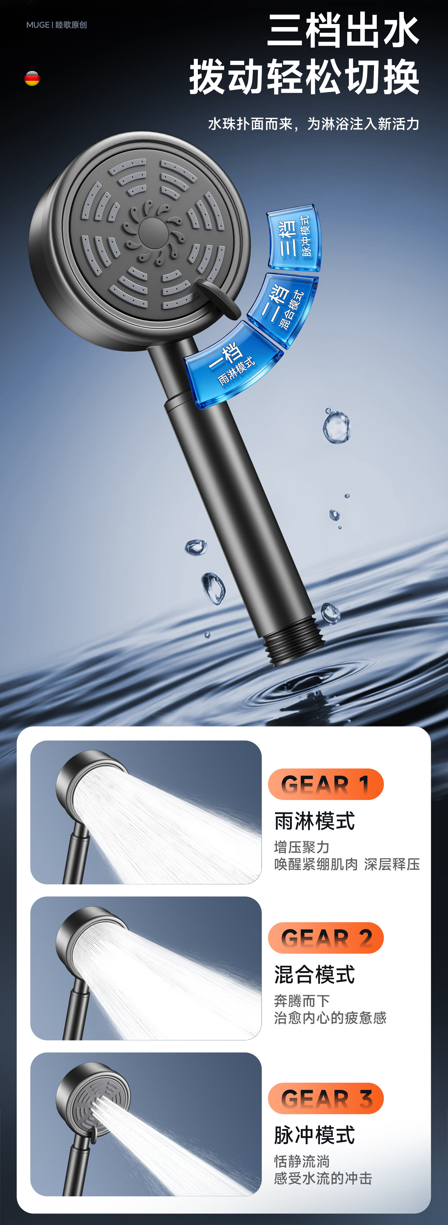 睦歌(MUGE)浴室增压花洒淋浴喷头超强高压大出水316不锈钢淋浴花洒头莲蓬头 加厚316不锈钢【亮银色】增压花洒+1.5米管+支架